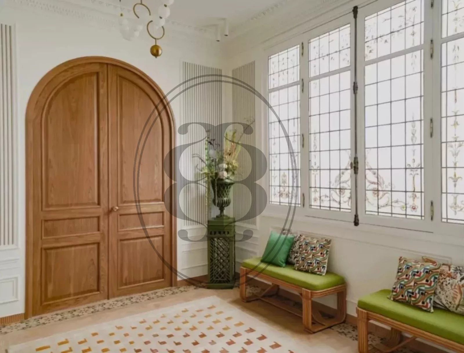 Au cœur du très recherché quartier de l’OCDE, dans un immeuble ancien de standing, cet appartement, entièrement rénové et meublé, séduit par son élégance, ses volumes généreux et la qualité de ses prestations. L’entrée s’ouvre sur une superbe galerie distribuant de vastes espaces de réception composés d’un grand salon, d’une salle à manger et d’un second salon, offrant une circulation fluide et une atmosphère à la fois raffinée et conviviale. La cuisine dinatoire, spacieuse et parfaitement équipée, a été pensée comme un véritable lieu de vie. La partie nuit propose une suite parentale en duplex intégrant salle de bains, toilettes, dressing et espace bureau, ainsi que trois autres chambres aux prestations soignées, chacune disposant de sa salle d’eau et de rangements sur mesure. L’une d’elles bénéficie d’une mezzanine permettant d’accueillir deux couchages supplémentaires. Un bien rare, à l’adresse confidentielle et recherchée, idéalement conçu pour une vie familiale élégante au cœur de l’OCDE. Un parking et deux chambres de services (non reliables) sont proposées en sus du prix.