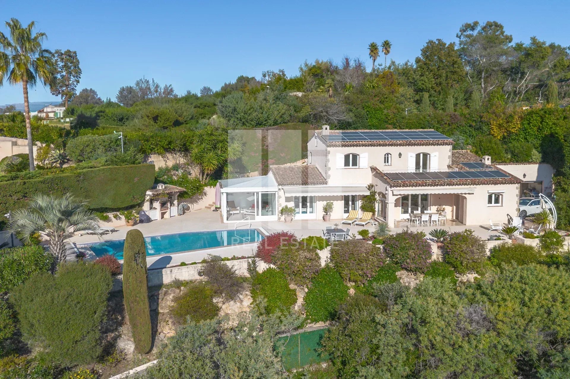 Au calme absolu sur le secteur de la Croix des Gardes, au bout d'une allée privée. vous propose cette très belle villa provençale orientée Sud Ouest, bénéficiant d'une très belle vue sur la mer et le massif de l'Estérel. Elle se compose de plain-pied d'un large séjour salle à manger avec une cuisine séparée pouvant s'ouvrir sur le séjour, d'une spacieuse chambre en suite ouvrant sur la terrasse, d'une buanderie et d'une belle véranda. A l'étage deux chambres avec leur salle d'eau et un large dressing. Cette villa offre un très beau cadre de vie avec panorama d'exception sur une très belle parcelle de 2500 m². Garage pour 2 véhicules.