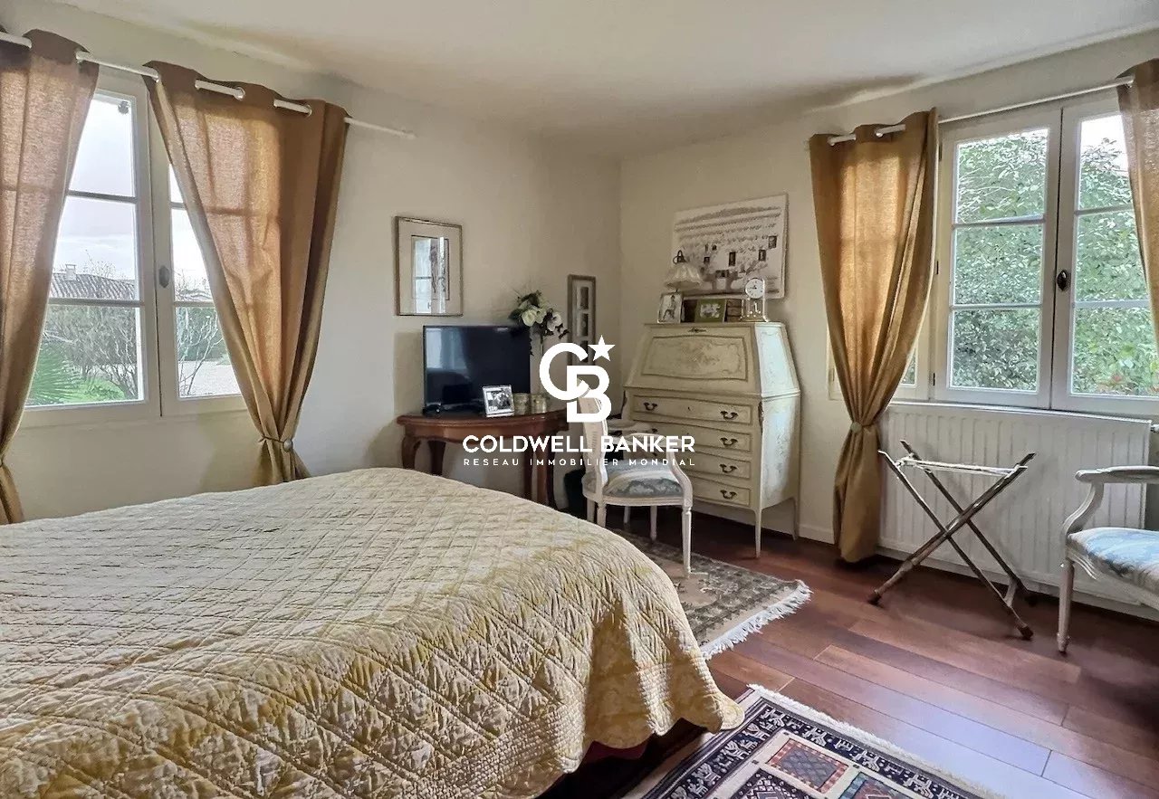 Coldwell Banker Immoba a le plaisir de vous présenter cette propriété au cœur du très joli village d’Arsac, aux portes du Médoc et de ses prestigieux châteaux. Elle se compose d’une maison principale au charme indéniable et de sa maison annexe. Une élégante façade en pierre de taille vous accueille. L’entrée distribue un séjour double réchauffé de tommettes anciennes et de belles cheminées toutes fonctionnelles. Ces espaces de vie sont prolongés par une confortable bibliothèque et un bureau. La cuisine comporte un joli coin repas ouvert sur le jardin. Deux grandes chambres lumineuses et une salle de bains complètent ce niveau et autorisent une vie de plain-pied. L’étage distribue trois vastes chambres mansardées en supplément. Une seconde maison propose au rez-de-chaussée un séjour avec cuisine ouverte, une véranda avec une belle cheminée de forge et une salle d’eau ; à l’étage deux belles chambres mansardées. Cette maison secondaire, qui offre encore des possibilités d’agrandissement, peut être exploitée en gite (actuellement classé 3 étoiles), abriter une profession libérale ou un coworking, ou encore recevoir parents et amis. Le jardin magnifiquement aménagé compte arbres fruitiers, rosiers, potager et pelouses. La piscine et ses larges terrasses ensoleillées est sans vis-à-vis aucun. Enfin, il est possible d’abriter trois voitures dans le garage et d’en stationner quatre autres très confortablement. De beaux volumes et beaucoup de cachet pour ce bien en très bon état. Honoraires à charge vendeur DPE D: 202 et GES B: 6 Estimation annuelle des couts annuels d’énergie du logement entre 1940 € et 2680€ Présenté par Annie Herte Agent Commercial RCAS 835 362 922 RCP MA035A20ANPM/O2 Les informations sur les risques auxquels ce bien est exposé sont disponibles sur demande ou sur le site Géorisques : www.georisques.gouv.fr Tous nos biens sur www.immoba.fr