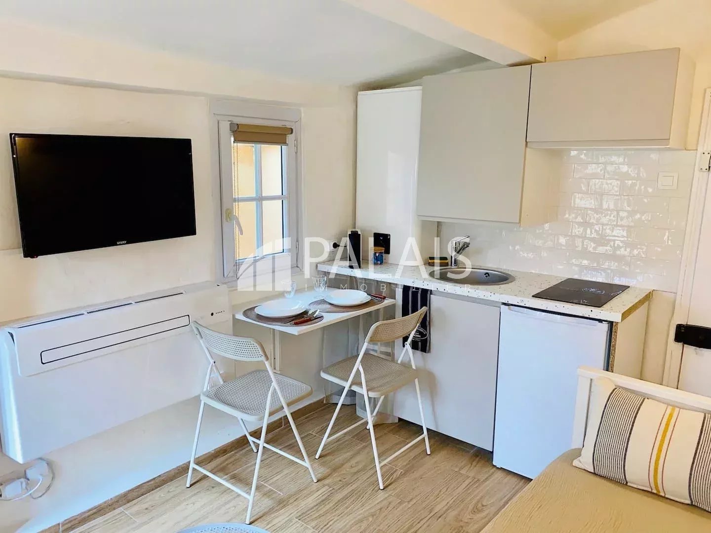 SOUS OFFRE ACCEPTEE Idéalement situé rue Rossetti, studette rénovée d'environ 11,52m². Très lumineux avec 4 fenêtres, climatisation, double vitrage. Vendu meublé, location saisonnière autorisée.