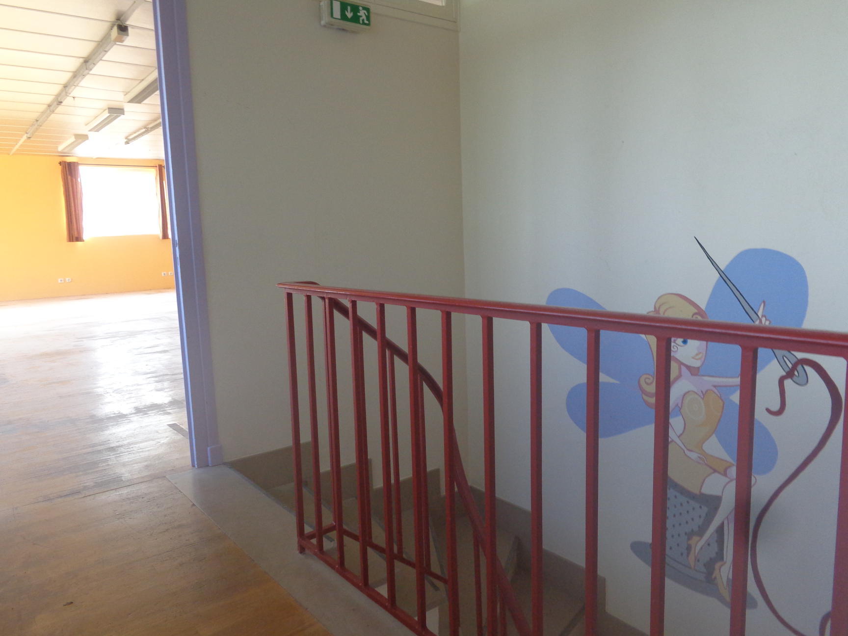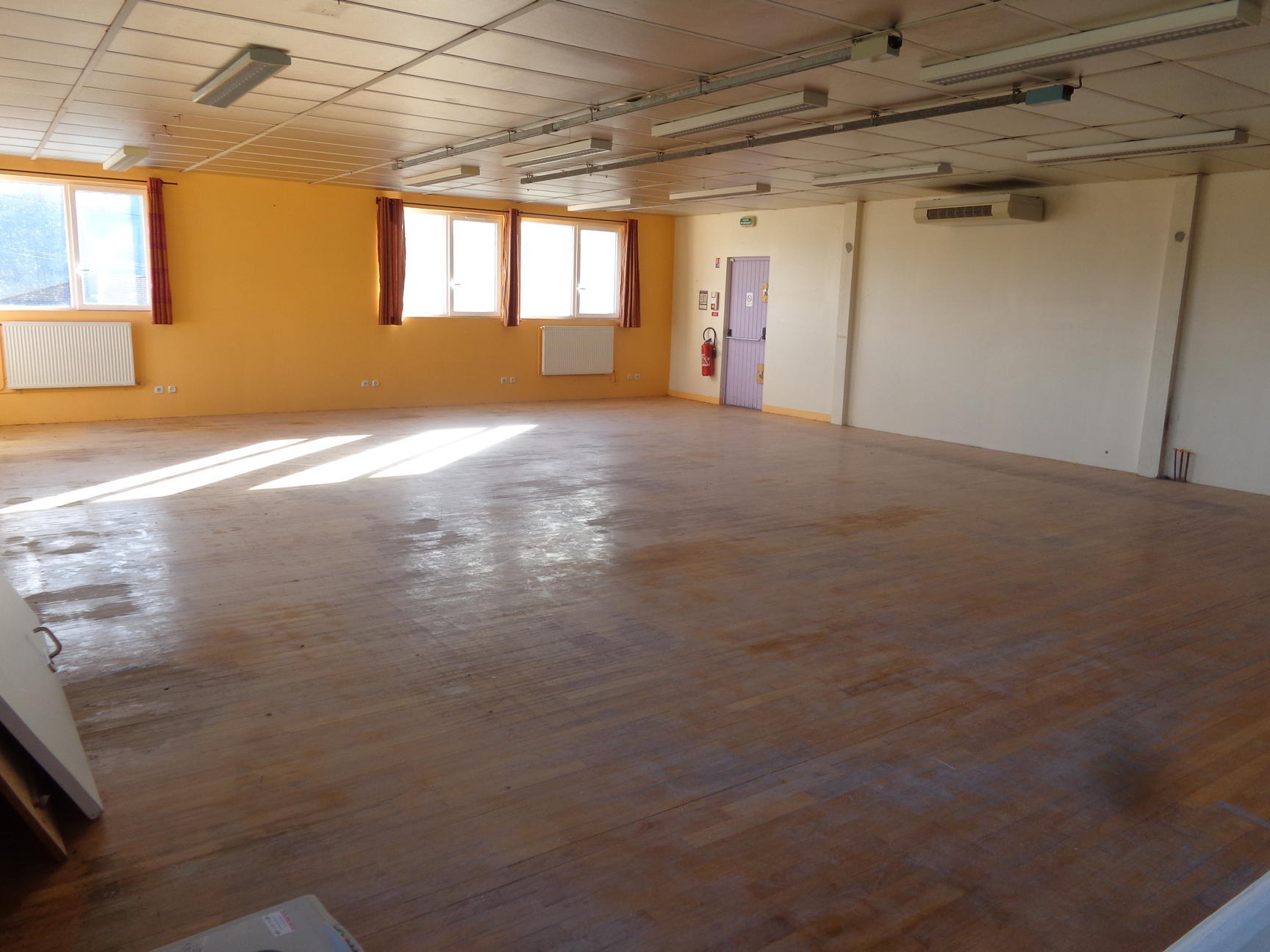 En rez-de-chaussée le bâtiment est composé d'une pièce de 68 m² avec coin cuisine, de trois pièces fermées pouvant faire office de bureaux, d'un vestiaire, d'une buanderie, d'un wc.