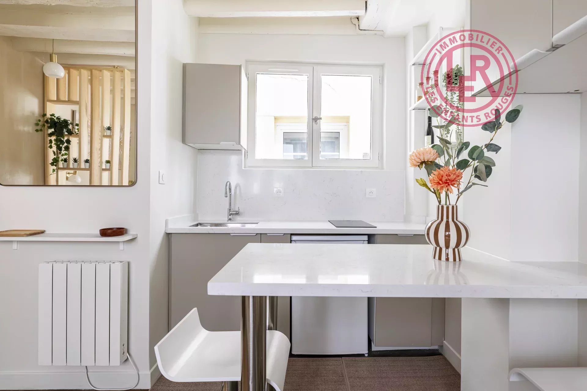 À deux pas de la rue de Bretagne et du Square du Temple, dans le très recherché quartier des Enfants-Rouges, un studio entièrement rénové de 18,7 m² Loi Carrez, situé au 2ème étage sur cour, dans un immeuble ancien avec gardien. Ce bien rare combine calme absolu, emplacement premium et prestations modernes : Une pièce principale lumineuse de 16,05 m² avec un coin nuit (poutres apparentes, parquet, double vitrage, meubles sur-mesure intégrés), une cuisine ouverte entièrement équipée, une salle d'eau avec WC, Rénovation complète de l’appartement en août 2025: électricité, plomberie, isolation, peinture, mobilier et électroménager. Vendu entièrement meublé et équipé, prêt à vivre ou à louer. Une cave privative et un cagibi en jouissance exclusive sur le palier complètent ce bien. Professions libérales possibles. Les informations sur les risques auxquels ce bien est exposé sont disponibles sur le site Géorisques : www.georisques.gouv.fr