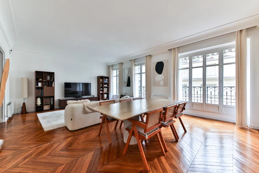 Situé rue Lalo, au 4ᵉ étage avec ascenseur d’un bel immeuble haussmannien, cet appartement non meublé de 160 m² offre de beaux volumes et tout le charme de l’ancien. Il se compose d’une entrée, d’un double séjour avec cuisine américaine, de trois chambres, de deux salles de bains et de deux WC. Une cave complète ce bien. Un appartement familial élégant, idéalement situé au cœur du 16e arrondissement, à proximité des commerces, des écoles et des transports.