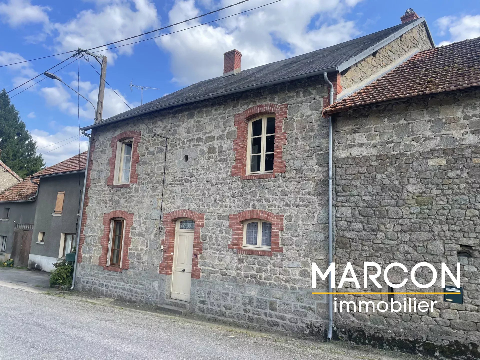 MARCON IMMOBILIER - Réf 89023 - CREUSE EN LIMOUSIN - SECTEUR MAUTES. L'agence Marcon Immobilier vous propose en exclusivité cette maison de bourg comprenant : Au rez-de-chaussée : entrée, cuisine, salle à manger, salon, couloir, salle d'eau-wc. Au 1er étage : palier, 4 chambres. Grenier au-dessus. Chauffage central au fuel. Grange attenante et remise. Le tout sur un terrain attenant de 922 m². Prix : 44 000 € (honoraires d'agence inclus 4 000 € TTC charge acquéreur). (Prix : 40 000 € hors honoraires). Réseau de 3 agences en Creuse : Aubusson, Guéret et La Souterraine. 05-55-66-20-37