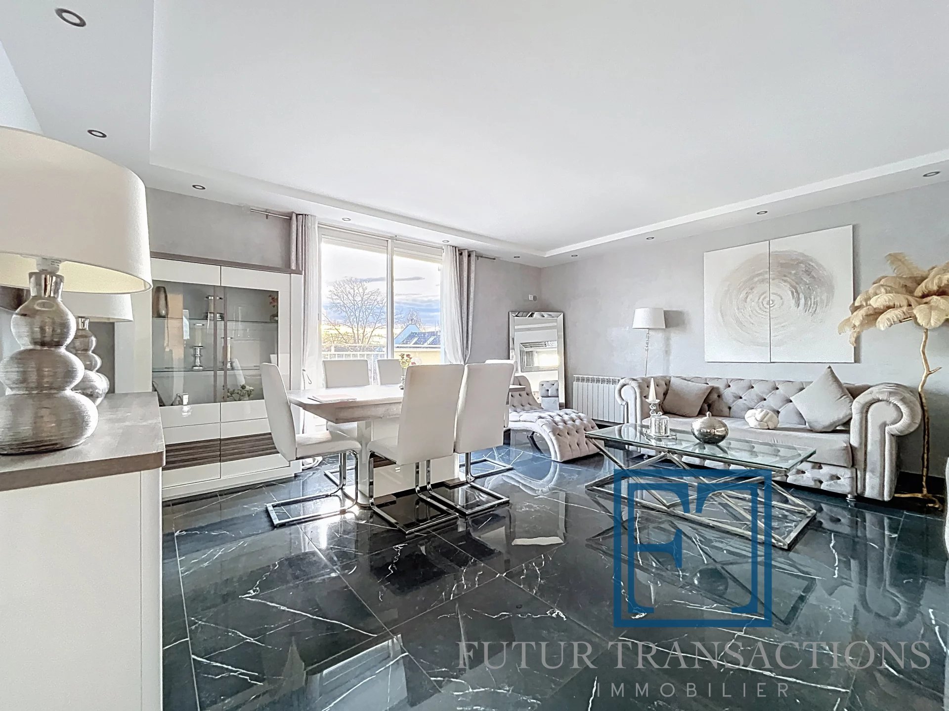 La pièce de vie généreuse s'ouvre sur un cadre contemporain, idéal pour recevoir famille et amis. Les fenêtres coulissantes permettent d'accéder à un espace extérieur lumineux, renforçant l'impression d'espace. Les voilages électriques et les auvents assurent un confort optimal, en régulant la lumière naturelle à souhait.
