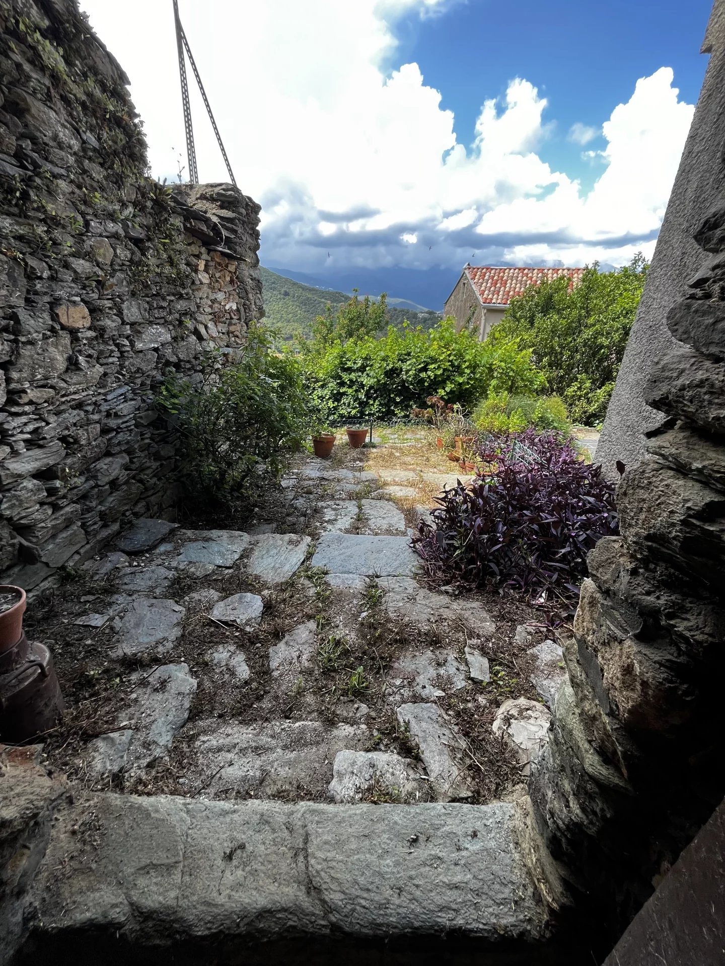 Maison de village sur 4 niveaux, 6 pièces + combles aménagés, cave et jardinet.