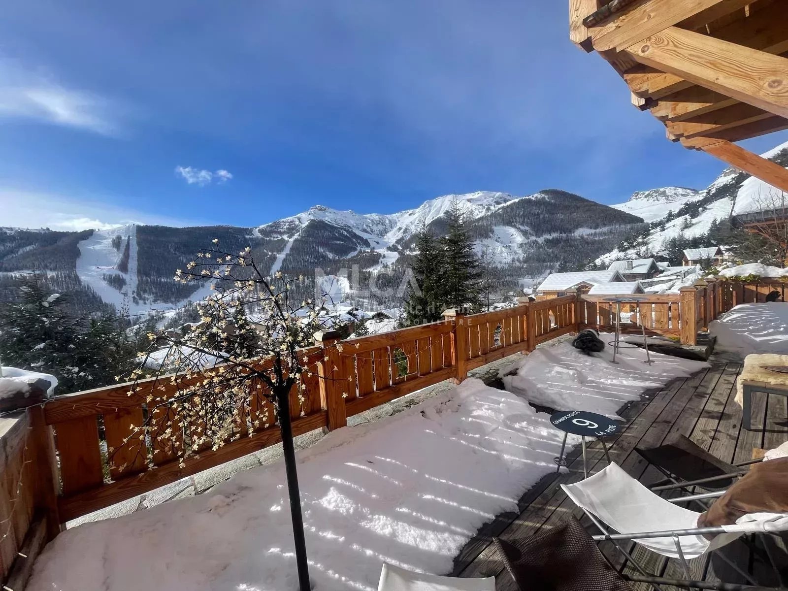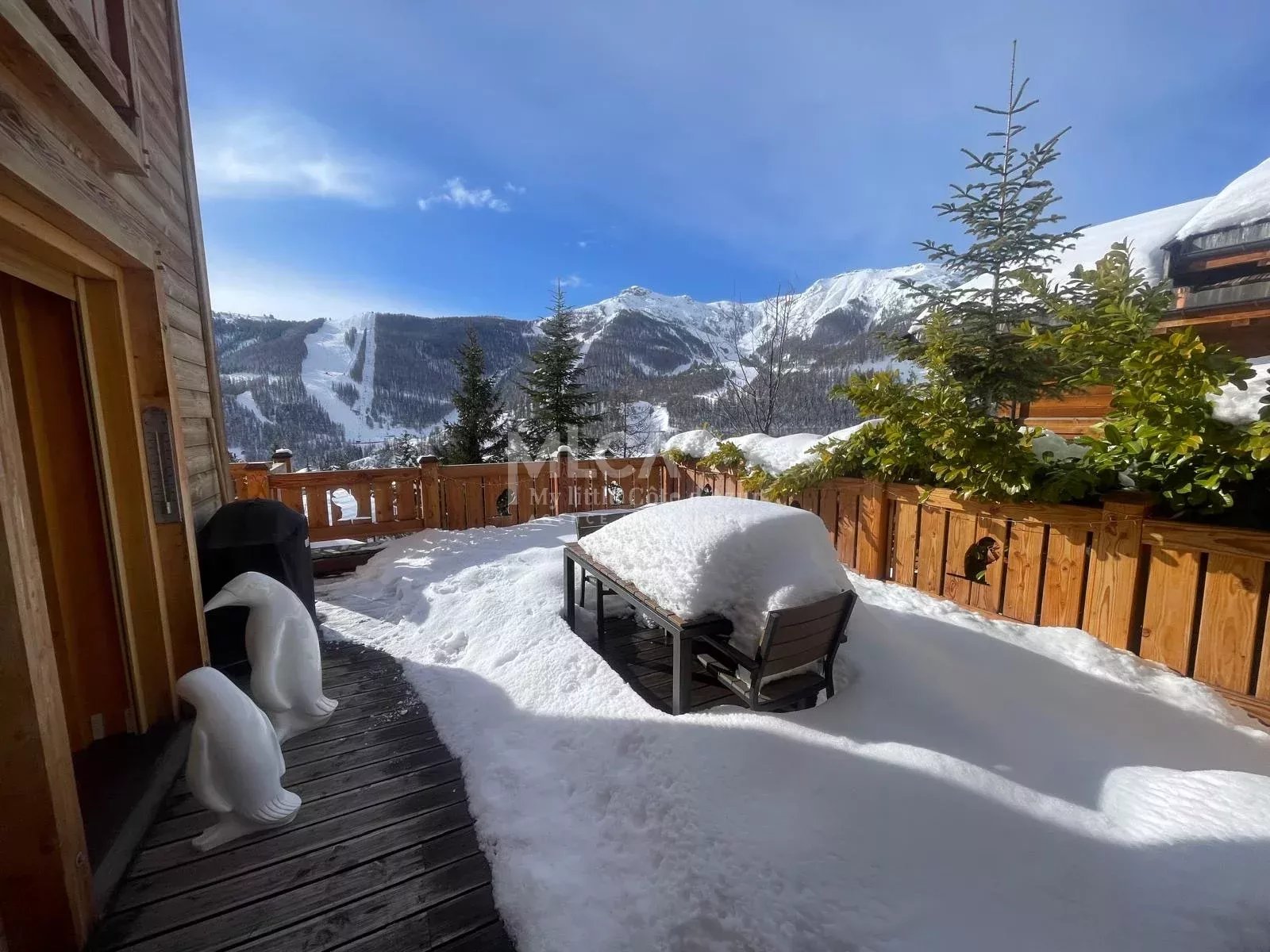 Très beau Chalet construit en 2012, édifié sur trois niveaux pour une surface de 175 m2 environ. La vue panoramique et exceptionnelle sur le domaine skiable et les montagnes environnantes ainsi que l'exposition Sud ouest sont des atouts majeurs de ce bien mais également l'arrivée skis aux pieds lorsque l'enneigement optimal le permet! Il est composé : Au rez de chaussée : - 1 garage de 50 m2 permettant le stationnement de 2 grands véhicules - 1 parking extérieur couvert, - 1 accès extérieur possible par un bel escalier en pierre qui conduit jusqu'au sas d'entrée dans la pièce à vivre - 1 accès intérieur par le garage et ensuite un palier donnant accès : ski room ou pièces à chaussures et rangements, placards techniques, Un grand escalier avec des demis paliers et éclairé par des fenêtres dessert les différents niveaux du chalet. 1er niveau : - 1 toilette invité avec lave mains - cuisine équipée ouverte sur un spacieux séjour salon inondé de lumière par les grandes baies vitrées et fenêtres latérales. - terrasse de 45 m2 environ face aux pistes de skis 2ème niveau : - chambre parentale avec salle de bain balnéo, douche, 1 dressing attenant - 2ème chambre avec salle de douche - 1 WC indépendant 3ème niveau : - 2 grandes chambres, - 1 grande salle de douche avec 1 WC Un produit d'exception avec une exposition idyllique proposé à la vente. Les risques auxquels ce bien peut être exposé sont consultables sur le site : georisques.gouv.fr