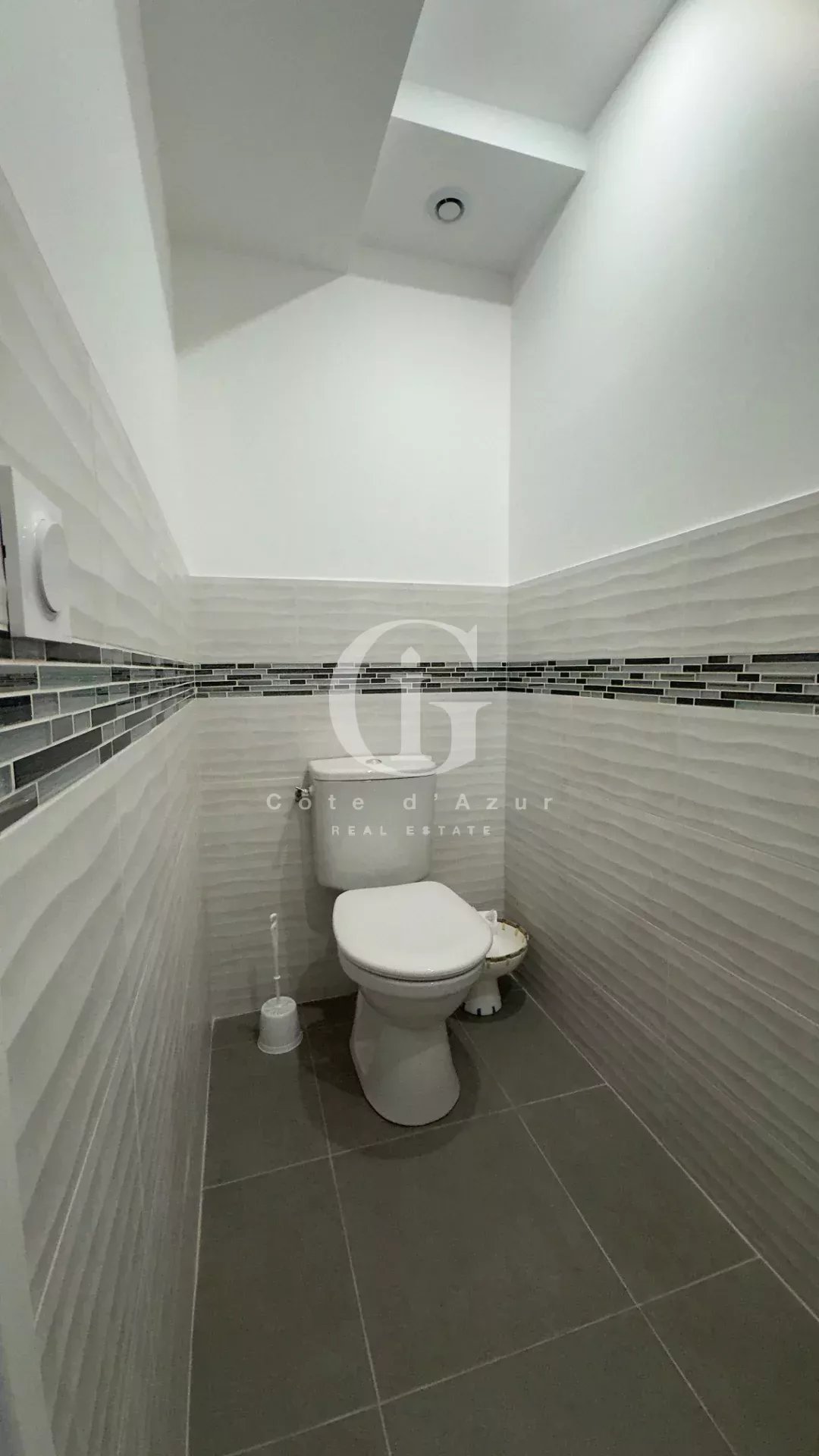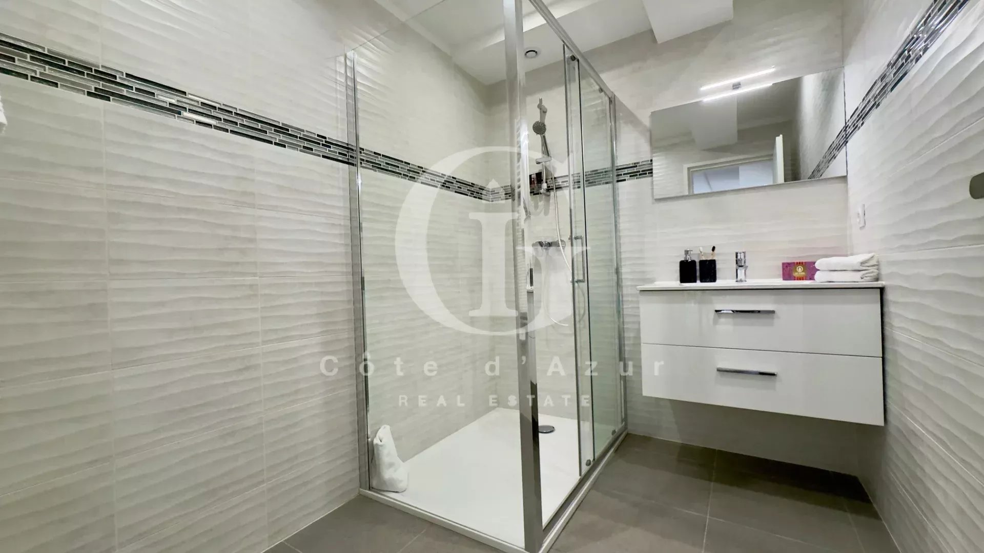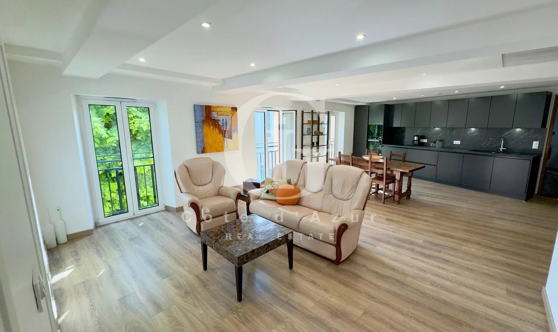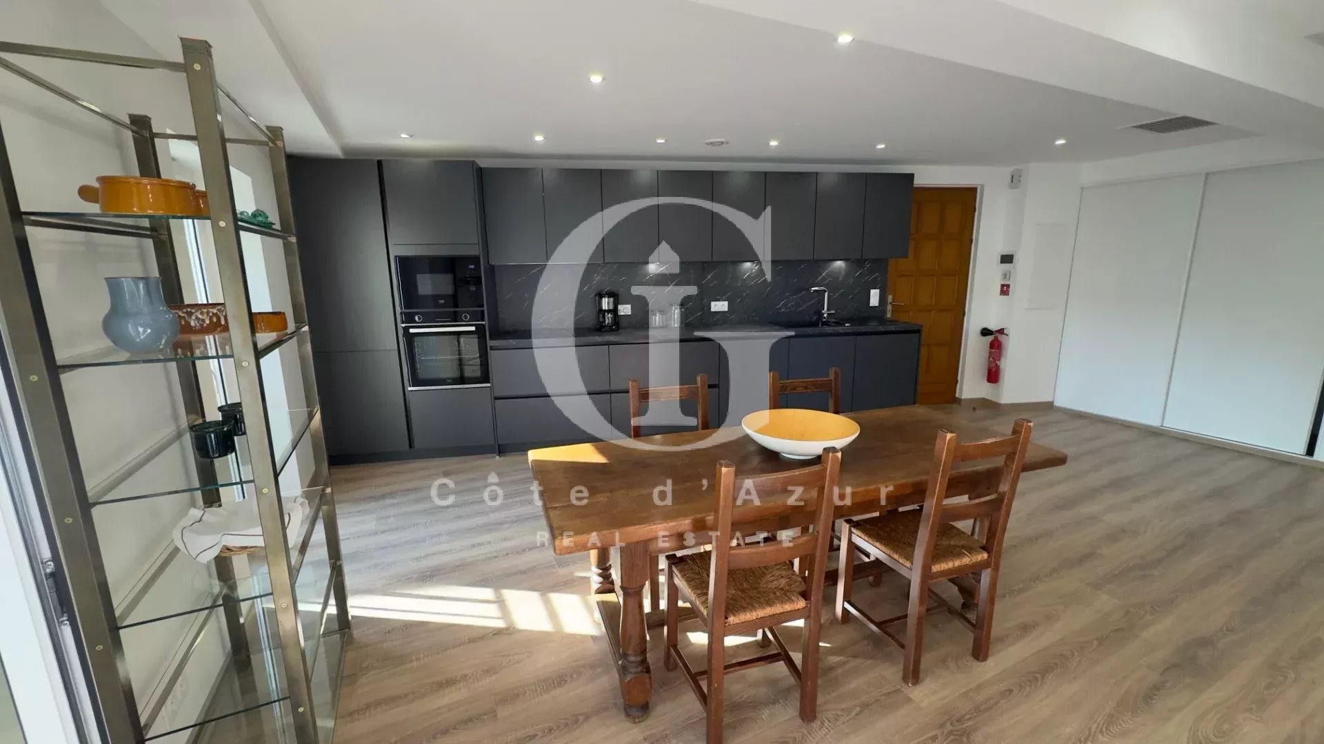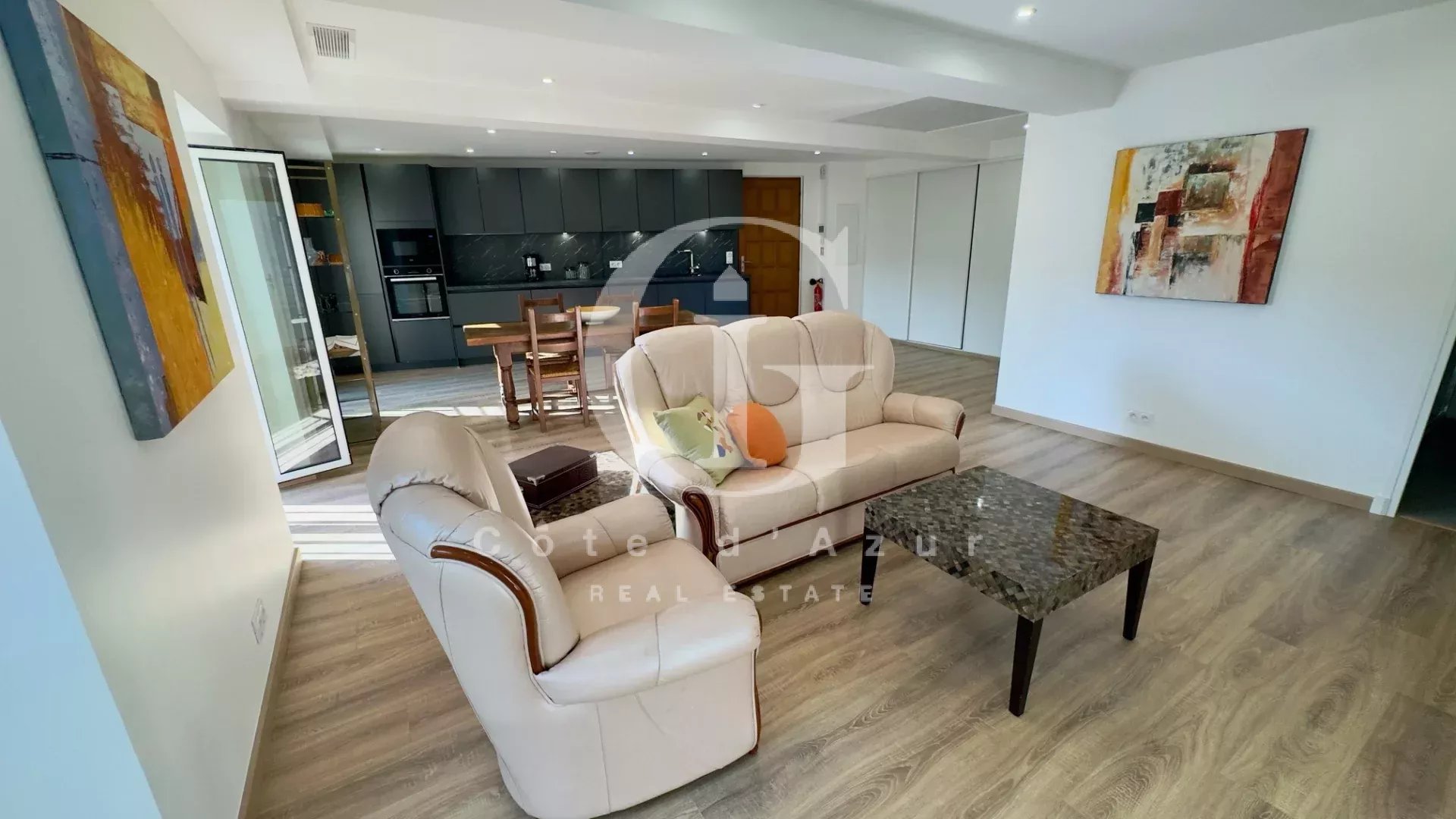 Location meublée. Vallauris, dans immeuble de ville au calme, beau 3 pièces au 1er et dernier étage comprenant une cuisine équipée neuve, grand séjour, wc indépendant, 2 chambres, une salle d'eau. Idéale colocation étudiante. Parking extérieur. Eau, electricité et internet en sus.