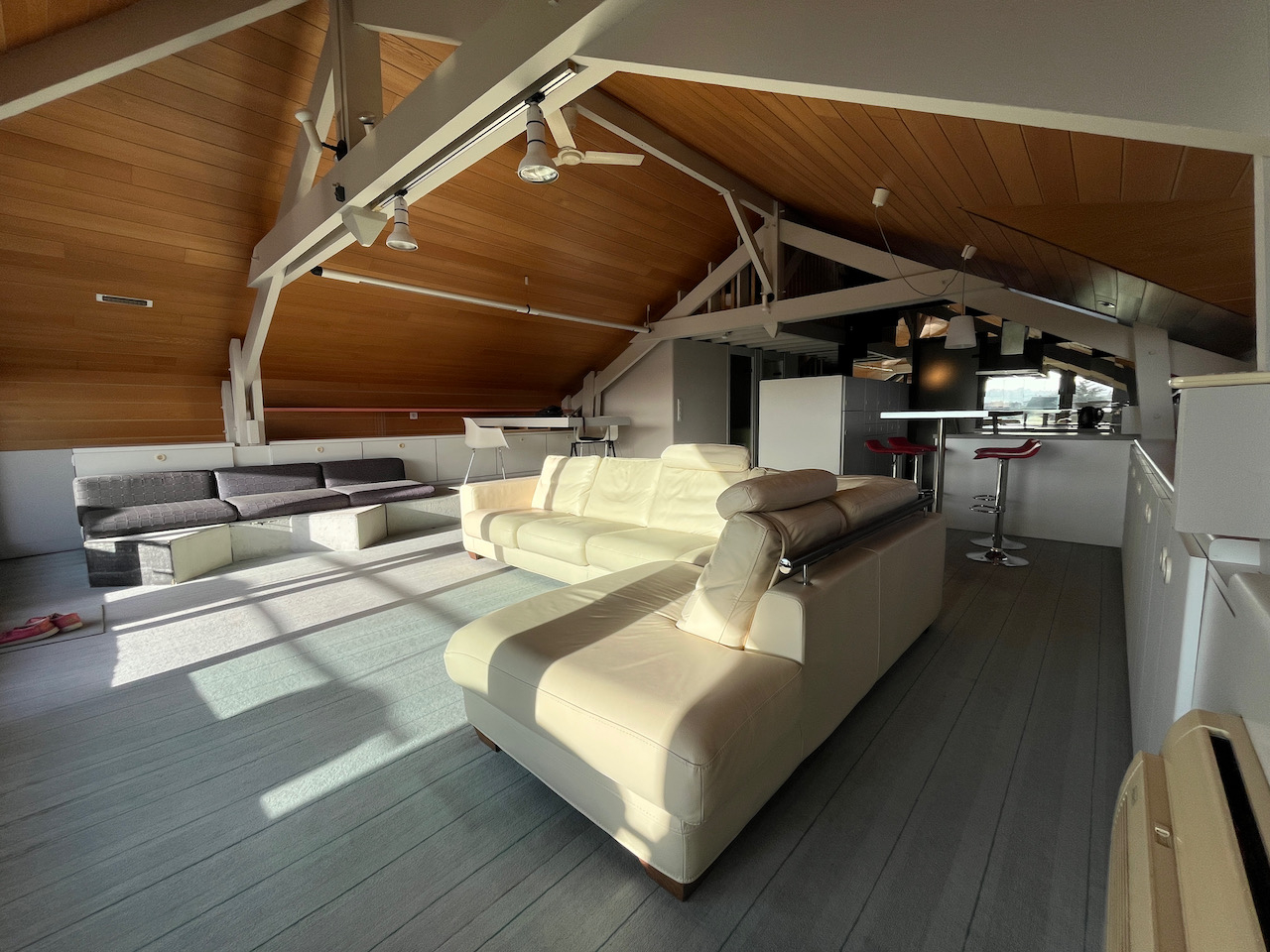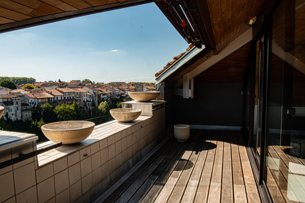 PRODUIT RARE, à VILLENEUVE SUR LOT en bord de Lot, grand appartement T2 bis d'architecte d'environ 80 m² SEMI-MEUBLE (cf photos) avec vue imprenable sur le LOT. Très cossu, vintage années 70, il est situé au 3ème et dernier étage d'un immeuble sécurisé (sans ascenseur). Il se compose : d'une vaste pièce de vie d'environ 44 m2 ouverte sur une terrasse d'environ 14 m2 exposée plein sud avec vue sur le Lot et la ville rive gauche, une cuisine équipée neuve avec four, plaques, hotte, lave-vaisselle, réfrigérateur et congélateur, une buanderie équipée de sa machine à laver, une chambre avec son lit en 160 cm neuf et ses nombreux rangements, une salle de bains et un WC indépendant. Mezzanine avec possibilité de deux couchages en 90 cm d'appoint. Ses atouts : les vues imprenables sur la bastide, climatisation réversible, nombreux rangements et logement très lumineux et cosy. PRODUIT UNIQUE A VISITER TRES VITE! Ce logement bénéficie d'un CERTIFICAT PERMIS DE LOUER et satisfait en tous points aux critères de décence du règlement sanitaire départemental. Classe énergie C. Les informations sur les risques auxquels ce bien est exposé sont disponibles sur le site Géorisques : www.georisques.gouv.fr Logement disponible Retrouvez toutes nos offres sur le site de la Maison de l'Immobilier. Avec la Maison de l'Immobilier, louez en toute sérénité !