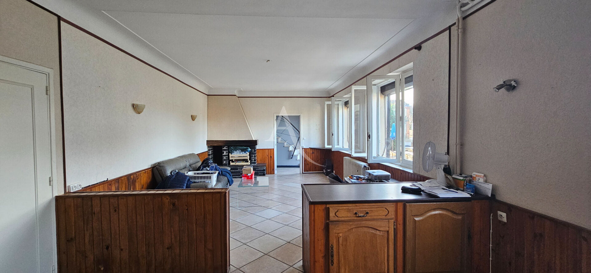 Située au coeur du village, place de la mairie, maison à rénover sur 2 niveaux, d'une superficie habitable de 143m2 plus combles exploitables avec grande hauteur. Une pièce principale en rdc, 3 salles en étages. Bâtiment à potentiel pour activités diverses, munis de 2 entrées.