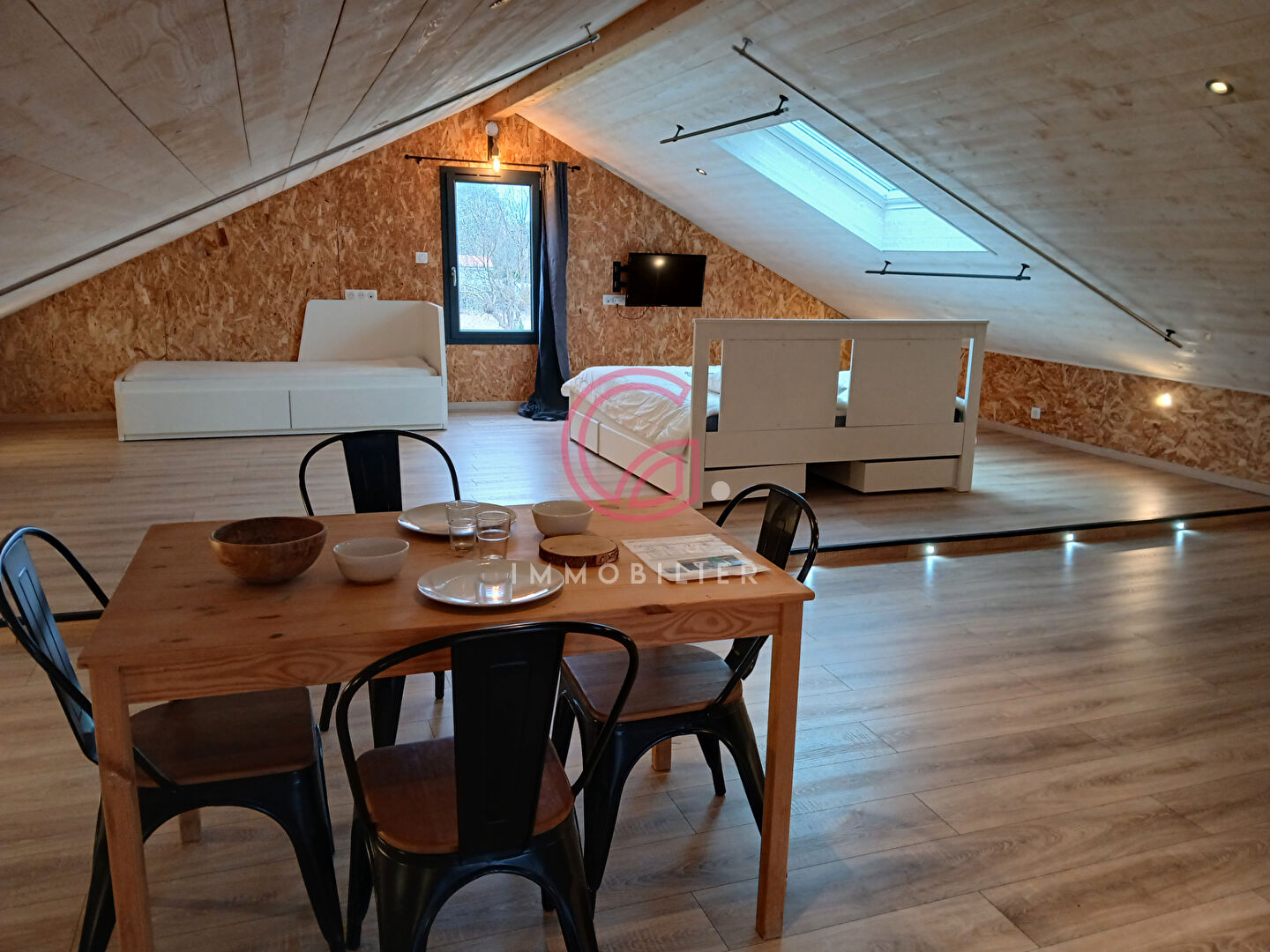 Joli loft meublé de 60m2 (au sol), situé sous les combles, comprenant : une pièce de vie, une salle d'eau, et un espace nuit. L' ensemble immobilier est divisé en deux appartements locatifs. L'eau et l'électricité sont compris dans les charges. Jérémy MARRIGUES (EI) Agent Commercial - Numéro RSAC : 953 292 588 - Mont-de-Marsan.