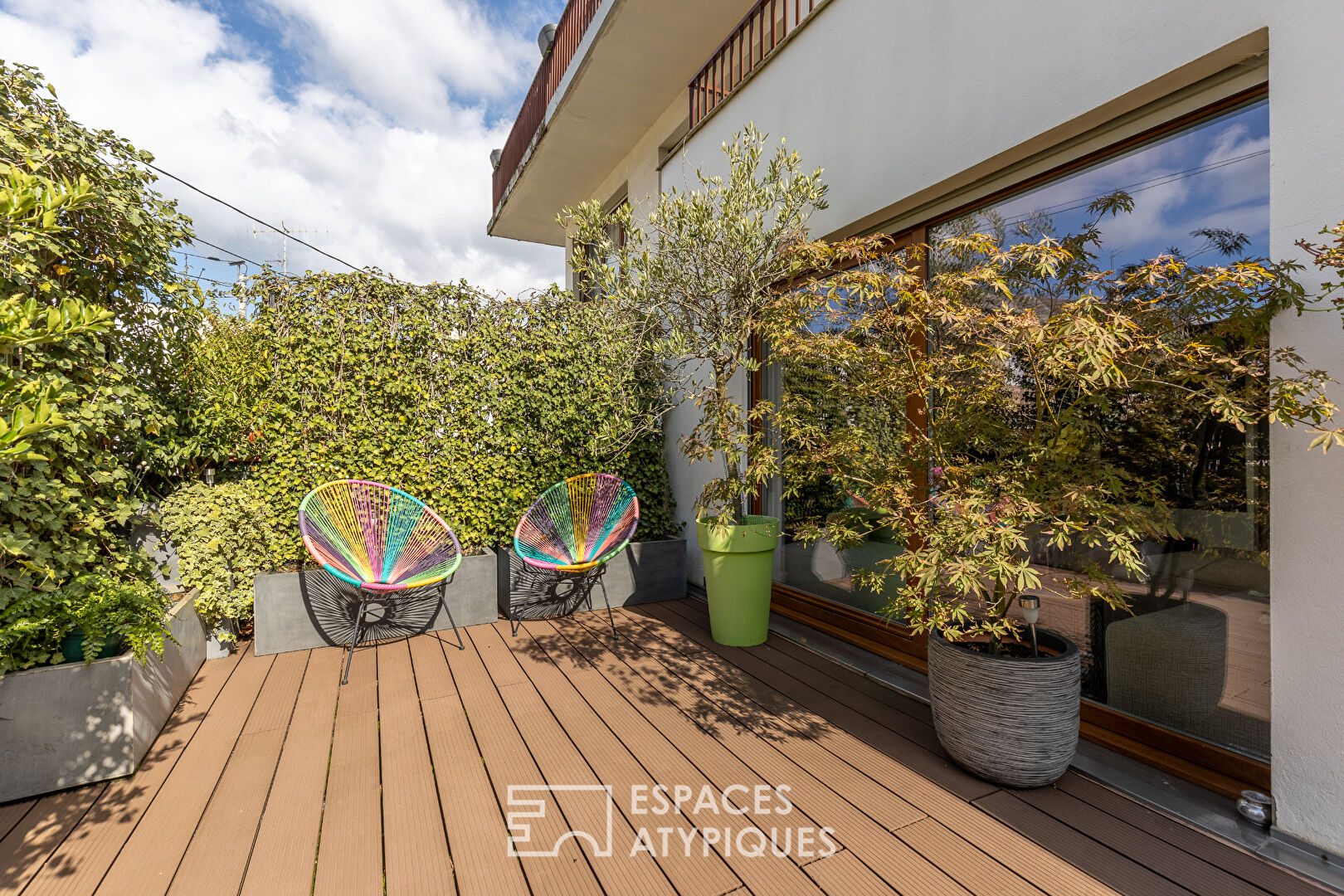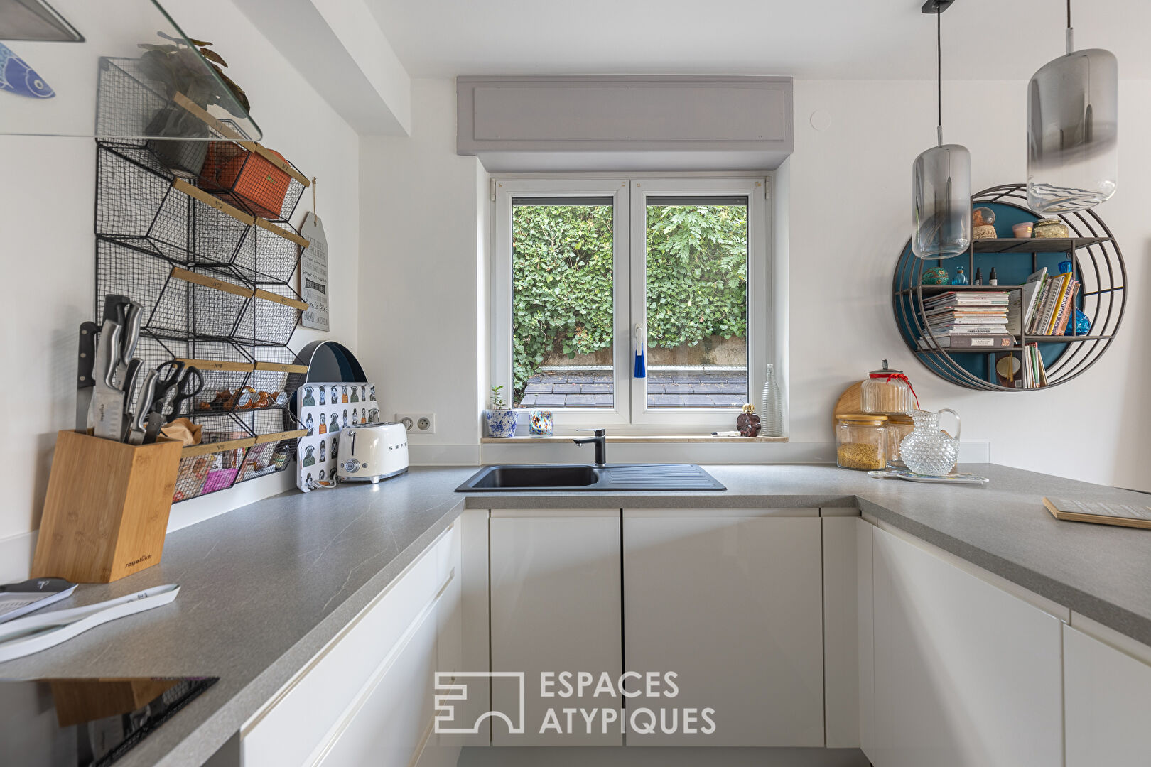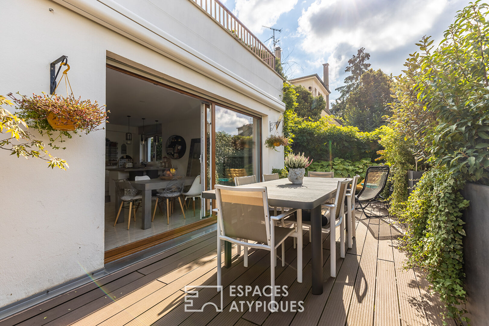 A seulement dix minutes à pied du centre-ville, cet appartement de 95 m² occupe le rez-de-chaussée d'une maison des années 60/70. Entièrement rénové en 2011, il conjugue le charme de l'ancien à une rénovation contemporaine soignée. Sa grande terrasse, aménagée sur trois pans, prolonge agréablement les espaces de vie, offrant un cadre privilégié pour profiter des beaux jours. La localisation stratégique, proche des commerces, écoles et transports, en fait un bien rare sur le secteur. Le classement énergétique actuel en F est provisoire. En effet, la toiture est en cours de réfection, un investissement majeur déjà réalisé par le propriétaire. A l'issue de cette intervention un nouveau DPE viendra confirmer l'efficacité de cette mesure. Dès l'entrée, le ton est donné : le hall distribue harmonieusement les volumes et laisse découvrir, sur la droite, une vaste pièce de vie baignée de lumière grâce à de larges ouvertures. L'espace s'articule naturellement entre une cuisine ouverte sur une salle à manger chaleureuse et un salon convivial où chaque détail reflète le soin apporté à la rénovation. Les matériaux choisis, les teintes douces et la circulation fluide participent à une atmosphère apaisante et élégante. A gauche du hall, l'espace nuit offre trois chambres confortables, pensées pour le repos et l'intimité, ainsi qu'une salle d'eau contemporaine aux belles finitions. L'extérieur constitue un véritable atout. La terrasse, aménagée avec goût sur trois côtés de l'appartement, devient un prolongement naturel des espaces intérieurs. Elle permet de profiter de différents moments de la journée selon l'orientation du soleil, tout en conservant une agréable intimité. Les aménagements réalisés témoignent d'un réel souci du détail et d'un entretien irréprochable, créant un lieu idéal pour se détendre ou recevoir en toute convivialité. L'environnement résidentiel, calme et verdoyant, bénéficie d'une proximité immédiate avec les commerces de quartier, les établissements scolaires et les transports en commun. Les axes autoroutiers vers le Luxembourg sont accessibles en cinq minutes, facilitant les déplacements quotidiens. Alliant confort moderne, fonctionnalité et emplacement privilégié, cet appartement séduit par son caractère singulier. Sa luminosité, son agencement fluide et la qualité de ses finitions en font un bien atypique, rare sur le marché, à la croisée du charme des années 70 et d'un art de vivre résolument contemporain. CLASSE ENERGIE : F / CLASSE CLIMAT : F Montant moyen estimé des dépenses annuelles d'énergie pour un usage standard, établi à partir des prix moyens des énergies indexés sur les années 2021, 2022, 2023 (abonnements compris) : entre 2450 et 3350 euros Contact : Cynthia 06.60.75.60.62 Copropriété de 4 lots - dont 4 lots habitation. Charges annuelles : 4800 euros. Cynthia FERRARI (EI) Agent Commercial - Numéro RSAC : 949 179 436 - Metz.