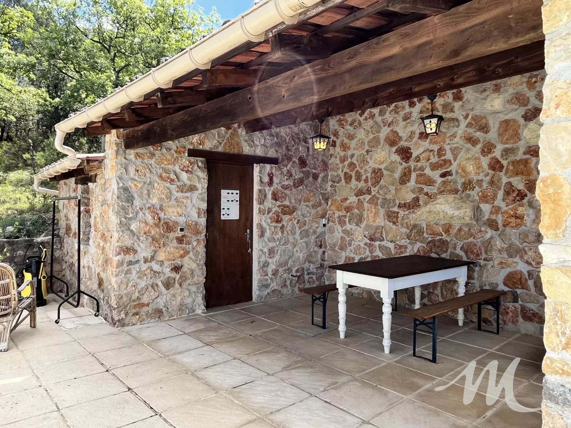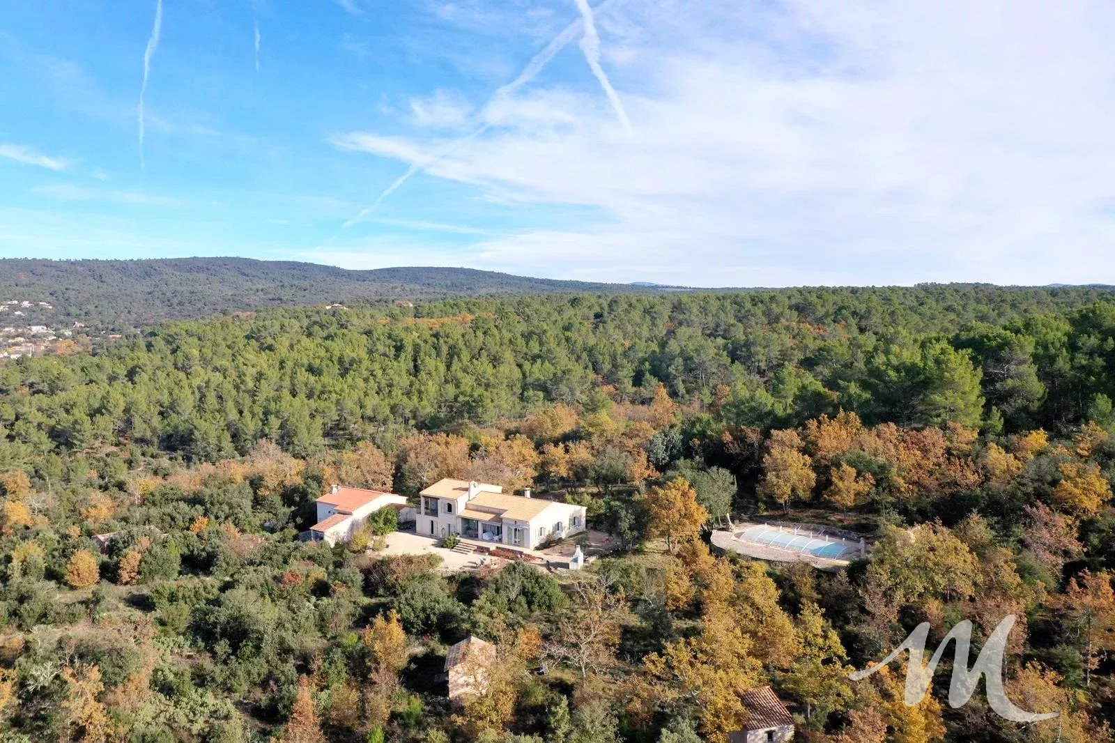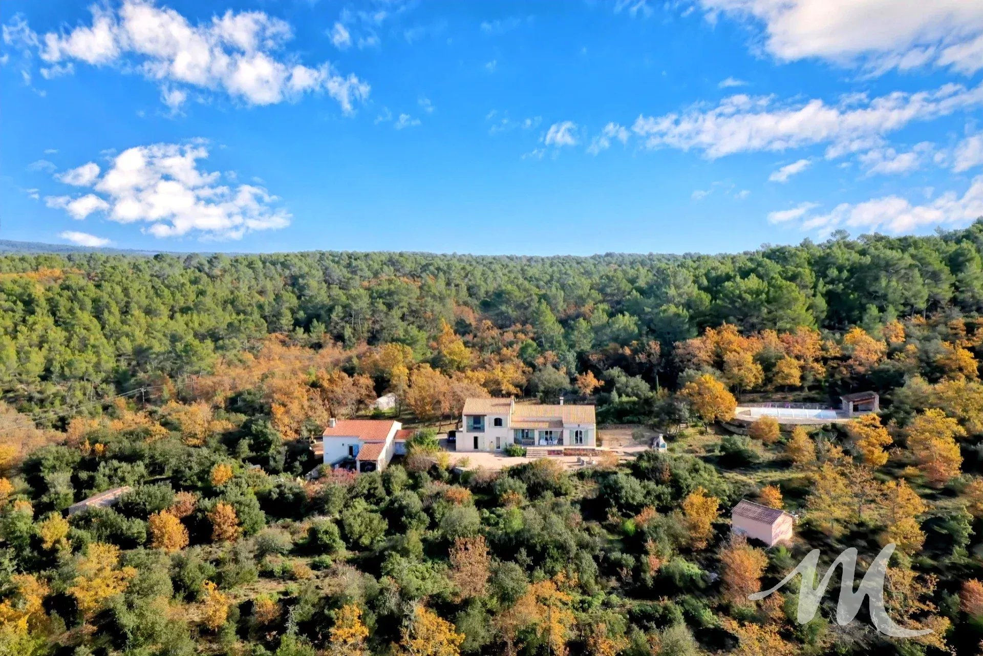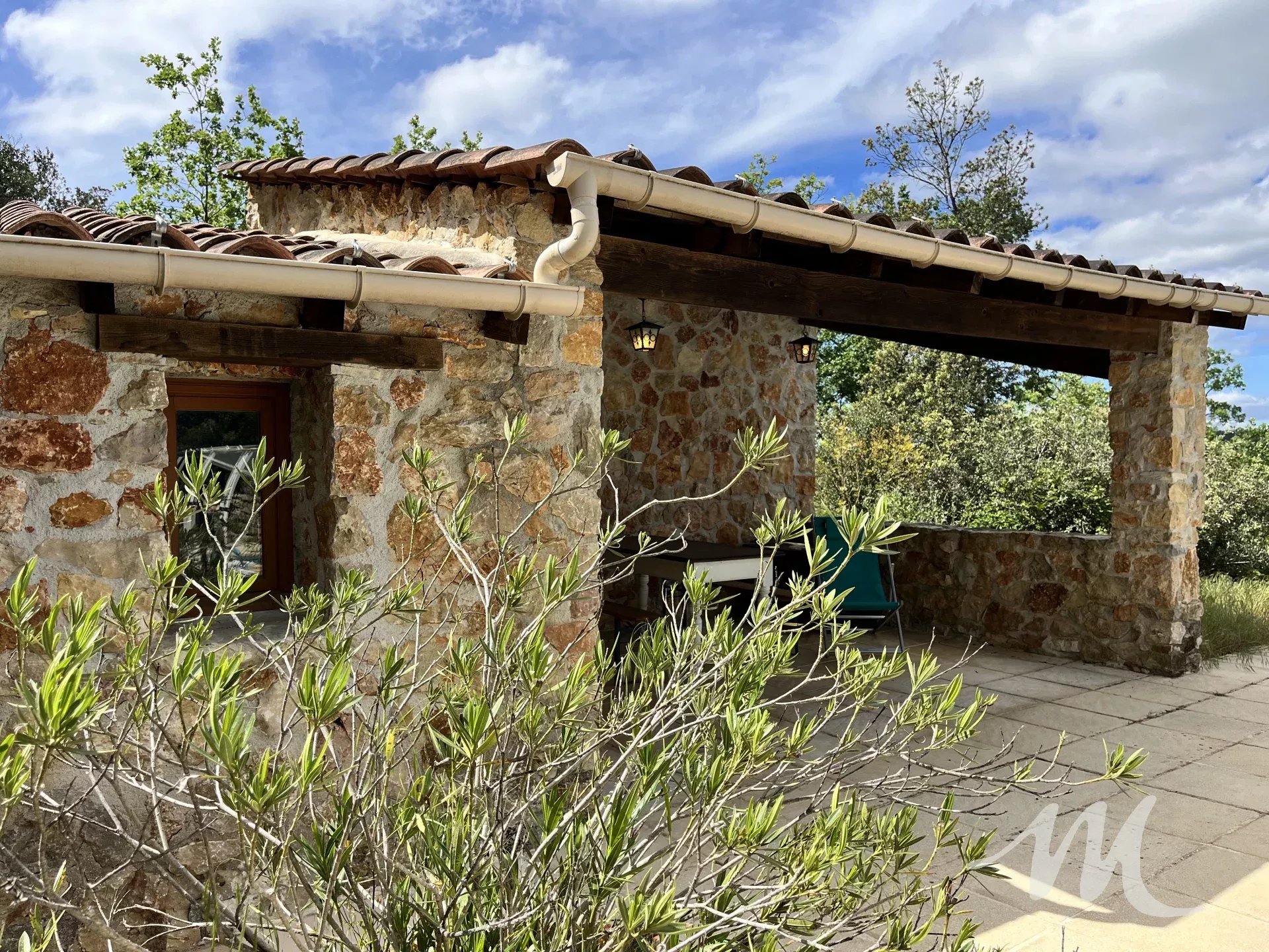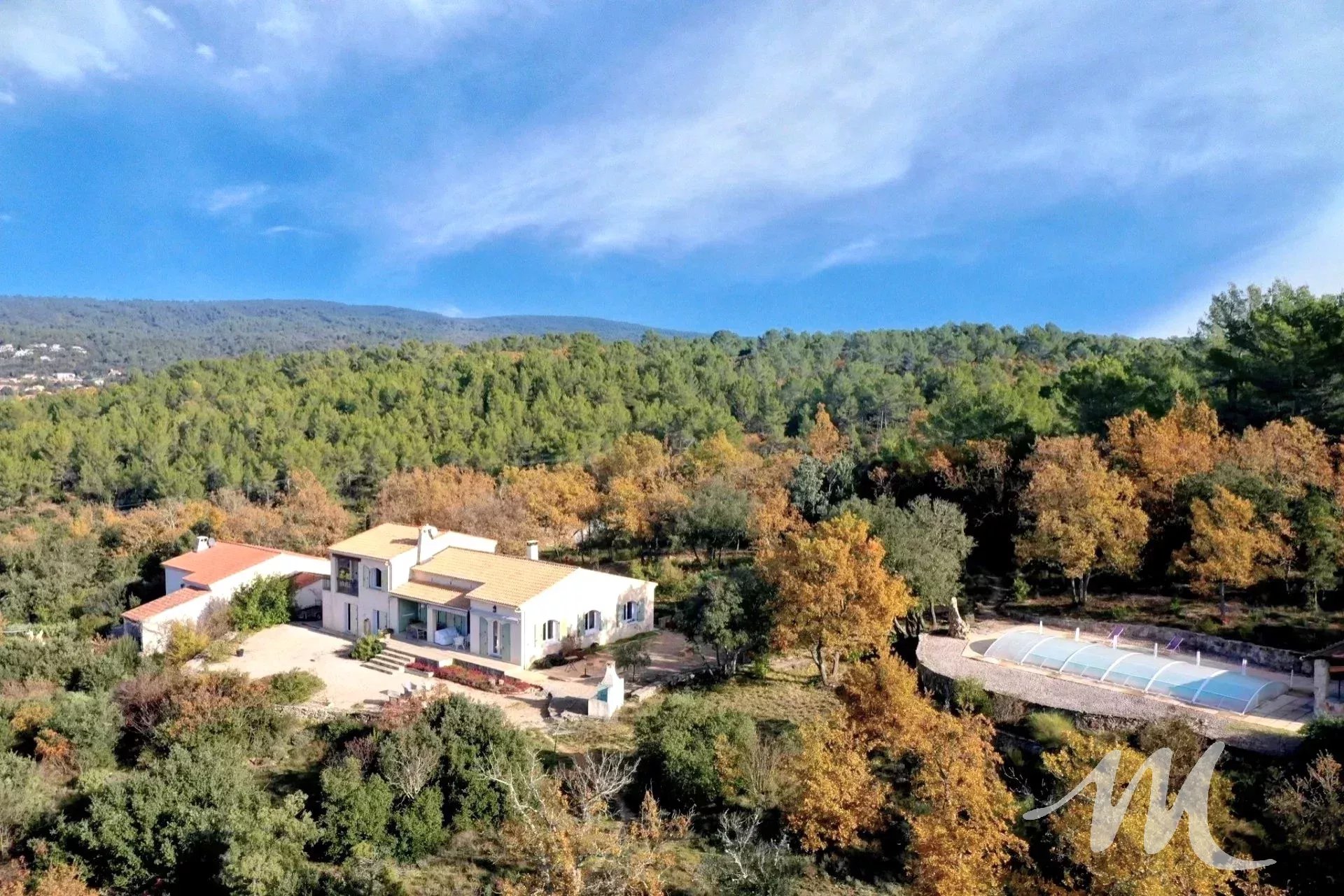 RARE A LA VENTE, propriété de charme sur un grand terrain de plus de 9 hectares dominant exposé sud avec une vue dégagée. Vous disposez de 2 habitations, la principale de construction traditionnelle d'une surface de 160 m² environ avec un double garage situé au rez de chaussée de la maison, et une seconde de 75 m² pour accueillir de la famille ou faire l'objet de location. Le terrain est boisé, végétation locale et champêtre et agrémenté d'un espace piscine avec une grande piscine de 11 X 4.5, son pool house en pierre, un grand garage indépendant, une ruine en pierre et des dépendances.
