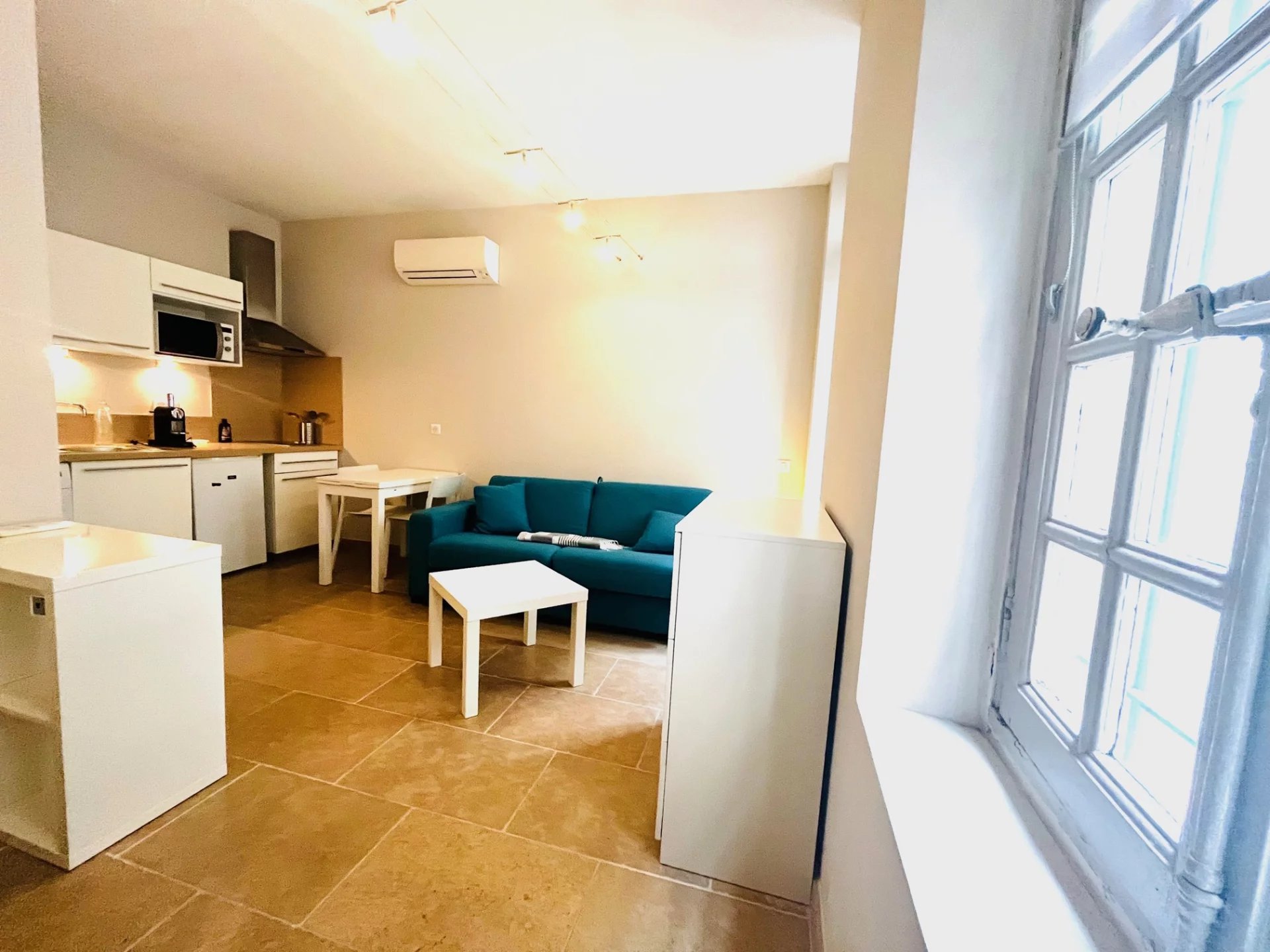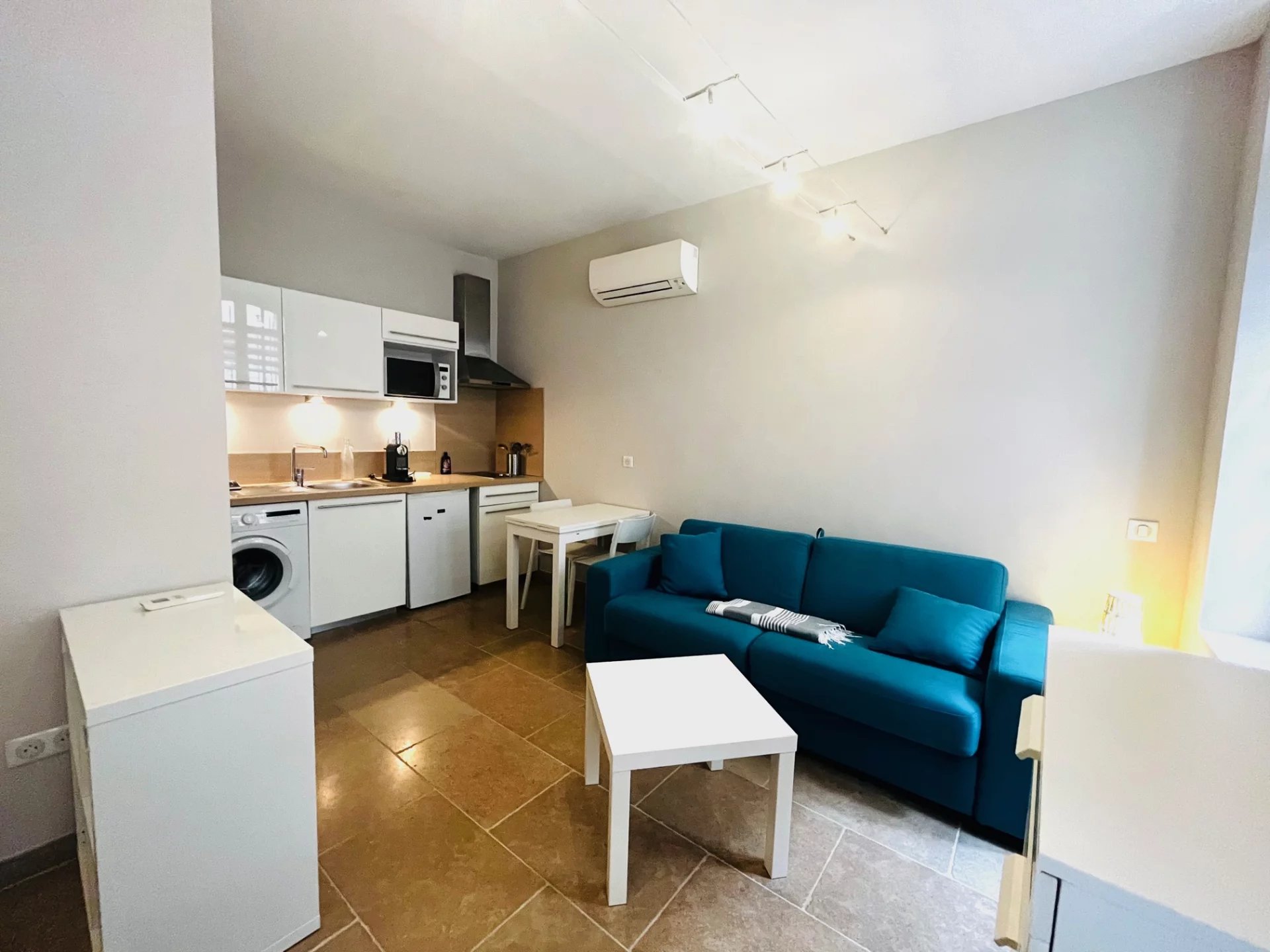 A louer, charmant studio entièrement meublé, équipé et climatisé en rez de chaussée en plein coeur du centre historique, rue Réattu à deux pas du musée, de la gare et des commodités du centre ville. Les charges comprennent l'eau, la TOM et l'électricité des communs.
