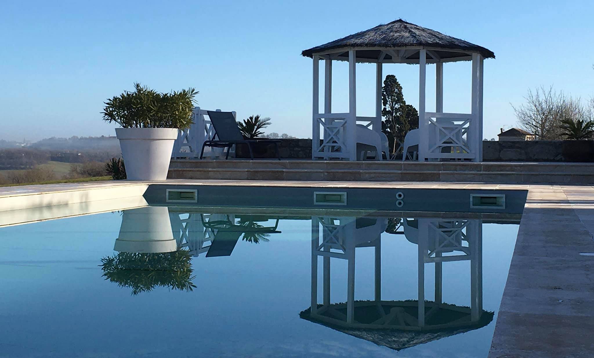 A mi- chemin entre Bordeaux et Toulouse, sur les coteaux du Lot et Garonne, très belle maison de Maître comprenant cuisine, office de service, salle à manger, deux salons, cinq chambres toutes équipées d'une pièce d'eau et d'un wc. Gîte indépendant de deux pièces, belles terrasses couvertes, piscine chauffée, garage. Rénovation de très grande qualité, propriété en parfait état, vue dominante et dégagée, à découvrir absolument.