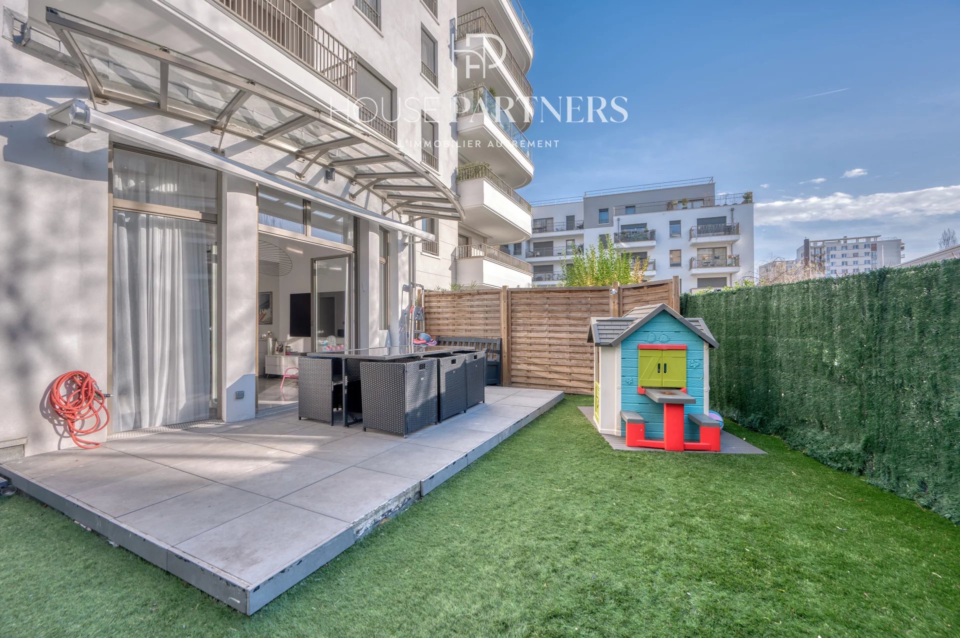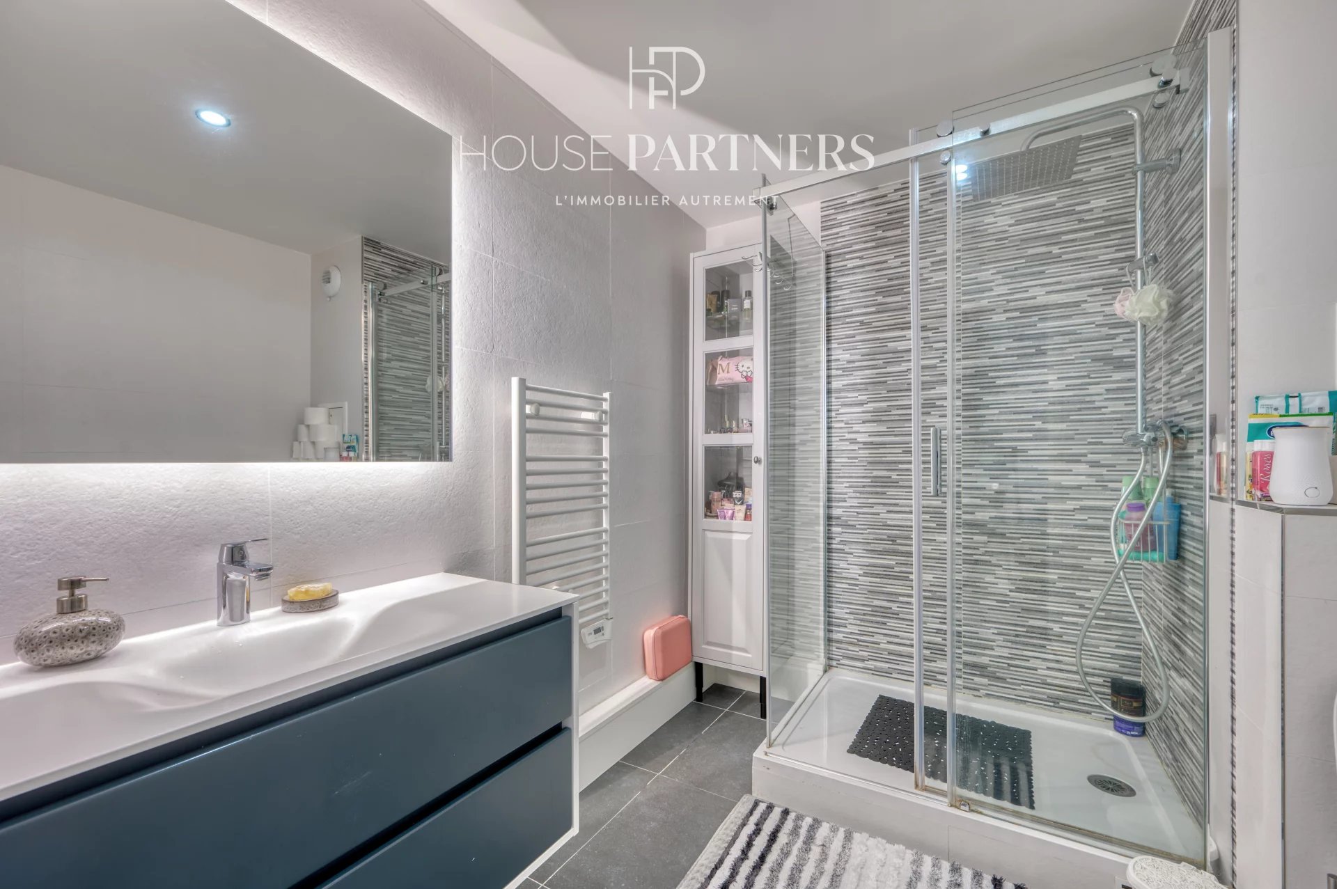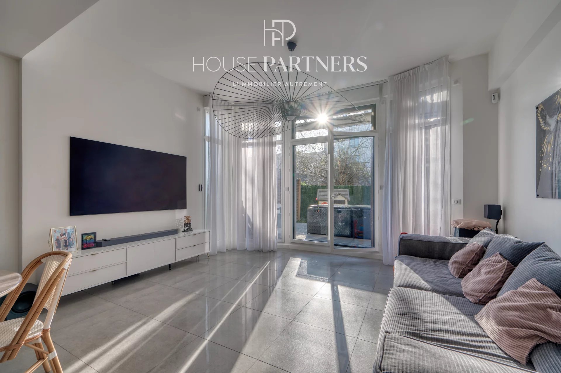 Dès l’entrée, l’appartement dévoile un séjour élégant et lumineux, intégrant une cuisine équipée, et s’ouvrant de plain-pied sur un jardin privatif de 65 m², véritable prolongement de l’espace de vie. Ce niveau comprend également une chambre ainsi qu’une salle de douche avec toilettes.