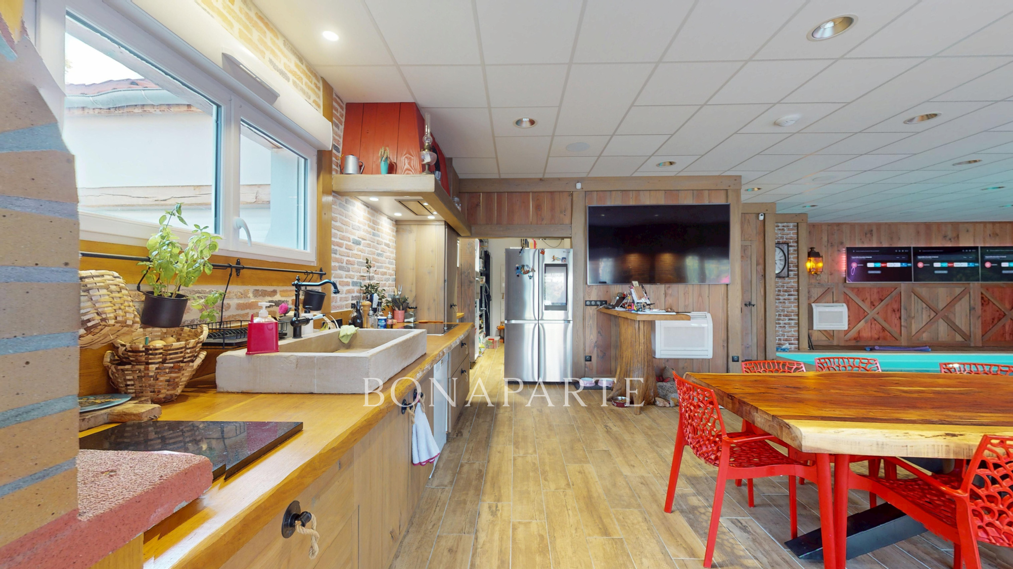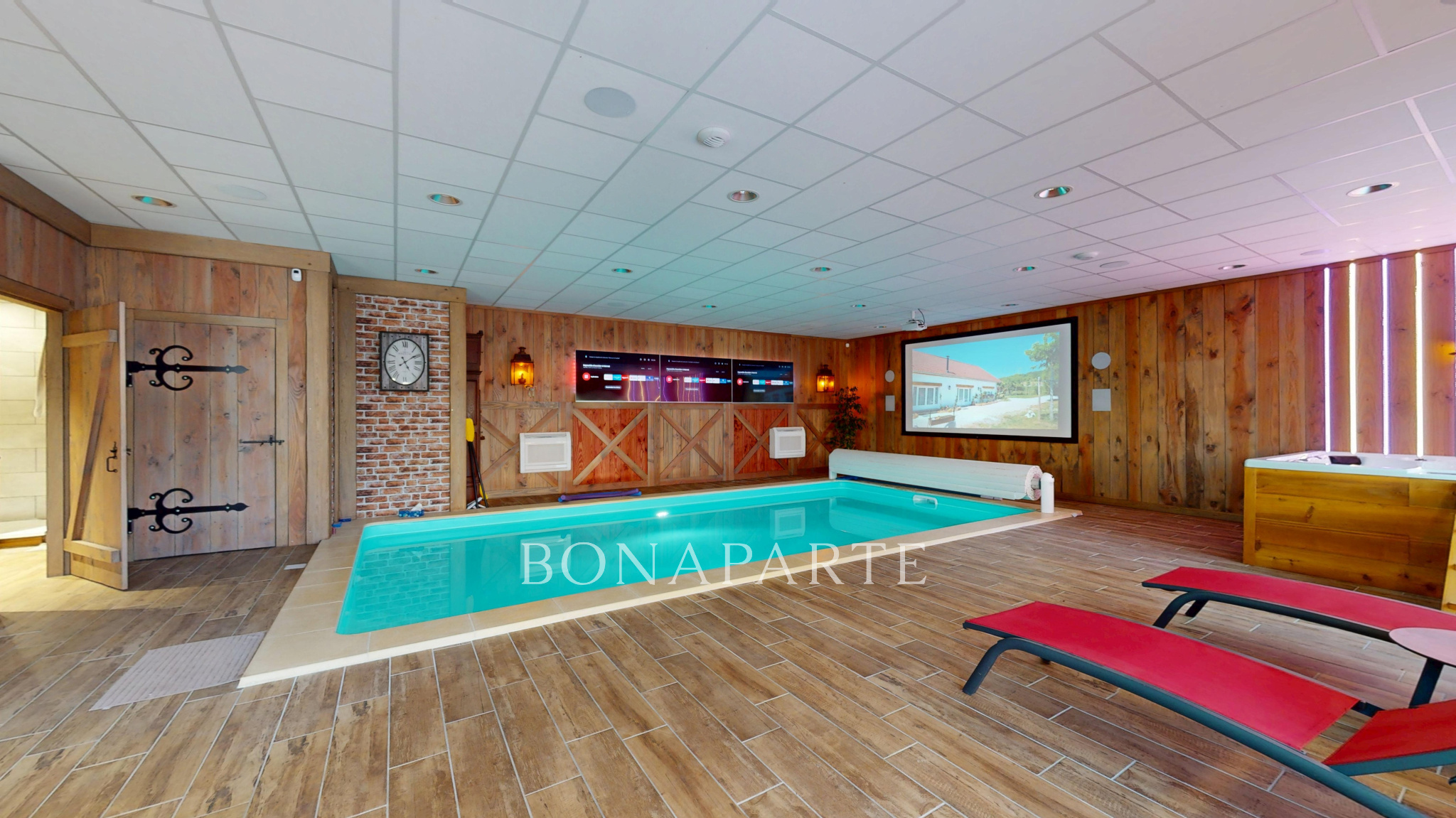 Mais ce bien se distingue surtout par son pool house indépendant de 140 m2, un véritable espace de vie et de réception, composé d'une grande pièce avec cuisine aménagée et équipée de style campagne, four à pain et cuisinière à bois. Vous profiterez également d'une piscine intérieure 4x8 m, d'un spa 4 places, d'une salle de bains à l'italienne avec WC et même d'un rétroprojecteur pour des soirées inoubliables.