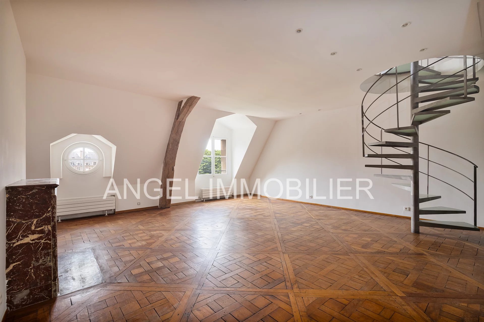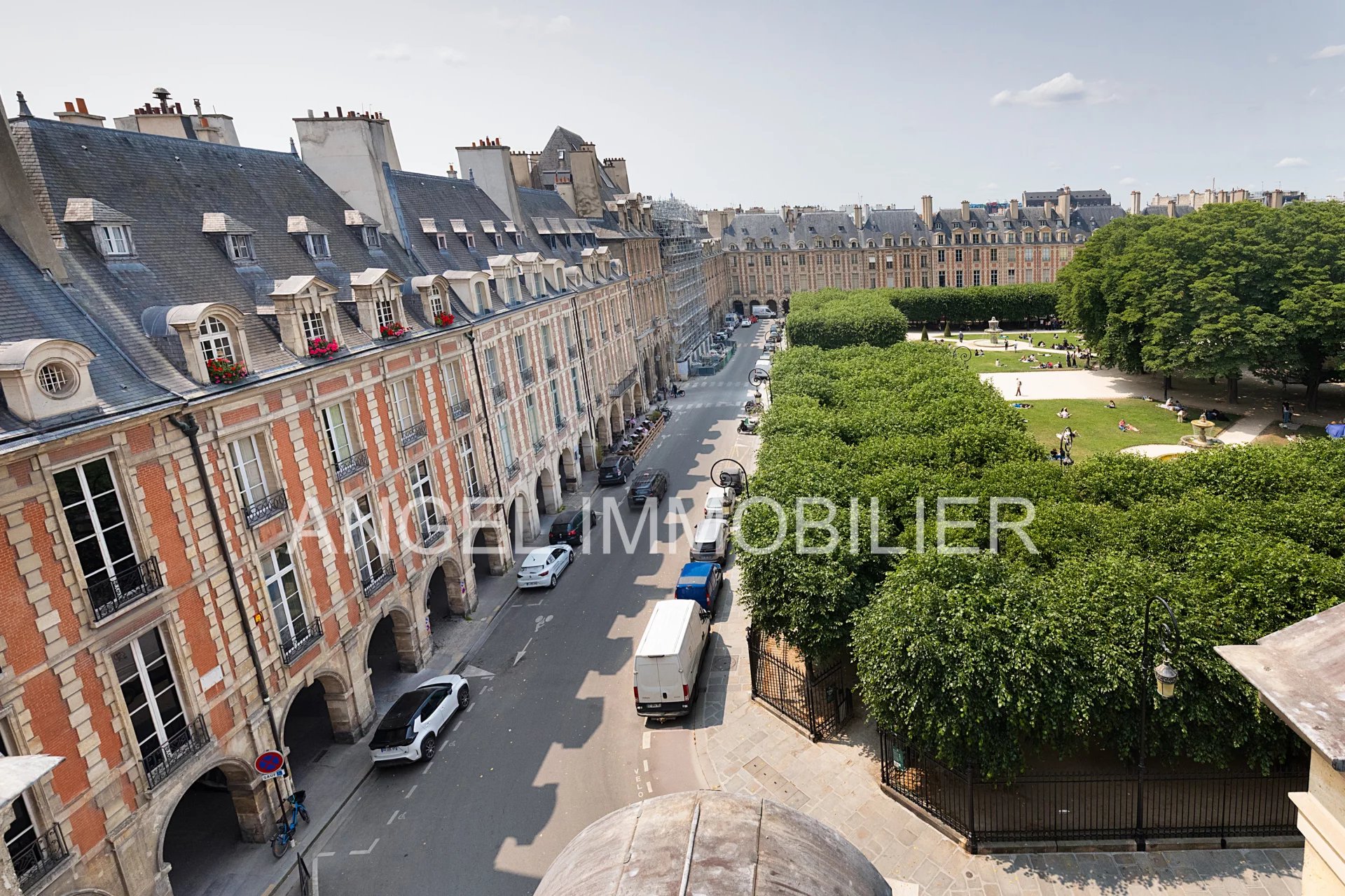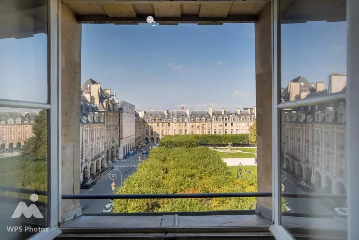 Exceptionnel, rare à la vente : Place des Vosges, duplex 3e et 4e étage (dernier étage) avec ascenseur, traversant Ouest et Est, vue imprenable sur la place des Vosges, calme, lumière et beaux volumes pour cet appartement familial et/ou de réception. D'une surface de 183,42 m² au sol, 146,19 m² Carrez soit 165 m² pondérés, l'appartement offre au premier niveau une belle entrée, un vaste séjour, une salle à manger, une cuisine séparée (peut être transformée en 4e chambre), une vaste chambre avec deux fenêtres dont un espace bureau, une salle de bains avec toilettes. Au second niveau, une chambre, une salle d'eau avec toilettes, une grande pièce faisant actuellement office de bureau et second salon peut être transformée en 3ème chambre. Deux caves complètent le bien. Possibilité de parking en supplément. Parfait pour résidence principale ou pied à terre ou investissement. Nombre de lots dans la copropriété : 72 dont 33 lots principaux. DOSSIER COMPLET SUR DEMANDE;