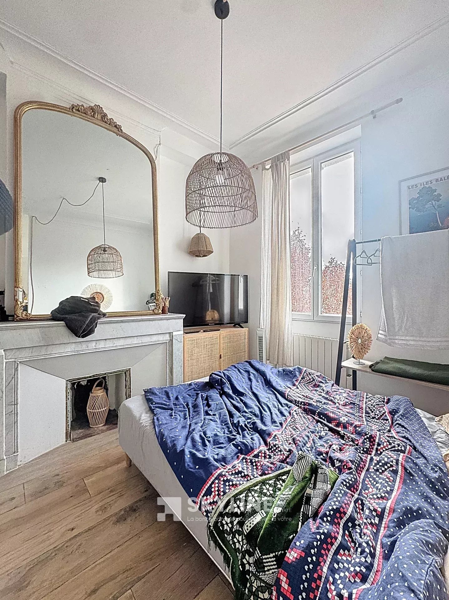 Belles moulures, grande hauteur sous plafond et cheminée, alliant charme de l’ancien et rénovation contemporaine