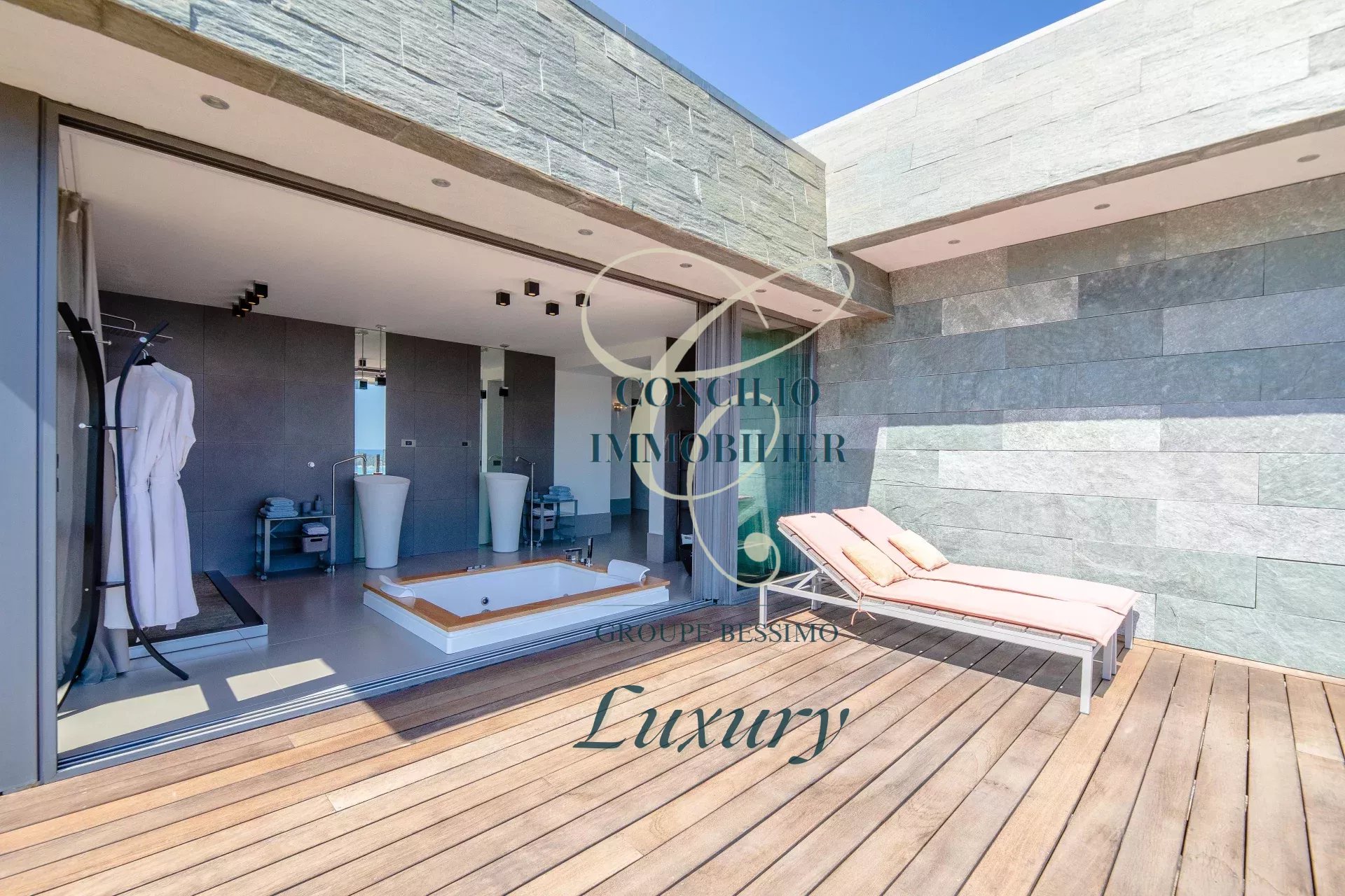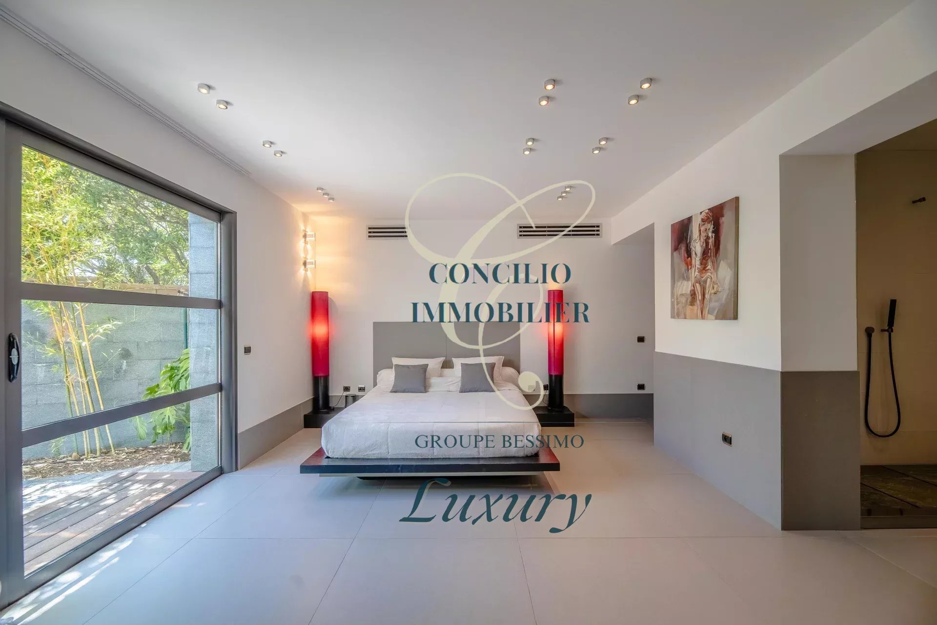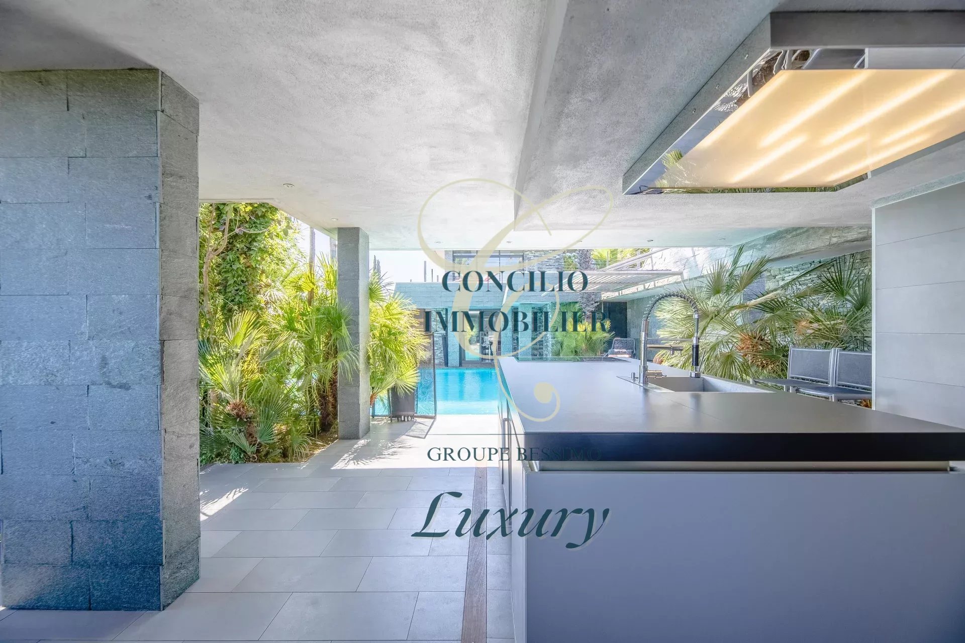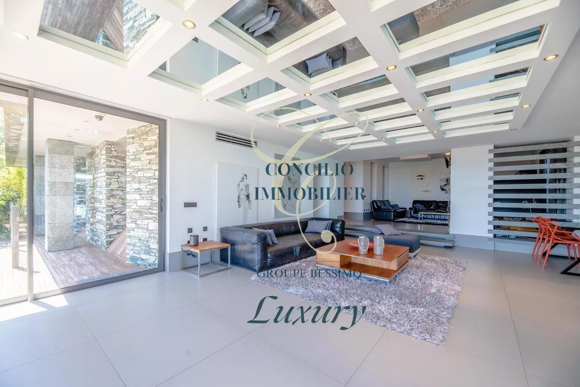 Située dans un environnement privilégié, la villa Diamond Head est une villa contemporaine d’exception édifiée sur trois niveaux, offrant une vue mer panoramique. D’une surface habitable de 370 m², elle se compose de 9 pièces dont 6 chambres, implantée sur un terrain de 1 939 m². La villa dispose de prestations haut de gamme, incluant une piscine chauffée à débordement, un spa, un solarium ainsi qu’un putting green privé. Les espaces intérieurs bénéficient de volumes généreux et lumineux, avec des fenêtres coulissantes en aluminium, du double vitrage, la climatisation, une ventilation double flux et des équipements modernes. Un pool house avec cuisine d’été équipée, une cave à vin et des espaces dédiés à la détente complètent ce bien. La propriété est située à proximité immédiate de la mer, de la plage et du port, accessibles à pied, tout en restant proche du centre-ville et des commodités. La villa est a été construite en 1988. Les informations sur les risques auxquels ce bien est exposé sont disponibles sur le site Géorisques.