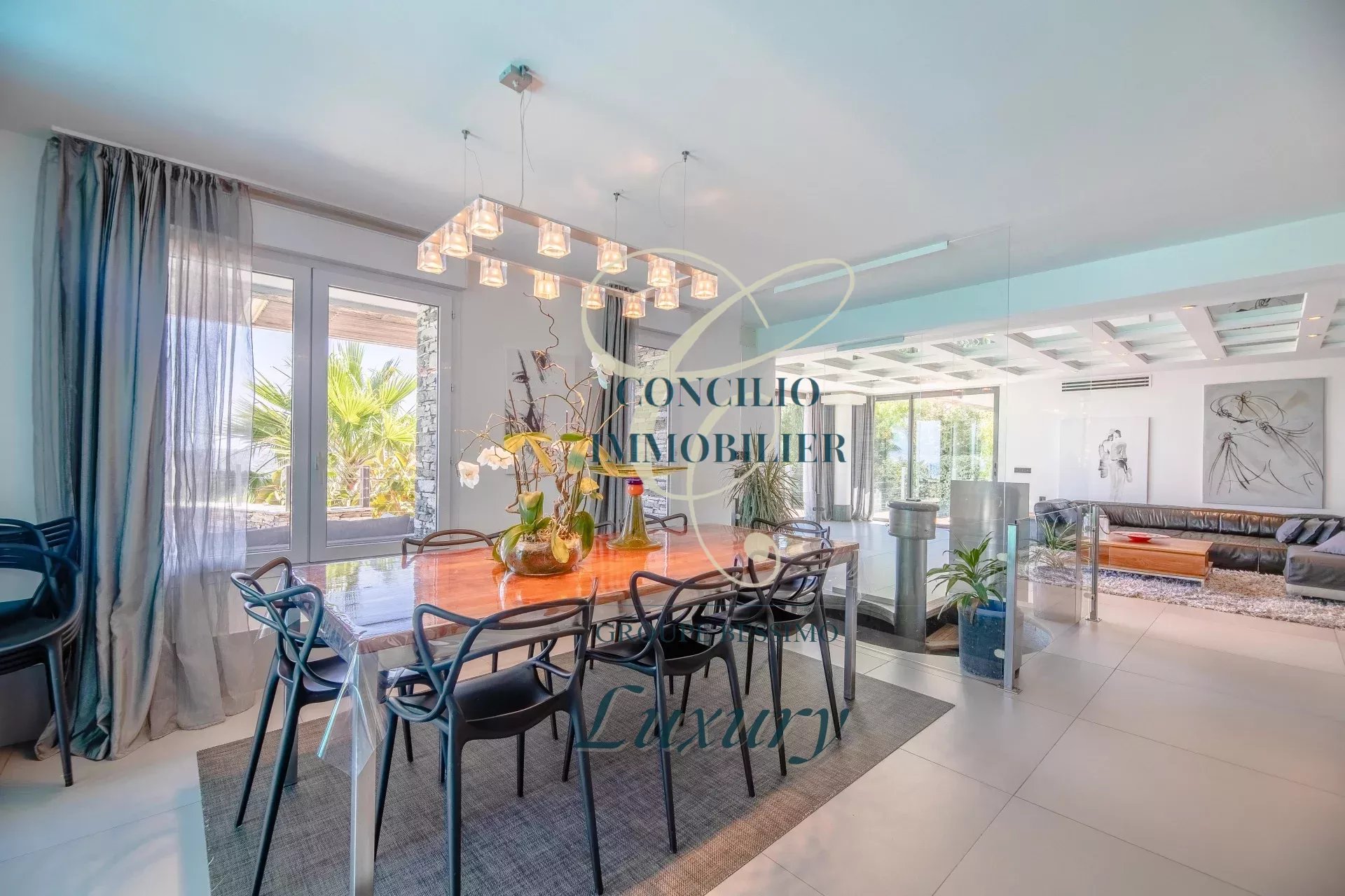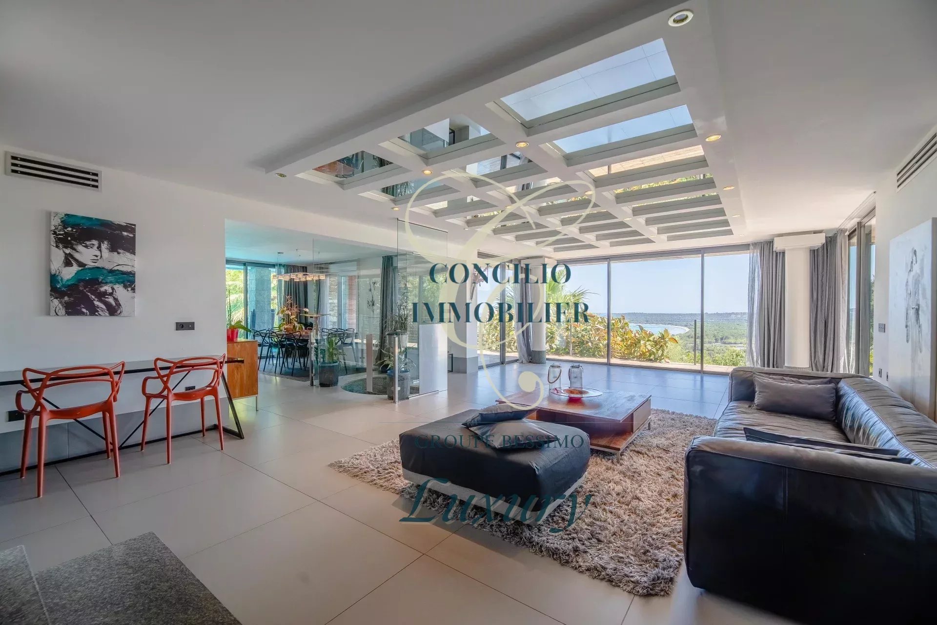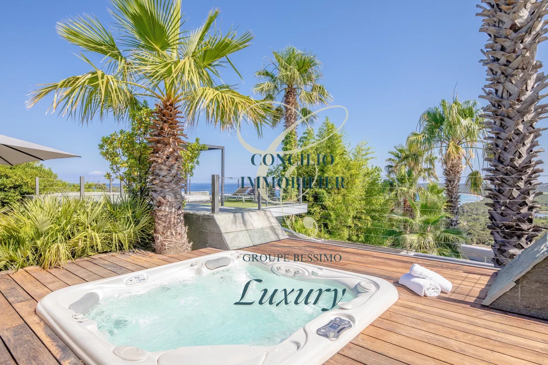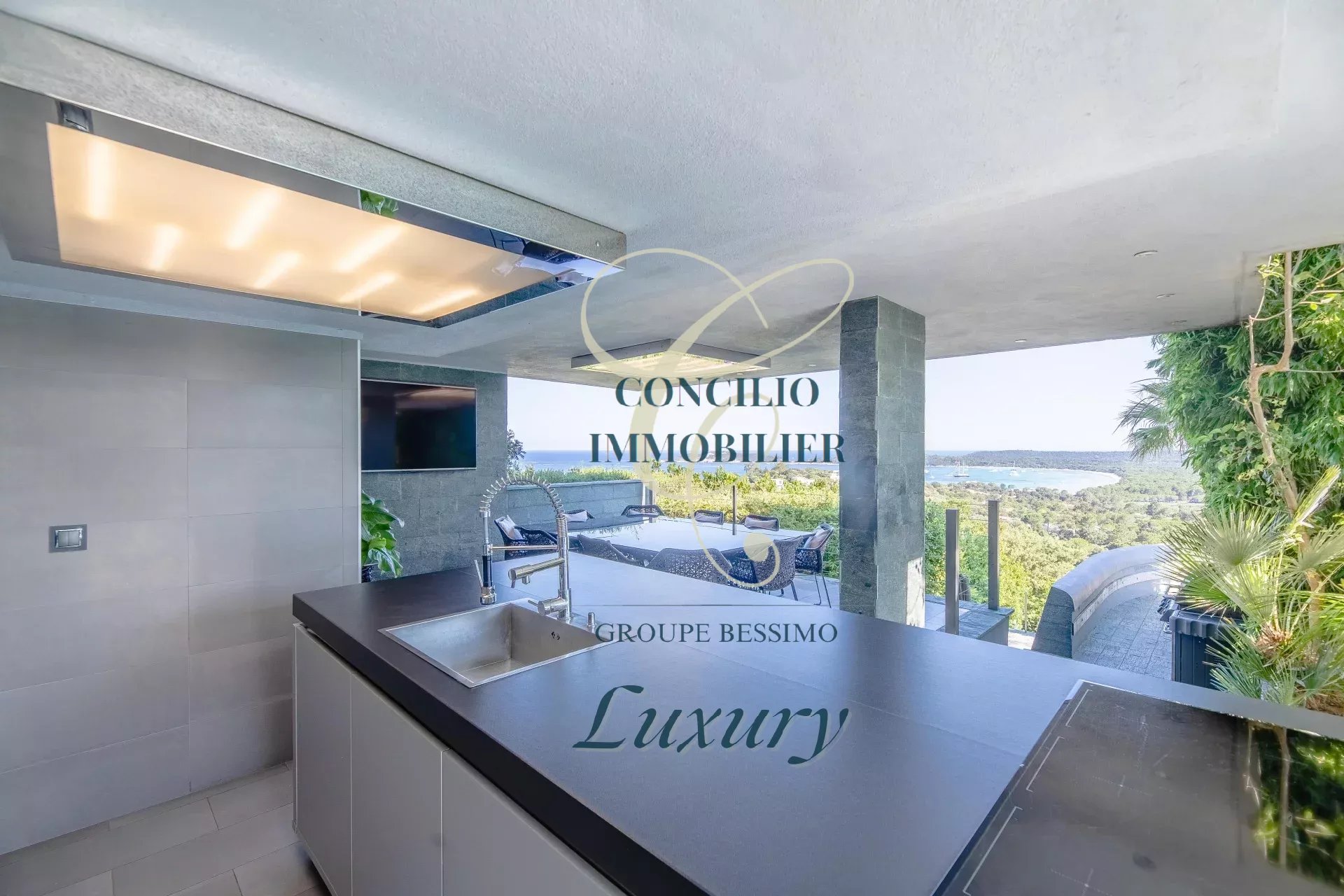 Située dans un environnement privilégié, la villa Diamond Head est une villa contemporaine d’exception édifiée sur trois niveaux, offrant une vue mer panoramique. D’une surface habitable de 370 m², elle se compose de 9 pièces dont 6 chambres, implantée sur un terrain de 1 939 m². La villa dispose de prestations haut de gamme, incluant une piscine chauffée à débordement, un spa, un solarium ainsi qu’un putting green privé. Les espaces intérieurs bénéficient de volumes généreux et lumineux, avec des fenêtres coulissantes en aluminium, du double vitrage, la climatisation, une ventilation double flux et des équipements modernes. Un pool house avec cuisine d’été équipée, une cave à vin et des espaces dédiés à la détente complètent ce bien. La propriété est située à proximité immédiate de la mer, de la plage et du port, accessibles à pied, tout en restant proche du centre-ville et des commodités. La villa est a été construite en 1988. Les informations sur les risques auxquels ce bien est exposé sont disponibles sur le site Géorisques.