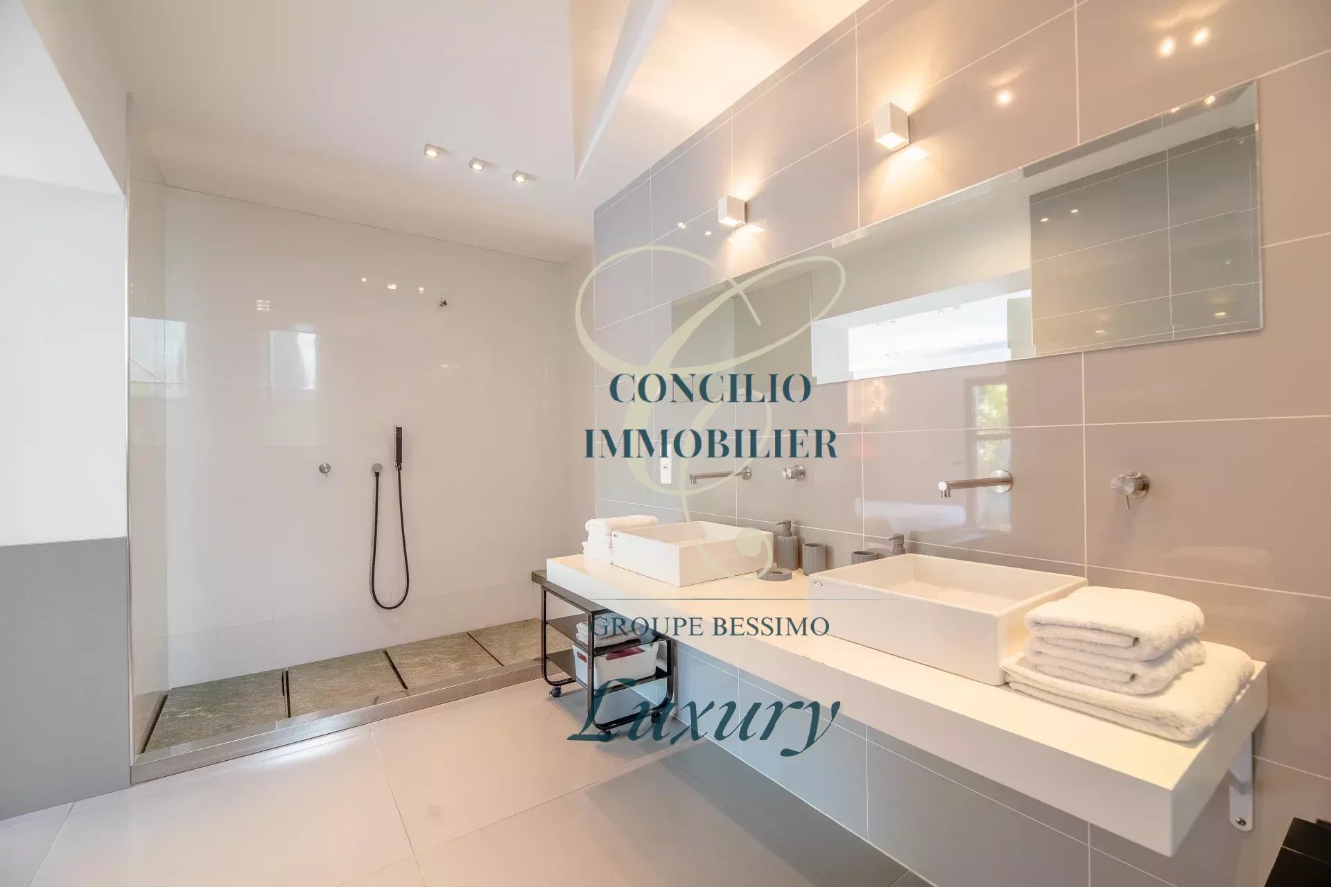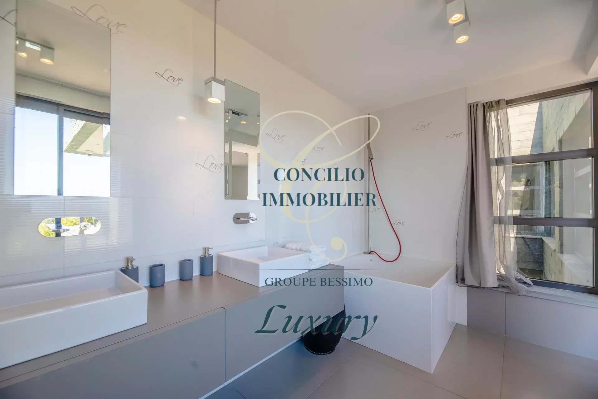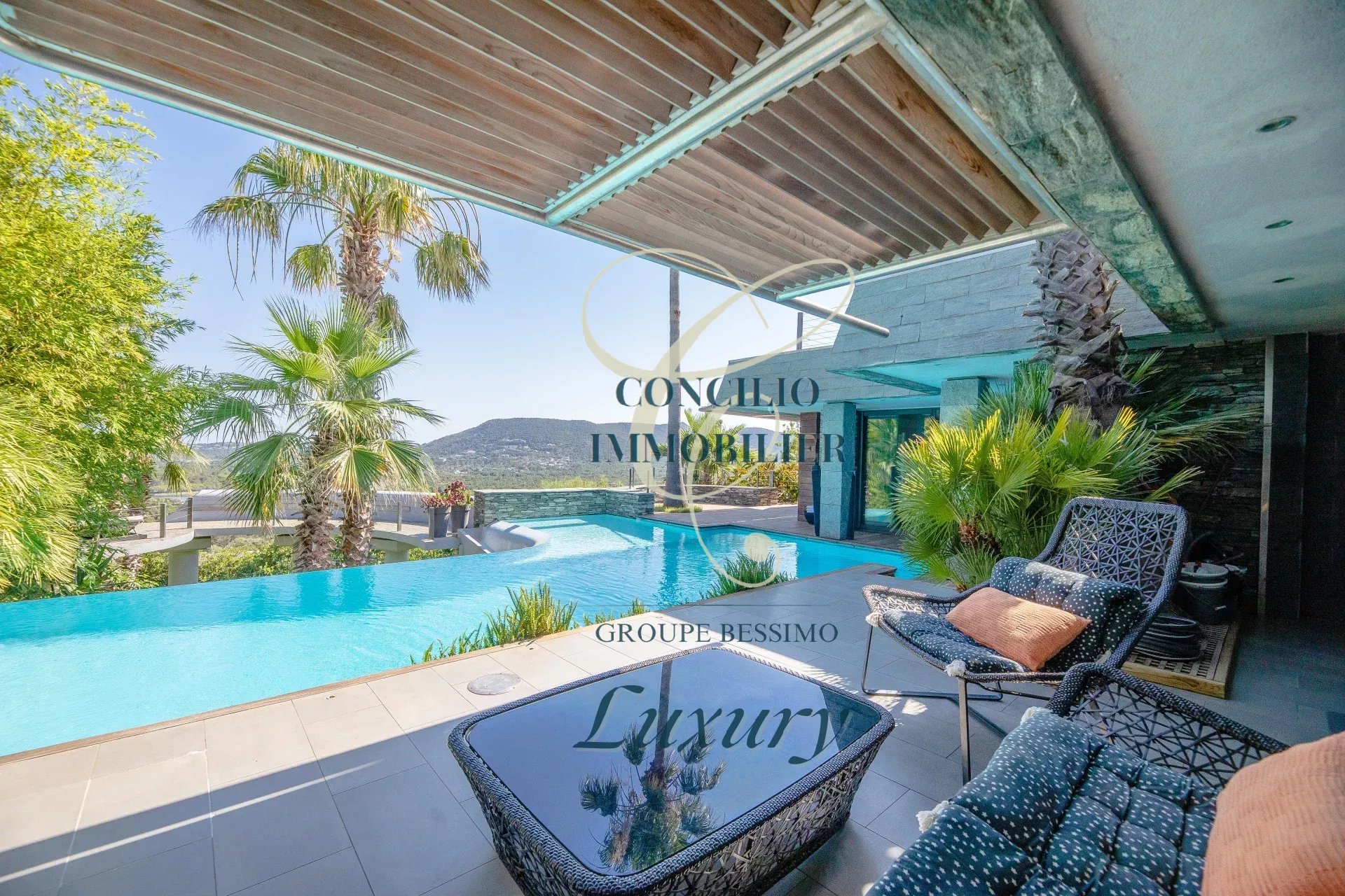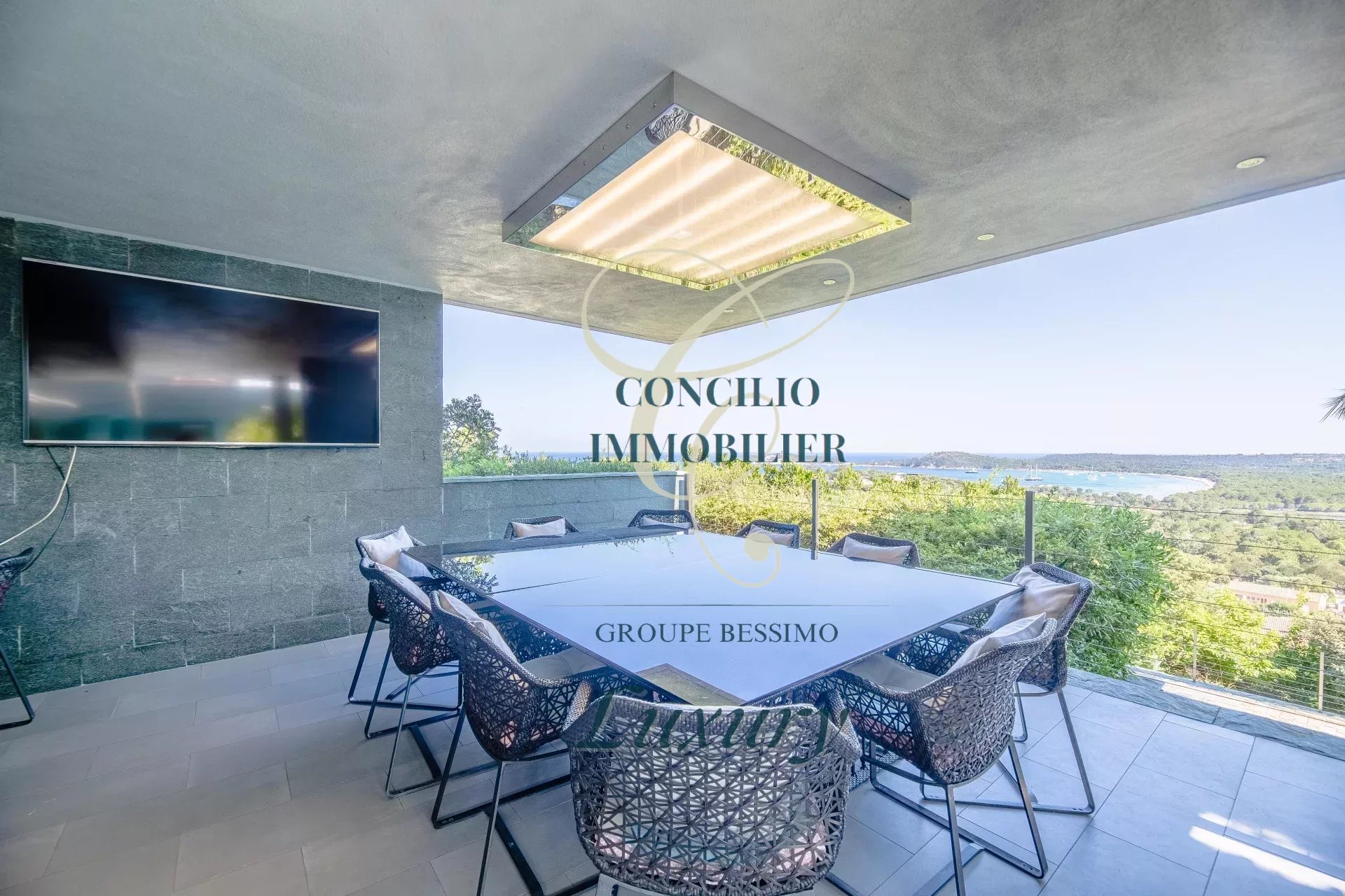 Située dans un environnement privilégié, la villa Diamond Head est une villa contemporaine d’exception édifiée sur trois niveaux, offrant une vue mer panoramique. D’une surface habitable de 370 m², elle se compose de 9 pièces dont 6 chambres, implantée sur un terrain de 1 939 m². La villa dispose de prestations haut de gamme, incluant une piscine chauffée à débordement, un spa, un solarium ainsi qu’un putting green privé. Les espaces intérieurs bénéficient de volumes généreux et lumineux, avec des fenêtres coulissantes en aluminium, du double vitrage, la climatisation, une ventilation double flux et des équipements modernes. Un pool house avec cuisine d’été équipée, une cave à vin et des espaces dédiés à la détente complètent ce bien. La propriété est située à proximité immédiate de la mer, de la plage et du port, accessibles à pied, tout en restant proche du centre-ville et des commodités. La villa est a été construite en 1988. Les informations sur les risques auxquels ce bien est exposé sont disponibles sur le site Géorisques.