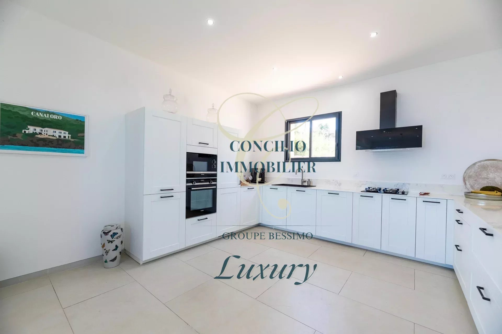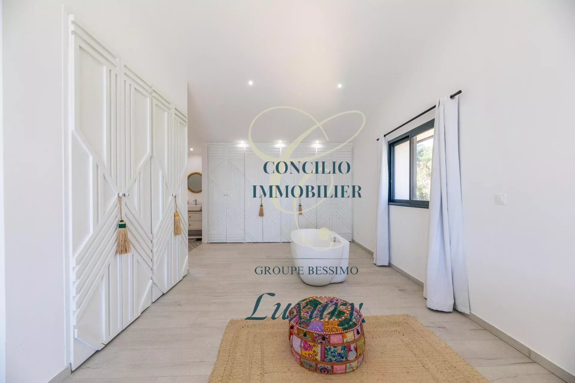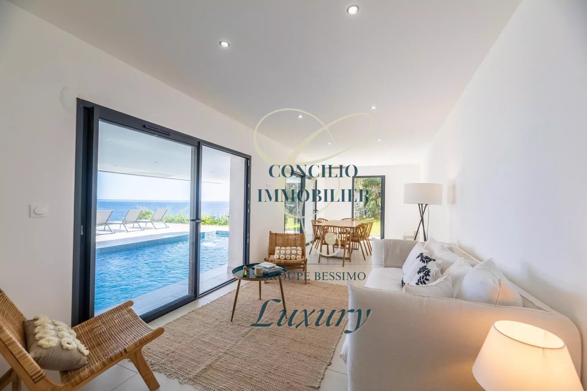 Propriété d’exception située sur la commune de Sari-Solenzara, dans un environnement rare où la mer rencontre la montagne. Cette villa contemporaine pieds dans l’eau bénéficie d’une vue mer panoramique et d’un accès direct et exclusif à la mer par un escalier privé menant à une crique d’eau turquoise. Entièrement rénovée en 2022, la villa développe une surface habitable de 316 m² pour une surface totale de 590 m². Elle offre des volumes généreux et des prestations haut de gamme, pensées pour sublimer son environnement naturel. Le rez-de-chaussée accueille un vaste espace de vie baigné de lumière comprenant un salon, une salle à manger et une cuisine ouverte entièrement équipée, ainsi qu’une suite parentale avec salle d’eau. L’ensemble est prolongé par de larges terrasses panoramiques face à la mer. À l’étage, trois suites indépendantes, chacune disposant de sa salle d’eau privative, offrent calme et intimité. La propriété comprend également un salon secondaire, une seconde cuisine et une buanderie, garantissant un confort optimal pour une résidence principale ou secondaire. Implantée sur un terrain de 2 556 m², la villa dispose d’une piscine à débordement face à la mer ainsi que d’un garage complétant cet ensemble rare. Alliance parfaite entre design contemporain, nature préservée et accès direct à la mer, cette propriété illustre l’art de vivre méditerranéen dans toute sa splendeur. Les informations sur les risques auxquels ce bien est exposé sont disponibles sur le site Géorisques.