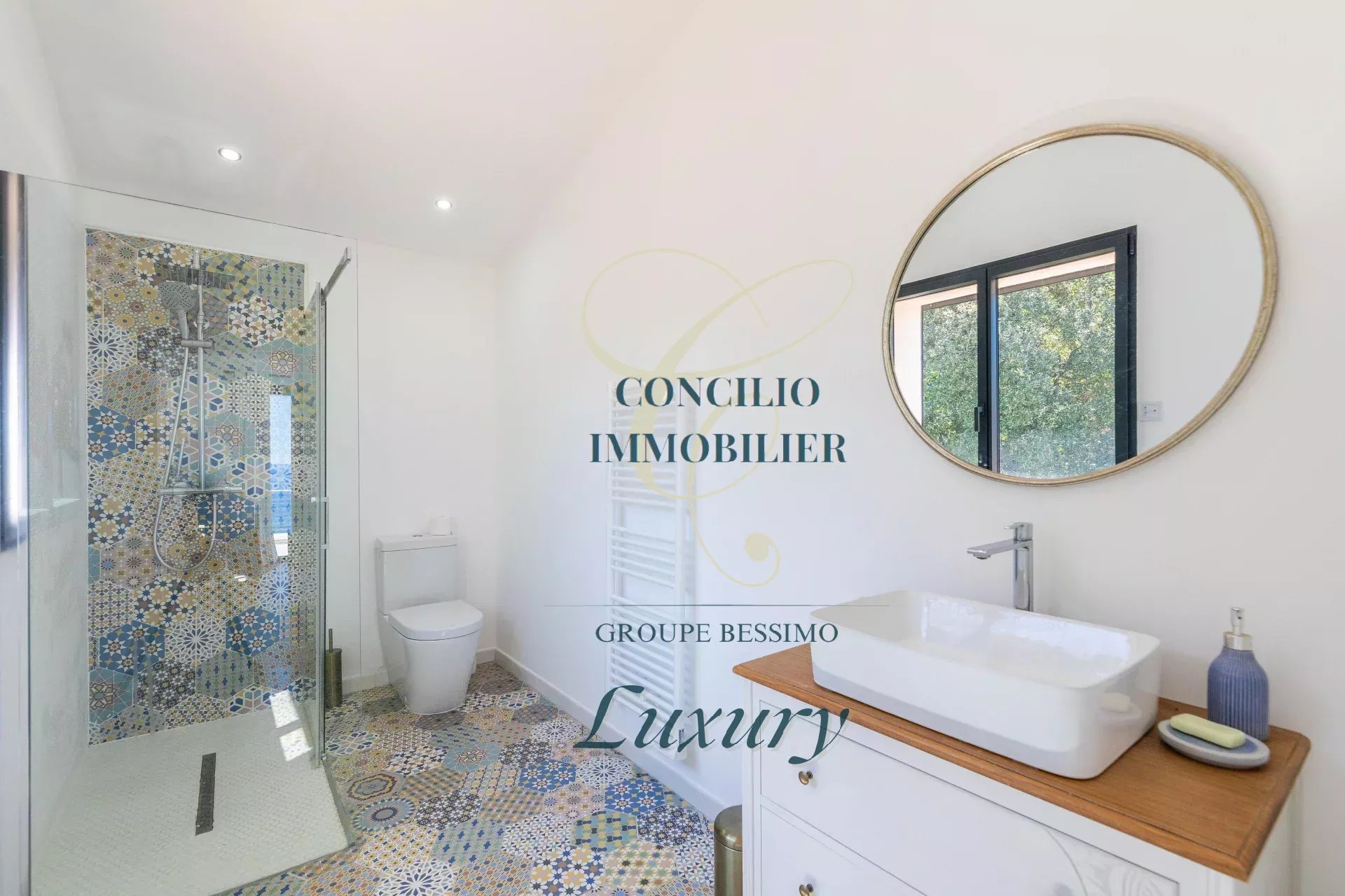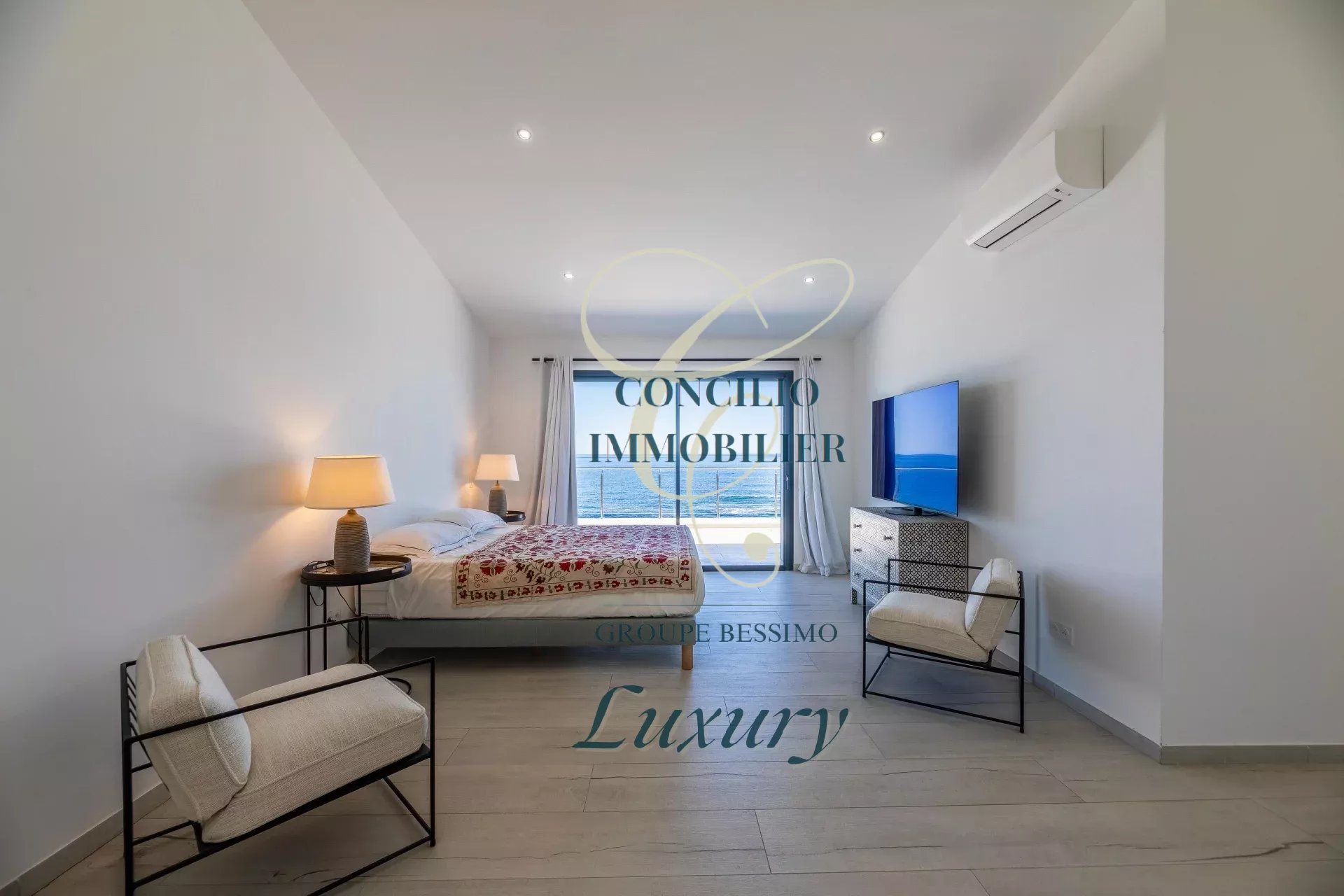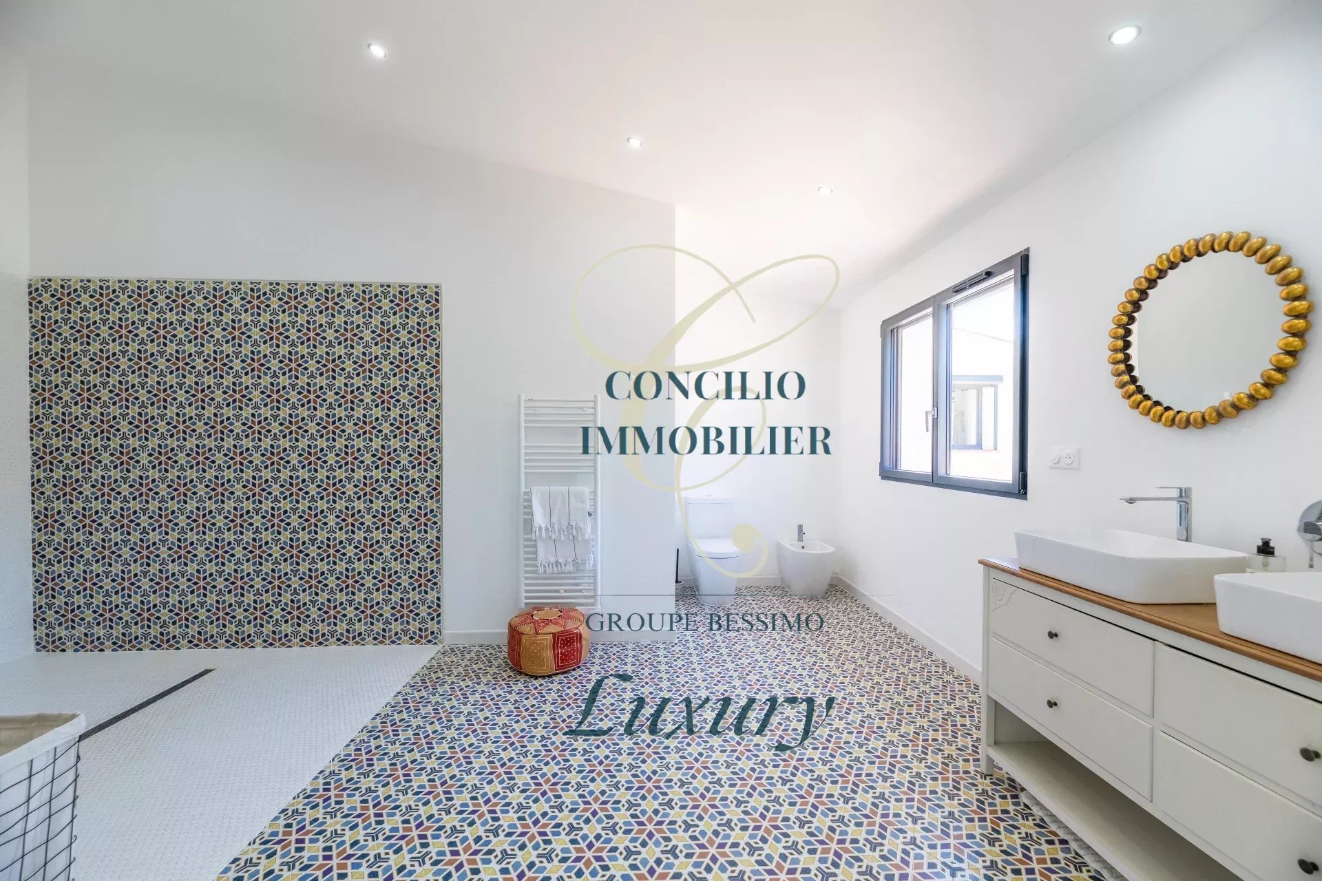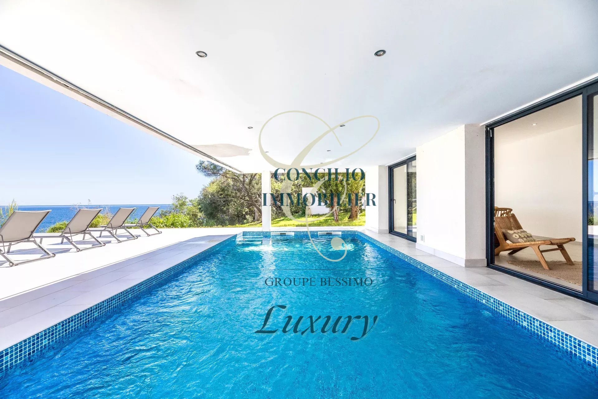 Propriété d’exception située sur la commune de Sari-Solenzara, dans un environnement rare où la mer rencontre la montagne. Cette villa contemporaine pieds dans l’eau bénéficie d’une vue mer panoramique et d’un accès direct et exclusif à la mer par un escalier privé menant à une crique d’eau turquoise. Entièrement rénovée en 2022, la villa développe une surface habitable de 316 m² pour une surface totale de 590 m². Elle offre des volumes généreux et des prestations haut de gamme, pensées pour sublimer son environnement naturel. Le rez-de-chaussée accueille un vaste espace de vie baigné de lumière comprenant un salon, une salle à manger et une cuisine ouverte entièrement équipée, ainsi qu’une suite parentale avec salle d’eau. L’ensemble est prolongé par de larges terrasses panoramiques face à la mer. À l’étage, trois suites indépendantes, chacune disposant de sa salle d’eau privative, offrent calme et intimité. La propriété comprend également un salon secondaire, une seconde cuisine et une buanderie, garantissant un confort optimal pour une résidence principale ou secondaire. Implantée sur un terrain de 2 556 m², la villa dispose d’une piscine à débordement face à la mer ainsi que d’un garage complétant cet ensemble rare. Alliance parfaite entre design contemporain, nature préservée et accès direct à la mer, cette propriété illustre l’art de vivre méditerranéen dans toute sa splendeur. Les informations sur les risques auxquels ce bien est exposé sont disponibles sur le site Géorisques.