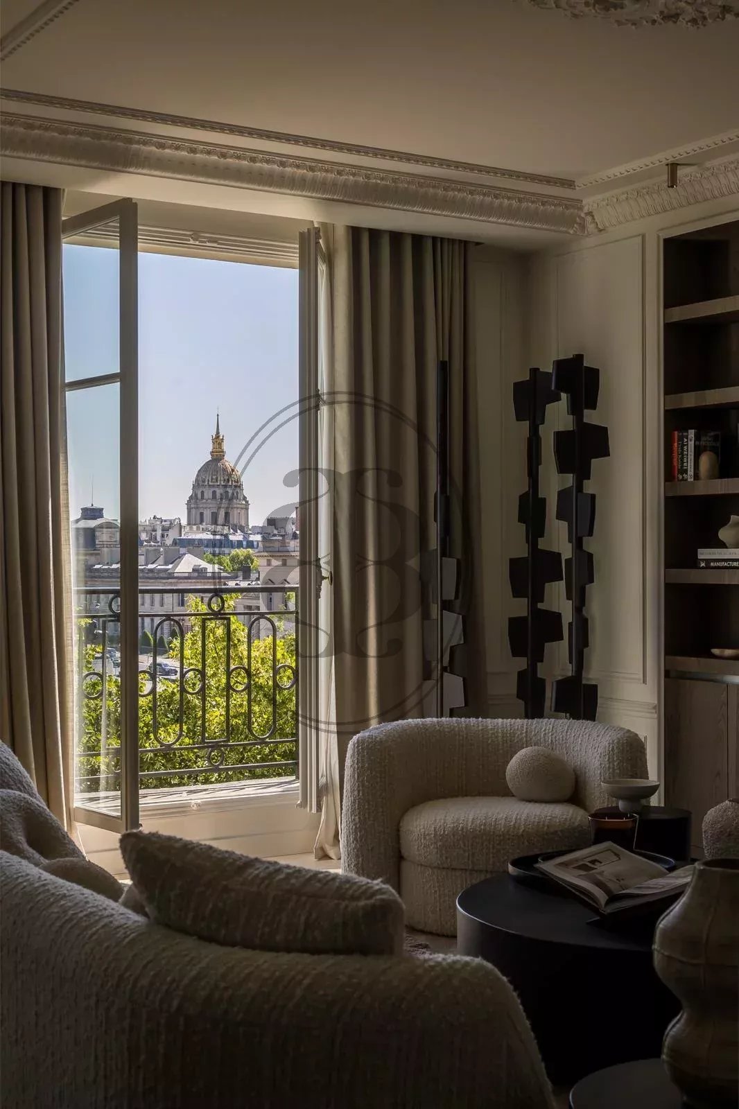 Découvrez ce duplex de haut standing entièrement meublé, aux deux derniers étages d'un immeuble prestigieux du 7ème arrondissement. Une jolie entrée avec assise ouvre sur une double réception raffinée. Un bureau, une cuisine luxueusement équipée et aménagée, ainsi qu'une somptueuse suite, avec sa salle de bains complète et son dressing, pour le premier niveau. A l'étage supérieur, une seconde suite somptueuse complète et une suite junior. Vue imprenable, sur la Tour Eiffel et sur l'École Militaire, sublimée par un balcon filant qui invite à la contemplation. Une place de parking ainsi que deux grandes caves complètent ce bien.