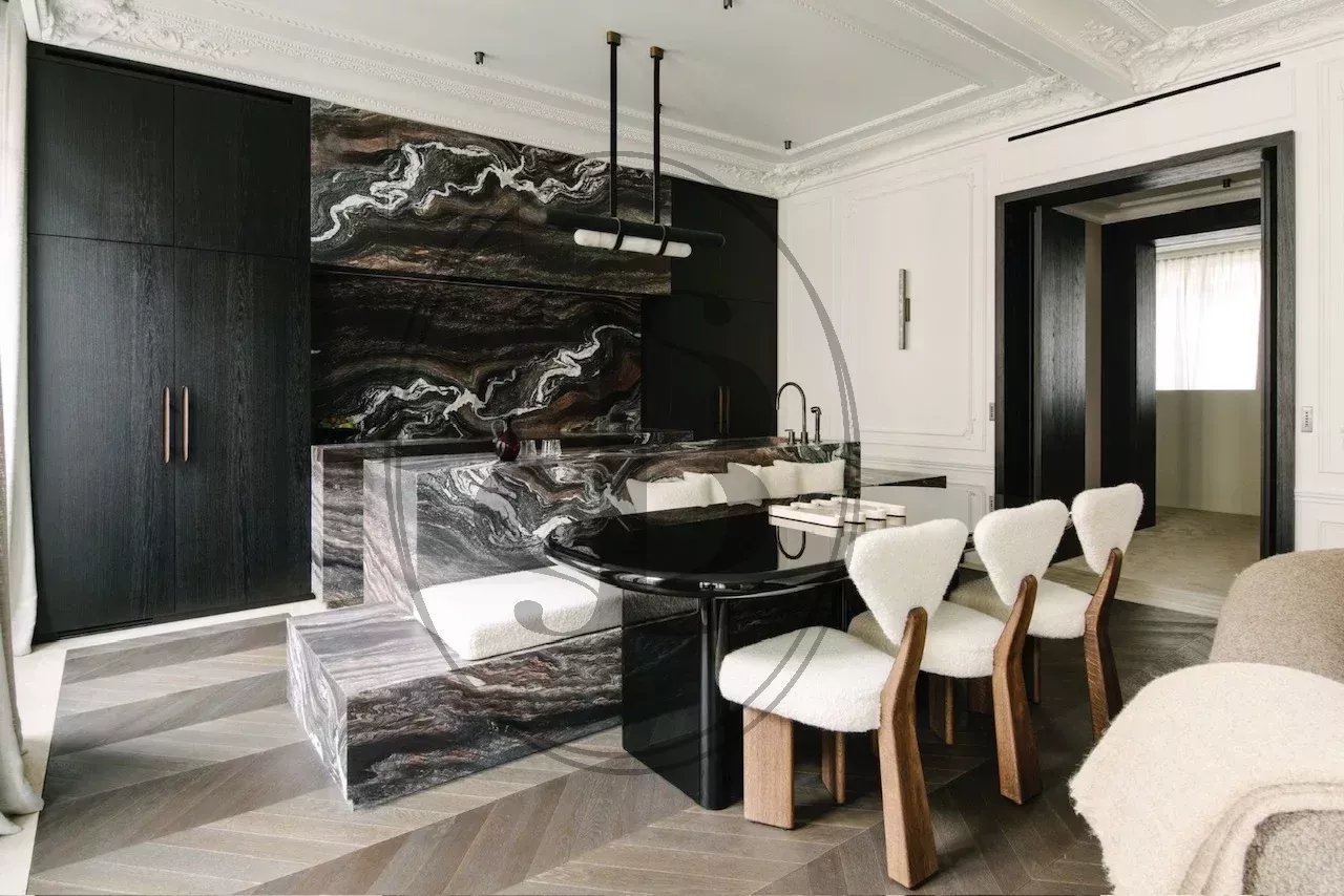 Découvrez ce lumineux appartement en étage élevé de 130m² de haut standing, à quelques pas de l'avenue Montaigne, "clé en mains" dans un immeuble de prestige. L'entrée amène à une réception élégante et accueillante avec une cuisine, luxueusement équipée et aménagée, communiquant directement avec la salle à manger. La partie nuit se compose de trois suites somptueuses avec dressings, salles de bains et toilettes séparées.