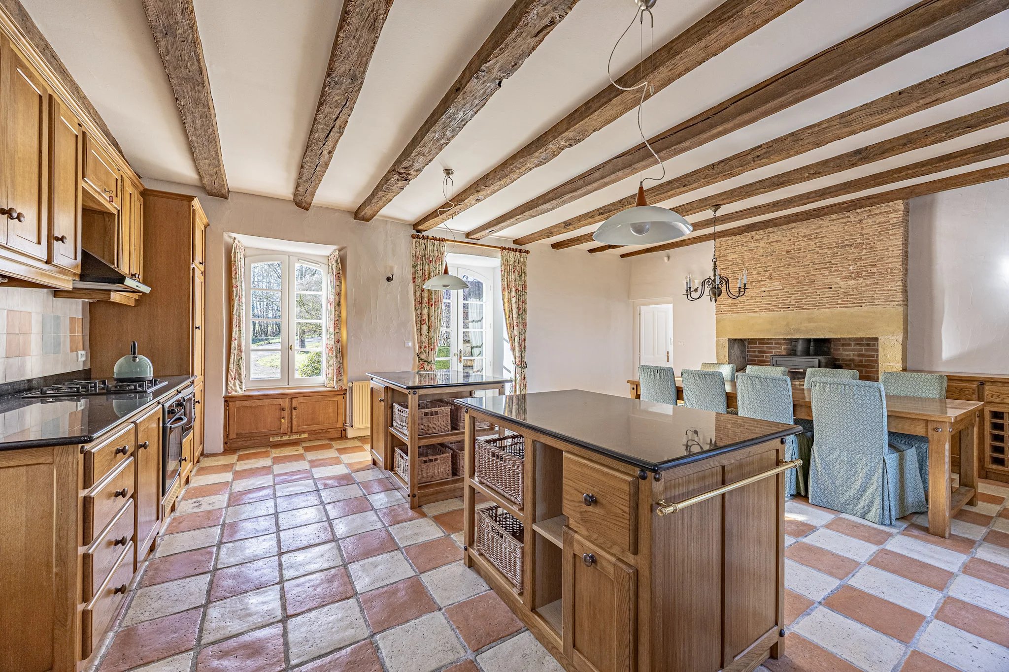 Domaine privé impeccablement présenté au cœur de la campagne de la Dordogne. Cette charmante demeure, autrefois demeure d'un noble du XVIe siècle, est située sur un terrain de 15 hectares (40 acres) de jardins, prairies et bois, à quelques pas du village. La propriété a été rénovée avec goût au cours des 12 dernières années et la qualité des travaux est excellente. Cette propriété dispose de quatre chambres doubles, d’un pool house avec vestiaire et salle d’eau, ainsi que d’une vaste grange aisément transformable en espace d’accueil pour des invités, sous réserve des autorisations requises. Le large hall d'entrée dessert une salle d'eau, puis une cuisine moderne entièrement équipée avec coin repas d'un côté et un salon avec grande cheminée de l'autre. Les deux pièces de réception sont dotées de portes-fenêtres doubles ouvrant sur la terrasse ensoleillée et de grandes fenêtres sur deux autres côtés. Au premier étage, un large palier mène à l'impressionnante chambre principale avec salle de bains attenante. On y trouve également une seconde chambre double ainsi qu'une salle de bains indépendante. Au deuxième étage se trouvent deux autres chambres ainsi qu'une salle de douche avec WC. La sécurité est assurée par un système d'alarme surveillé, un portail électrique et un système de vidéosurveillance. La propriété bénéficie également d'une connexion internet par fibre optique et d'une bonne couverture mobile. À l'extérieur, une grange impeccable de 200 m² avec deux grandes entrées est à votre disposition. À proximité se trouve un grand pool-house comprenant une buanderie, un système de pompe/filtre à sable, ainsi qu'un espace douche/vestiaire avec chauffage au sol. La piscine de 12 m x 6 m est équipée d'une couverture à enroulement renforcée et d'un système de capteurs de proximité relié à une alarme. Une pompe à chaleur moderne assure un confort optimal toute l'année. Non loin de la maison se trouve un bassin d'agrément alimenté par une source, entouré d'arbres matures qui offrent une ombre généreuse pour profiter des après-midi d'été. Le vaste terrain, légèrement incliné vers l'est à l'arrière de la propriété, est composé de bois et de prairies. Ce terrain, accompagné de la grange, rend cette propriété tout à fait adaptée à un usage équestre. Le centre du village est accessible à pied en 10 minutes (1 km), vous y trouverez un excellent restaurant et une épicerie. Le bourg de Thiviers est à seulement 10 minutes en voiture, avec ses nombreux supermarchés, ses médecins et sa gare. Les villes de Périgueux et de Limoges (et son aéroport) sont à moins d'une heure. N'hésitez pas à réserver votre visite : cette superbe propriété ne vous décevra pas!