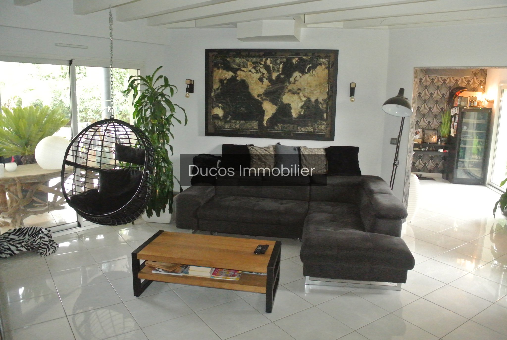 Située dans un secteur recherché, à proximité immédiate du centre-ville et des écoles, cette maison moderne offre des volumes généreux et des équipements haut de gamme.Elle se compose d'une suite parentale incluant dressing et salle d'eau, d'une salle de bains indépendante, 3 chambres, d'un grand salon avec cheminée, ainsi que d'un séjour lumineux ouvert sur une cuisine équipée. Une large baie vitrée donne accès à la terrasse et à la piscine, offrant un espace de vie intérieur/extérieur particulièrement apprécié. La maison bénéficie d'équipements performants et récents : Panneaux solaires, Chauffage au sol, Pompe à chaleur. Ces installations assurent le confort de l'habitation. L'extérieur propose un jardin entièrement clos et arboré, procurant calme et intimité. Un garage de 55 m2 avec double portail complète ce bien. Cette maison représente une opportunité rare alliant confort, modernité et efficacité énergétique. Maison réf 4496 Vendue Par AGENCE DUCOS IMMOBILIER