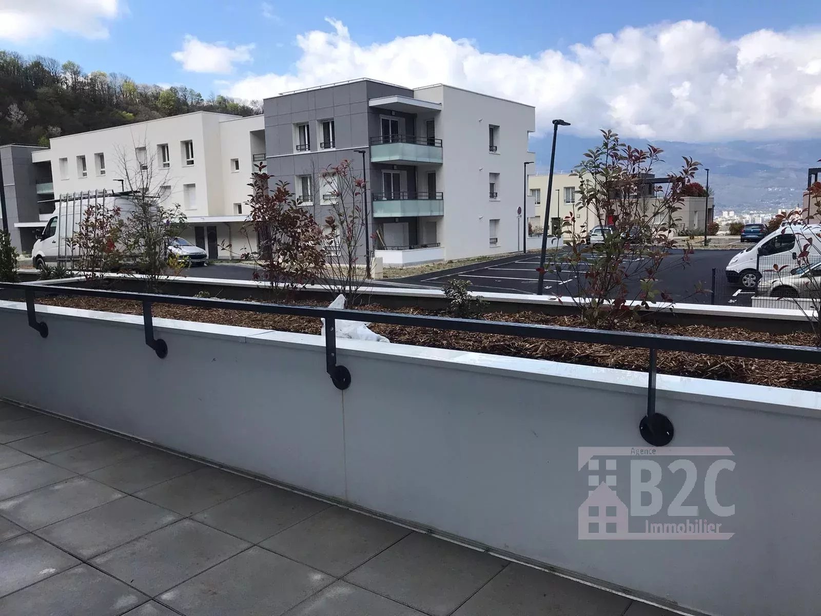Dans résidence L'ESSEN'CIEL, sur les hauteurs d'Eybens, beau T2 meublé de 48.52 m² avec grande terrasse et cellier de 24 m², au RDC, comprenant une entrée (avec placard), un séjour avec une cuisine ouverte équipée et aménagée (plaques à induction, four pyrolyse, hotte, frigo et meubles), un dégagement donnant sur une chambre (avec placard), une salle de bain avec baignoire, et toilettes séparées. Belles prestations.