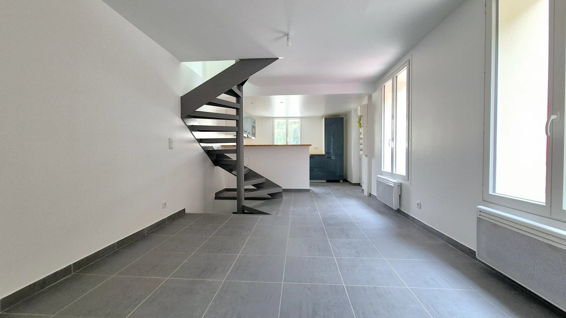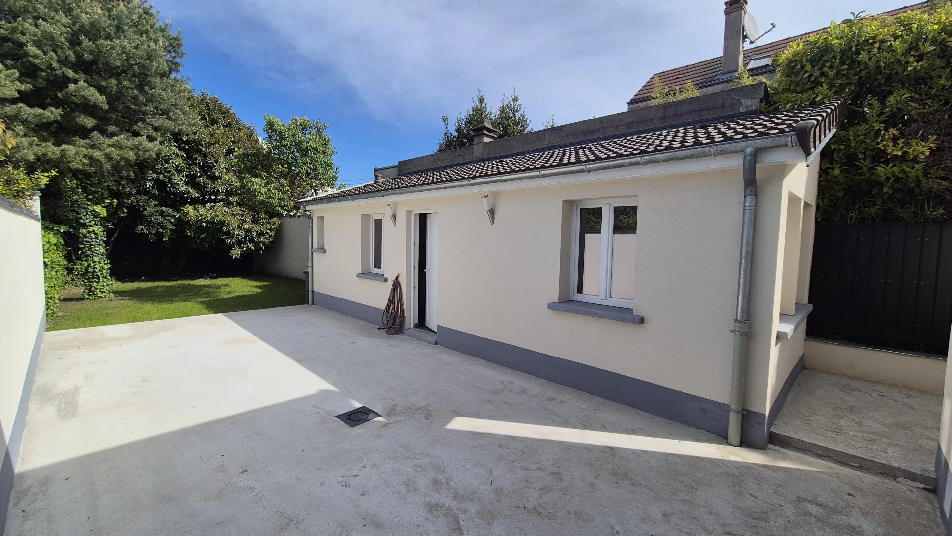 Hilton Immobilier vous propose sur une parcelle de 307 m2, cette maison rénovée en 2023 dans un environnement calme et résidentiel explosé plein sud. Maison 4 pièces de 80 m2 avec terrasse er jardin composée au rez-de-chaussée d'un espace de vie avec sa cuisine ouverte entièrement équipée, une salle de bain avec WC complète ce niveau. A l'étage, 2 chambres avec placard et dressing. Un souplex à aménager selon votre goût ( chambre parentale, salon, salle de cinema, salle de jeux etc..) Une dépendance toute équipée de 18 m2 le tout situé au calme vient compléter ce bien. Une possibilité d'extension de 30 m2 est possible de type verrière dans la continuité de la maison. Proche des transports (Bus, RER C, Train et futur ligne 15), commerces, et des écoles.