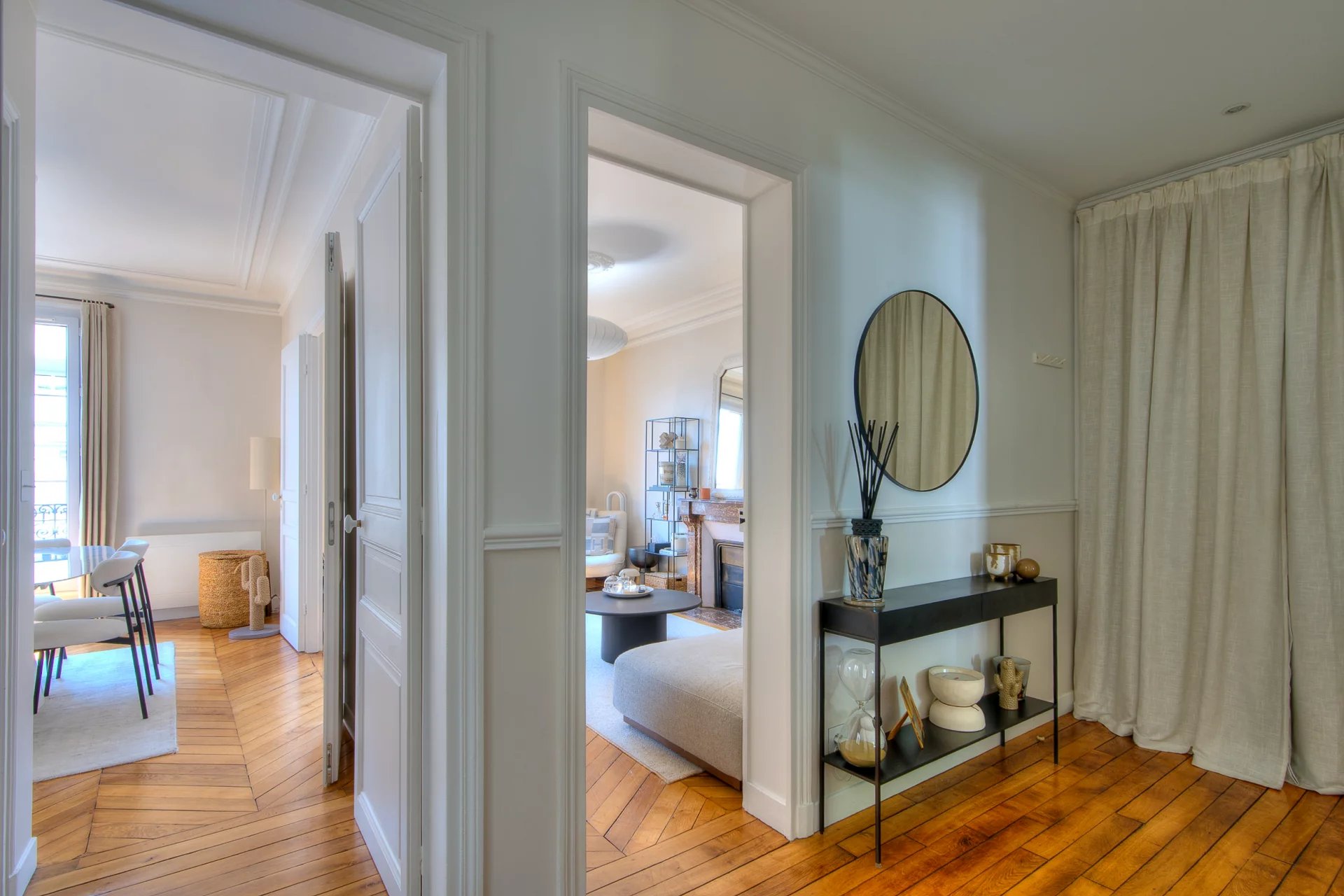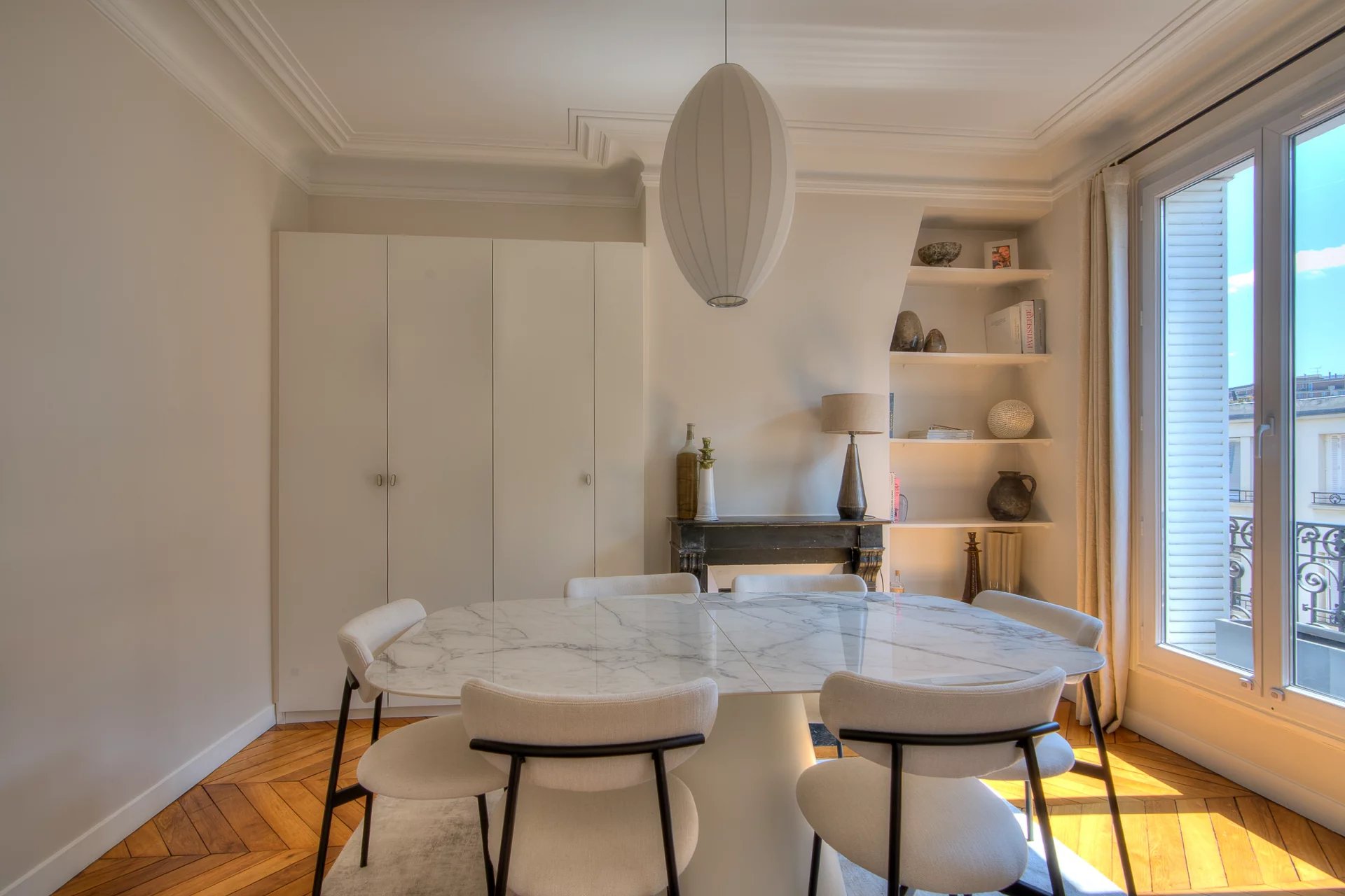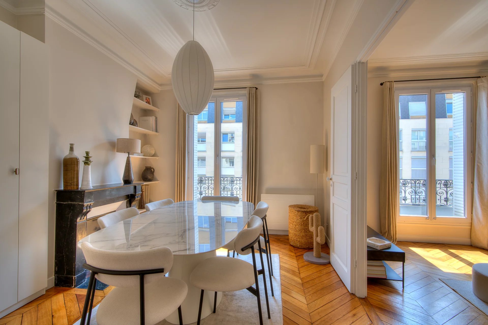 Nouveauté Hilton Immobilier - Secteur Corentin Celton Découvrez ce superbe appartement 3 pièces typiquement parisien, entièrement rénové et décoré avec goût, à deux pas du métro. Vous serez charmés par sa luminosité, ses moulures élégantes, son parquet en point de Hongrie et ses deux cheminées majestueuses. L'appartement se compose d'une entrée spacieuse, d'un séjour, 'une chambre avec rangements sur mesure, d'une salle à manger transformable en deuxième chambre, d'une cuisine équipée, d'une salle d'eau avec des matériaux de qualité, d'une buanderie et de WC séparés. Une cave de 10 m2 complète ce bien d'exception. Venez le visiter et laissez-vous séduire !