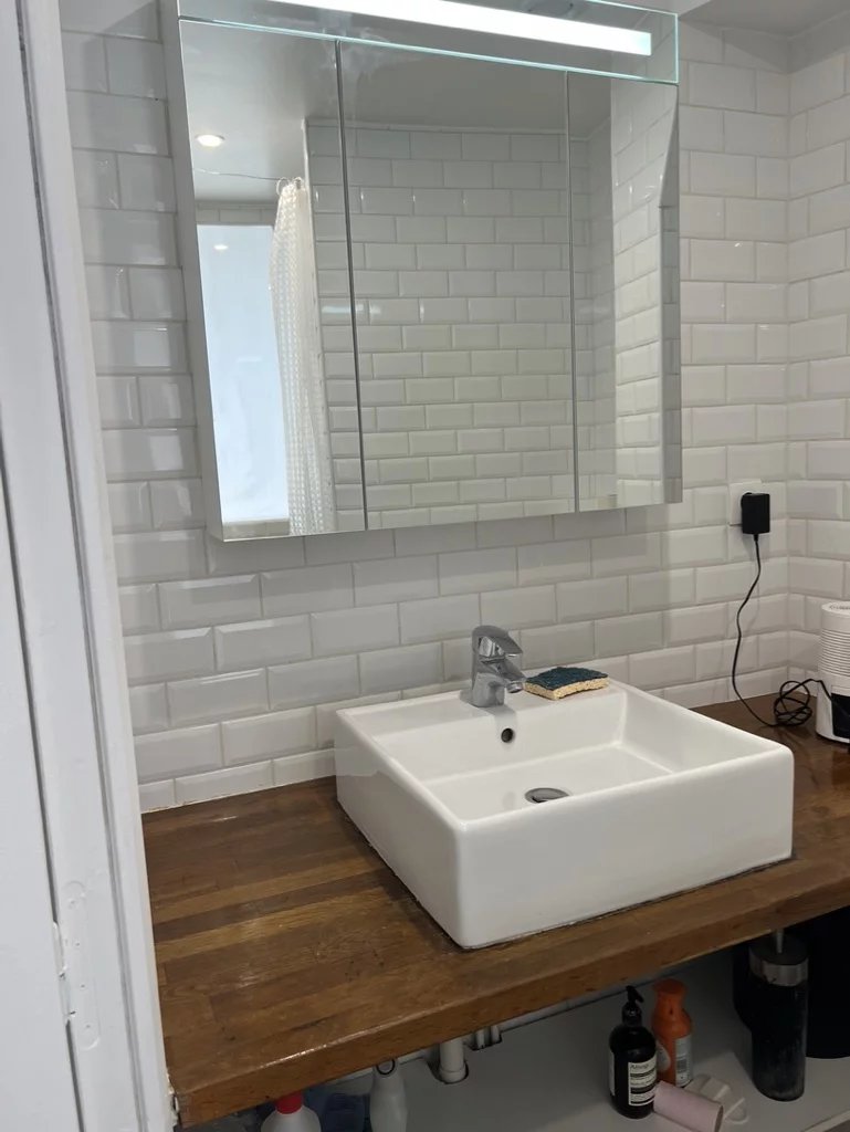 CONTACT PAR EMAIL UNIQUEMENT ENTRE JOURDAIN ET LE PARC DE BELLEVILLE UN BEL ESPACE DE VIE AMENAGE DANS DES ANCIENNES BOUTIQUES . COMPOSE D UNE PIECE A VIVRE AVEC CUISINE DE 35 M2- DEUX CHAMBRES - SALLE D EAU AVEC WC. UNE GRANDE CAVE. CHAUFFAGE ET EAU CHAUDE INDIVIDUEL ELECTRIQUE BAIL MEUBLE