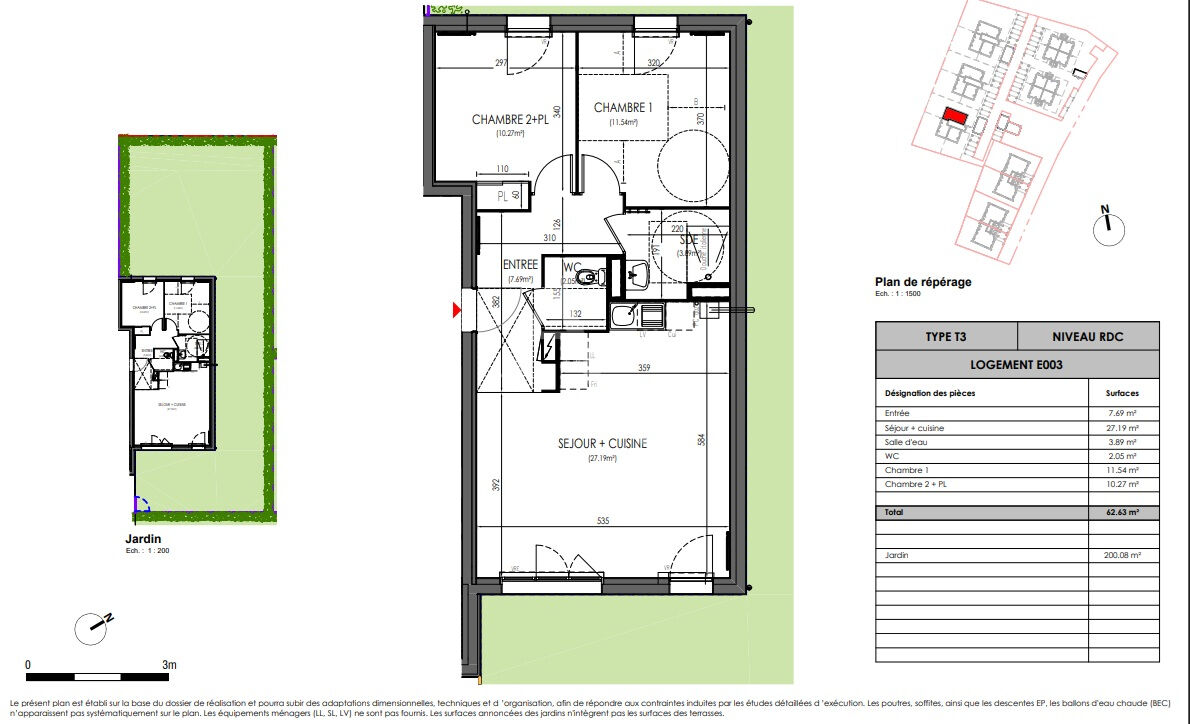 Cette résidence offre une situation idéale, proche de tous les besoins du quotidien. Le centre-bourg est accessible en 10 minutes* à pied et les axes routiers D94 et D117 en seulement 2 minutes* en voiture. L'autoroute A11 permet de rejoindre Nantes et Le Mans en 1h15*, tandis que l'A87 relie Cholet en moins d'une heure*. Côté scolarité, les écoles maternelle et primaire sont à 7 minutes* à pied, le collège à 15 minutes* à pied et le lycée est accessible en 22 minutes* en bus depuis l'arrêt situé à 4 minutes* à pied. Les commerces de proximité facilitent le quotidien avec une boulangerie à 6 minutes* à pied, une boucherie à 7 minutes* et un hypermarché à 15 minutes*. Le centre commercial le plus proche se trouve à seulement 3 minutes* en voiture. Pour les loisirs, les habitants bénéficient d'équipements sportifs à 15 minutes* à pied, incluant un dojo, un terrain de sport et un espace dédié au tennis de table. La santé est également à portée de main avec un médecin à 12 minutes* à pied et une maison médicale à 4 minutes* en voiture. Découvrez cette opportunité exceptionnelle d'acquérir un appartement neuf de type 3 d'une superficie de 62,63m² avec jardin privatif. Le séjour-cuisine de 27,19m² s'ouvre sur un beau jardin de 200 m²orienté Est offrant un bel espace de verdure. Deux chambres de 10,27m²et 11,54m² garantissent un confort optimal. L'appartement comprend également une salle de bain et WC séparé. Une place de parking accompagne cet appartement, assurant une commodité quotidienne. Conforme aux normes énergétiques de la réglementation RE 2020, cette propriété garantit une performance énergétique optimale. Prix de vente : 224 900 euros TTC (Frais de notaire réduits à 2.5%) - Opportunité à Prix Direct Promoteur. Référence : 35160CLOSE003 Informations auprès de Gwénaëlle GROU au 07 72 41 01 29, spécialiste Neuf Centre-ville d'Angers, quartiers de la Gare, la Madeleine, Doutre, Lafayette, Visitation, place du lycée, Quinconce, Saint Léonard, Jeanne d'Arc ,Lac de Maine, Belle-beille, Avrillé, Saint Barthélemy ... pour trouver votre solution immobilière en Résidence principale ou secondaire , LMNP, Location, Gestion immobilière. "Les informations sur les risques auxquels ce bien est exposé sont disponibles sur le site Géorisques : www.georisques.gouv.fr" Copropriété de 18 lots - dont 30 lots habitation.(Pas de procédure en cours).