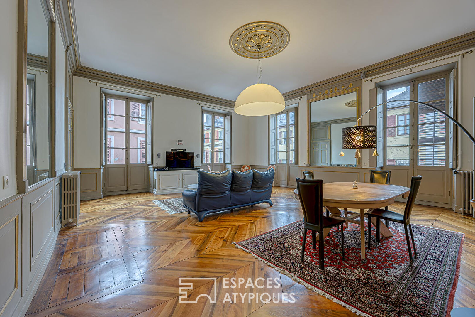Dans un immeuble bourgeois édifié par le Comte de Boigne, au coeur du Chambéry historique, cet appartement de 216,02 m² Carrez offre une lecture contemporaine d'un patrimoine remarquable. Un lieu où les lignes anciennes dialoguent avec une rénovation sobre et actuelle, dans une atmosphère lumineuse et apaisée. Situé au deuxième étage avec ascenseur, l'appartement révèle de beaux volumes : hauteur sous plafond, parquets à la française, grandes ouvertures qui laissent entrer la lumière comme un fil conducteur. La rénovation met en valeur l'architecture sans la figer, créant un espace de vie élégant et intemporel. L'organisation intérieure s'articule autour d'une entrée généreuse menant à une cuisine indépendante équipée, puis à un salon séjour baigné de lumière grâce à sa double exposition. Une buanderie discrète accompagne les usages du quotidien. La partie nuit accueille quatre chambres dont une suite parentale avec dressing et salle de bains, une salle de douche, deux WC, ainsi qu'une pièce supplémentaire idéale pour un bureau, un atelier d'art ou un espace créatif. Un grenier complet l'ensemble, offrant un espace de stockage précieux au coeur de la ville. La justesse de la rénovation et la conservation des éléments de caractère font de cet appartement un bien immobilier atypique et rare sur le marché chambérien, véritable coup de coeur pour les amateurs d'authenticité et de grands volumes. Les informations sur les risques auxquels ce bien est exposé sont disponibles sur le site Géorisques pour les zones concernées : www.georisques.gouv.fr. Classe énergie : D/ Classe climat : D Montant moyen estimé des dépenses annuelles d'énergie pour un usage standard, établi à partir des prix de l'énergie de l'année 2021, 2022 et 2023 : entre 3.340 euros et 4.560 euros. Contact : Martine +33 6 66 44 49 10 Copropriété de 12 lots - dont 3 lots habitation. (Pas de procédure en cours). Charges annuelles : 2500 euros. Martine JOURDAN PASQUIER (EI) Agent Commercial - Numéro RSAC : 438 043 713 - Chambery.