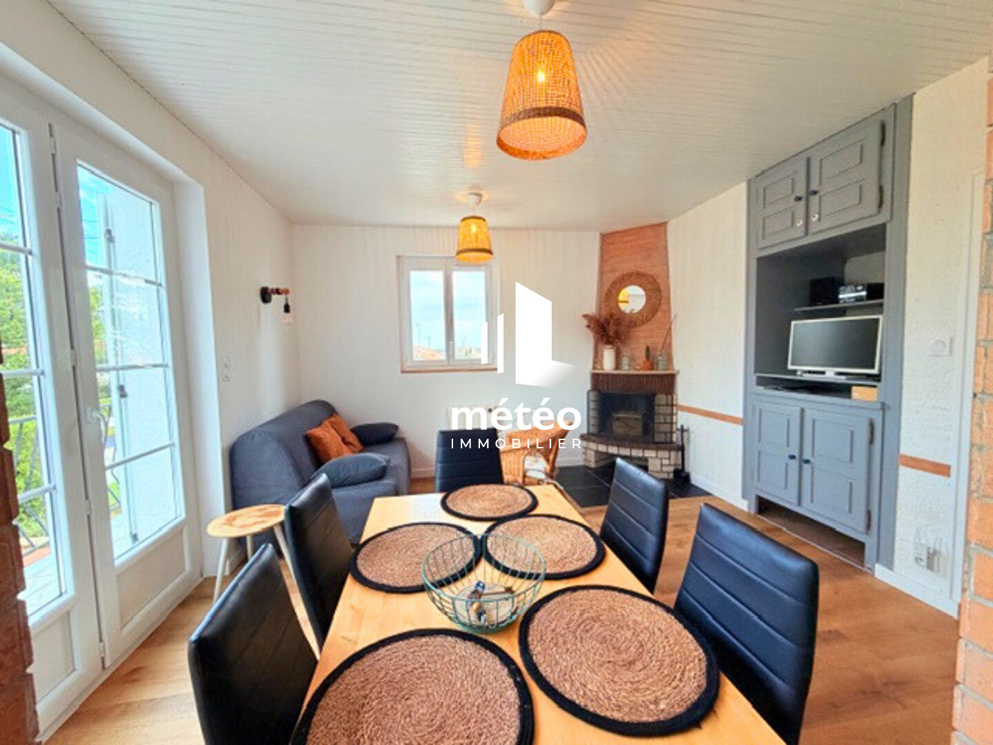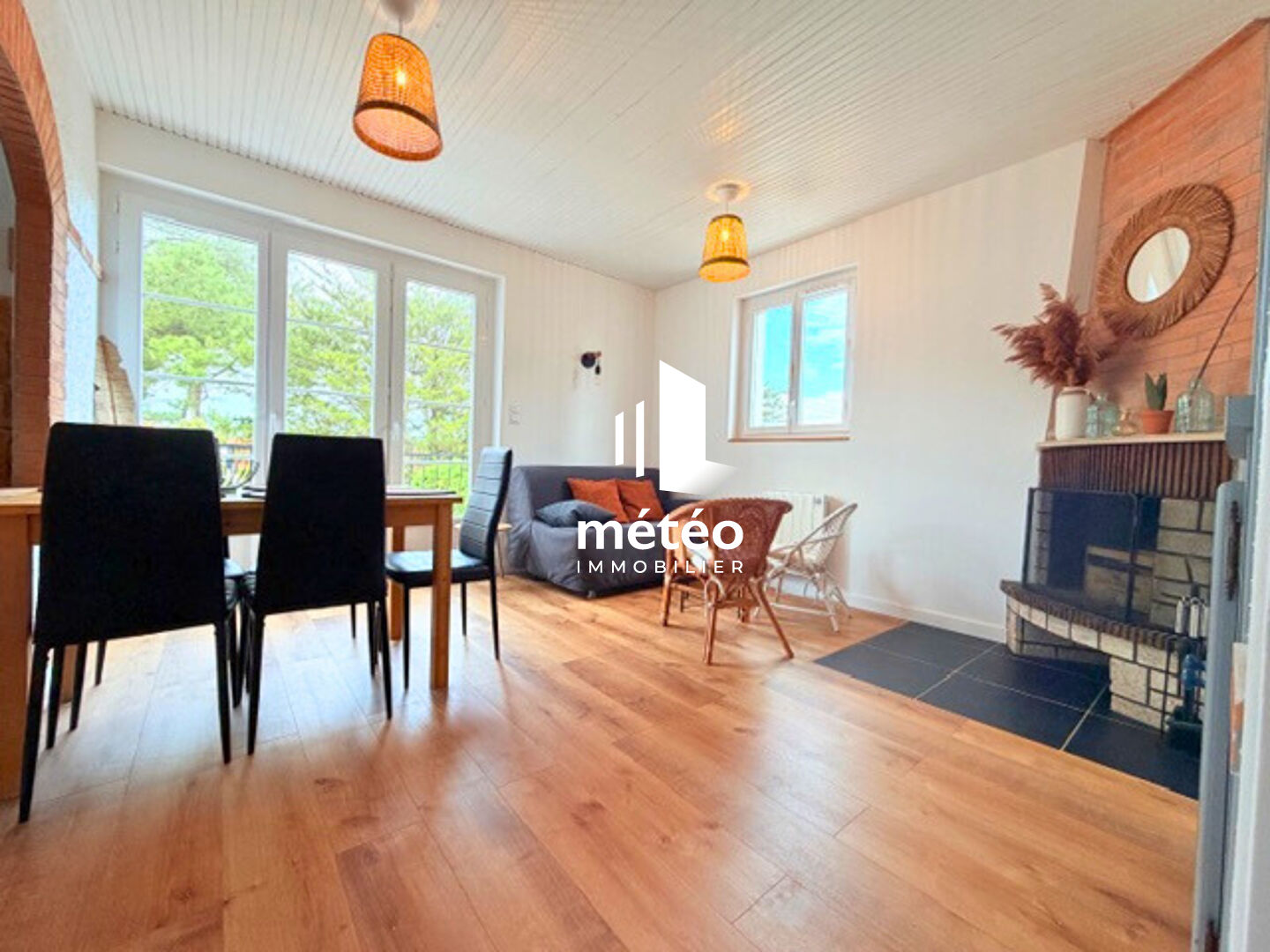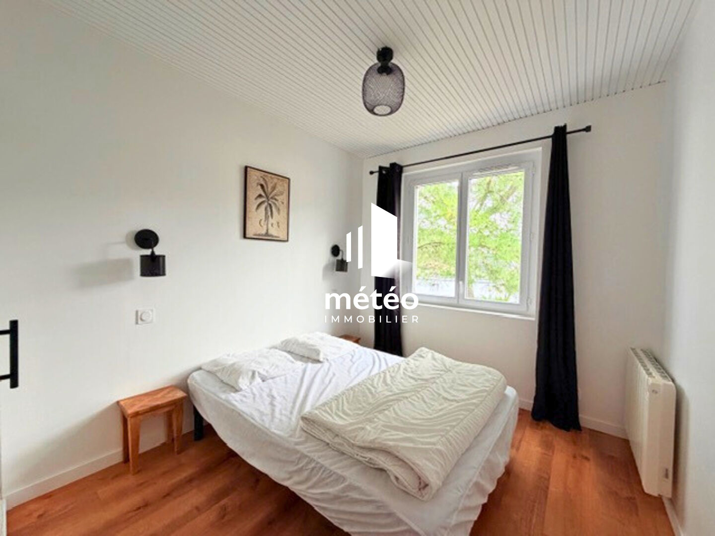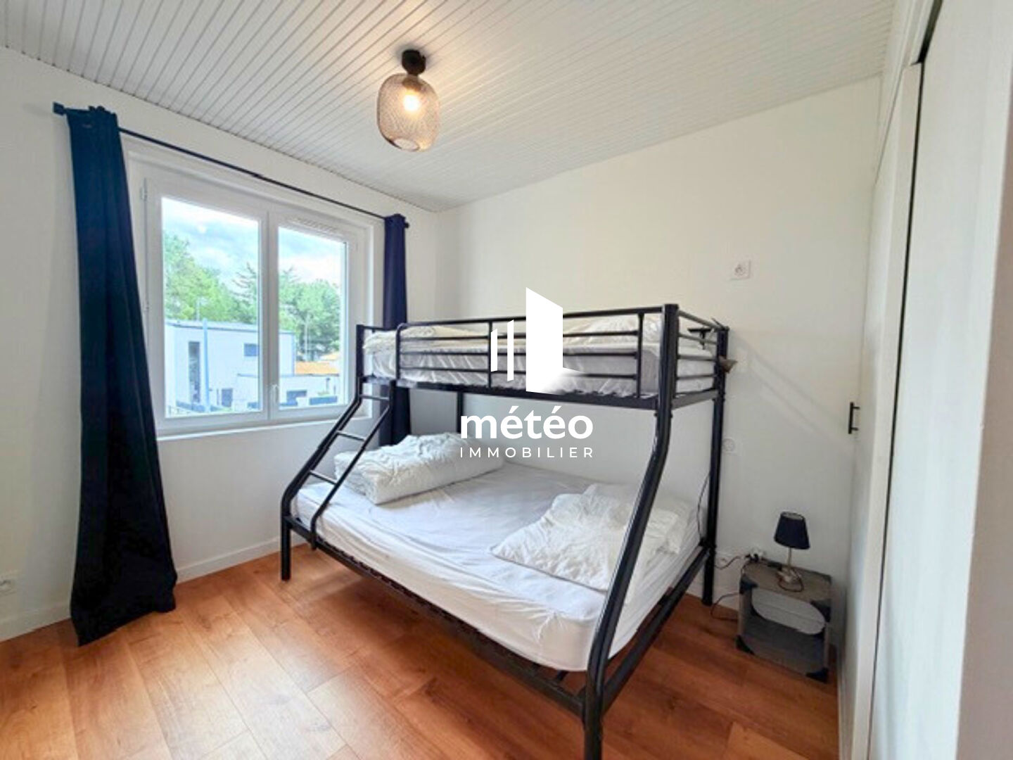 Dans le quartier de la Grière, sous les pins, a calme, à proximité de la plage de type 3 situé à l'étage. Il se compose d'une agréable pièce de vie avec cuisine aménagée et équipée, agrémentée d'une cheminée avec insert pour une ambiance chaleureuse. Deux chambres avec placard, une salle d'eau et un WC indépendant complètent ce bien. Un garage et un jardin privatif viennent parfaire ce bien rare. DPE en cours Loyer : 750 euros Un bien rare, idéal pour profiter du calme tout en ayant de l'espace extérieur