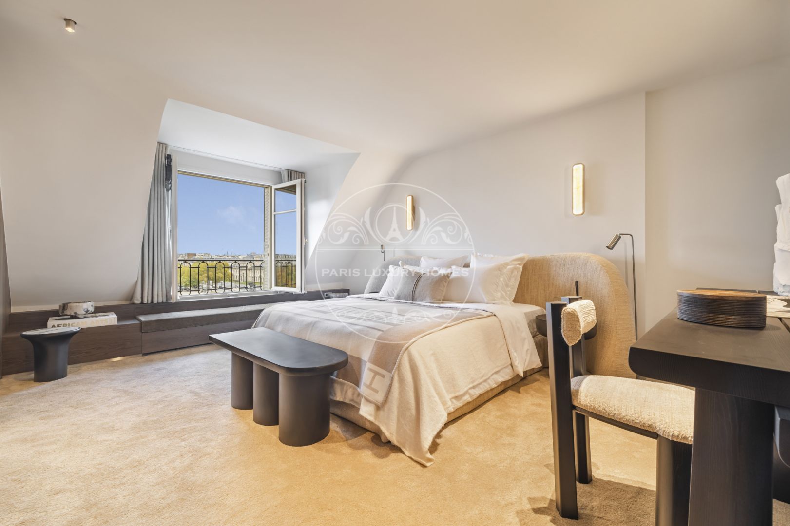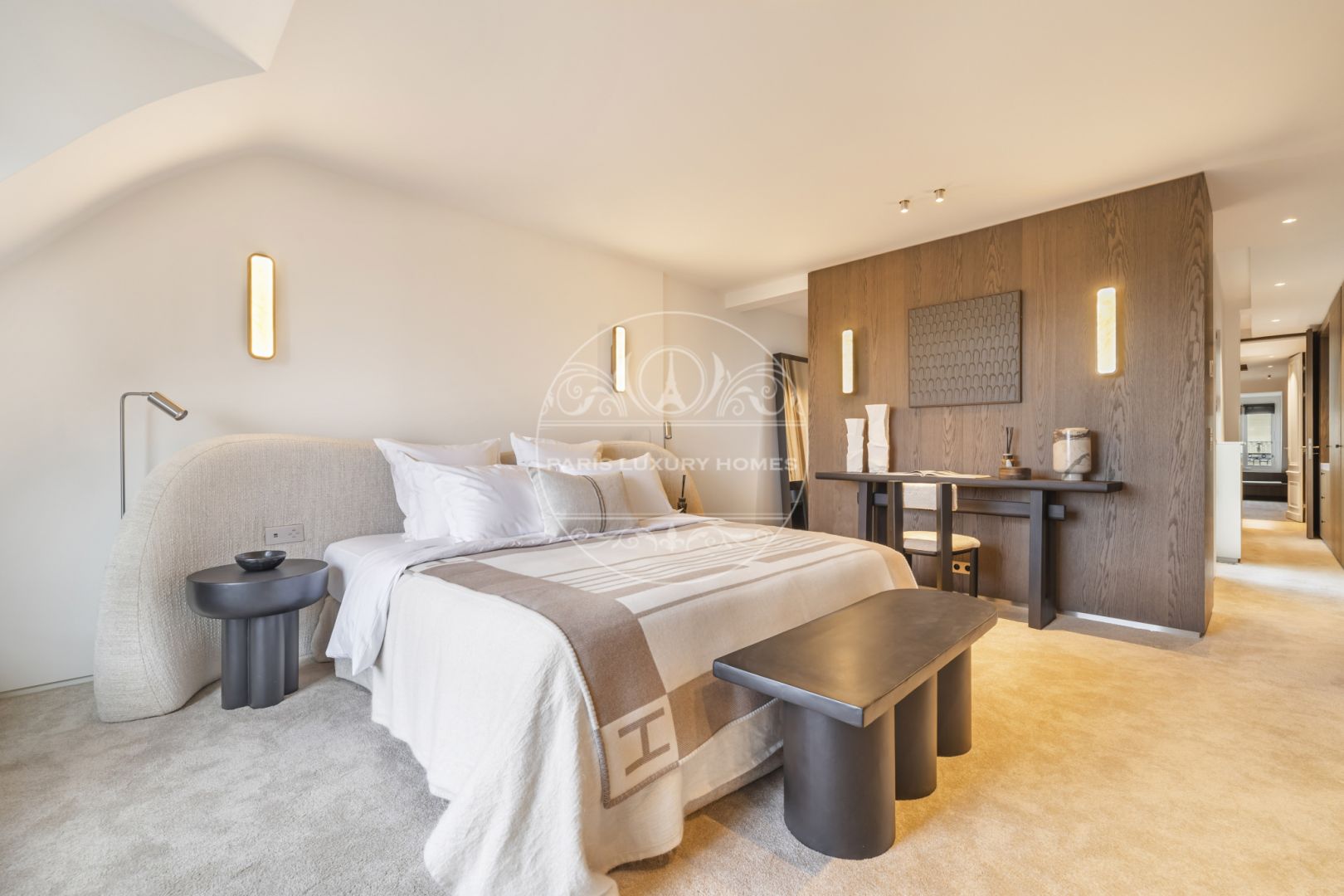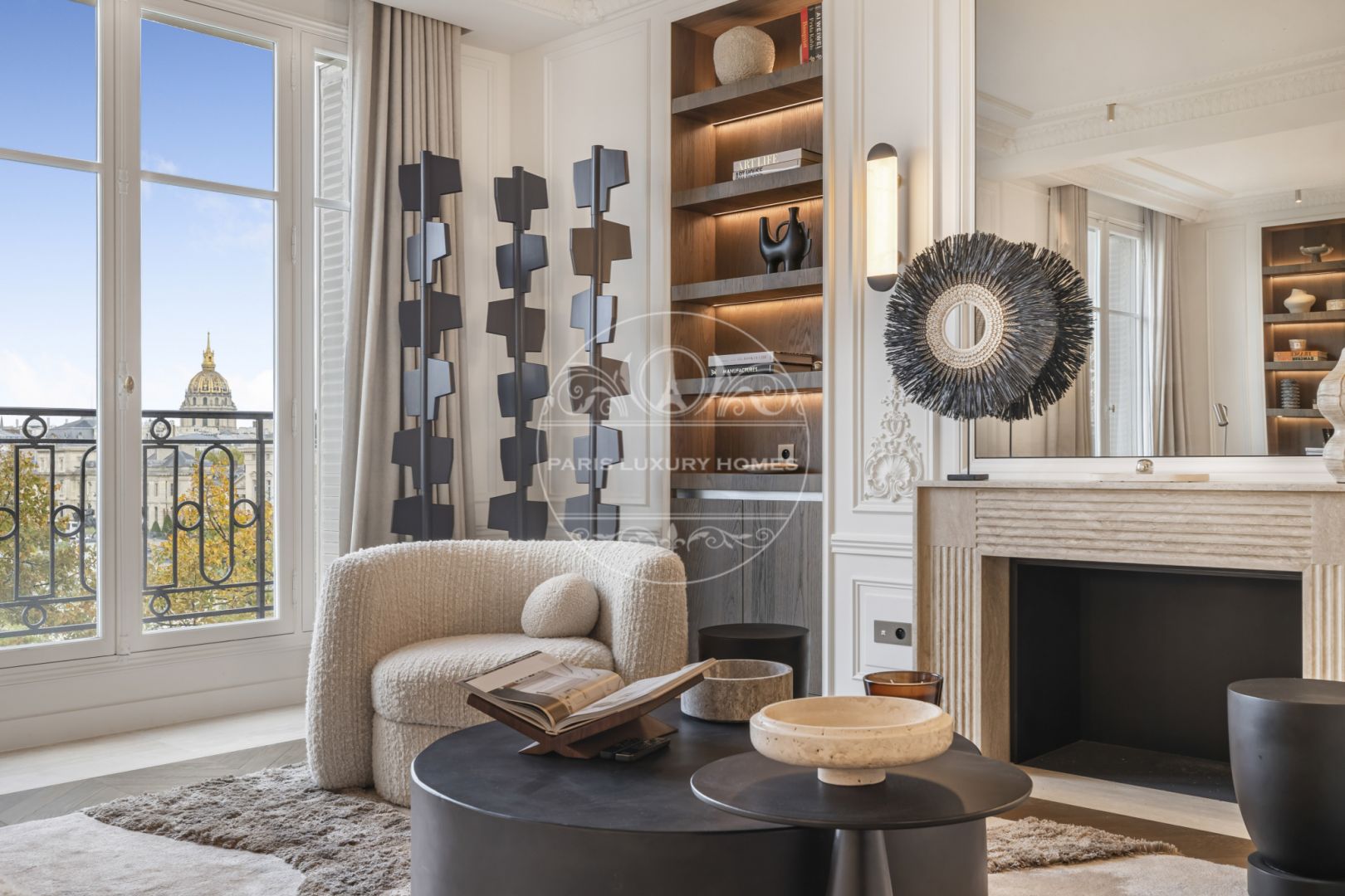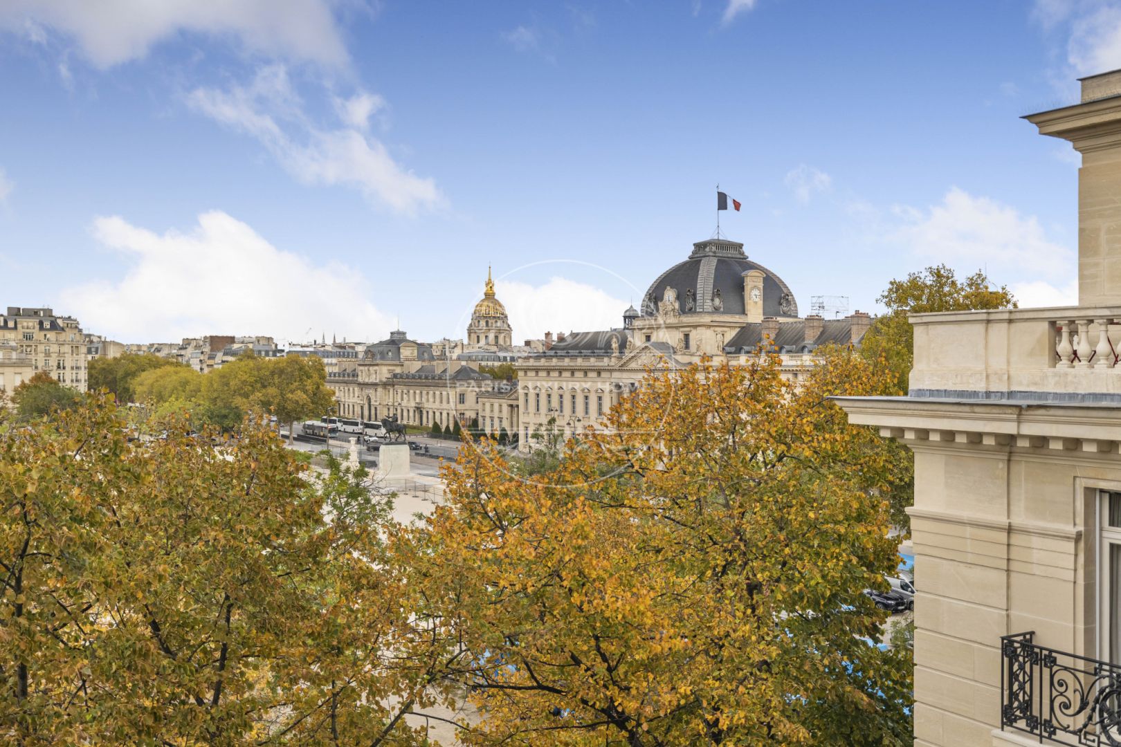 A VENDRE PARIS 7ÈME - CHAMP DE MARS / ÉCOLE MILITAIRE - BIEN D'EXCEPTION AVEC VUE SUR LA TOUR EIFFEL ET DÔME DES INVALIDES - Situé dans un élégant immeuble en pierre de taille de 1929, cet appartement en duplex de 191 m2 situé au 4ème et 5ème étage avec ascenseur s'impose comme une réalisation d'architecte rare, alliant classicisme parisien et design contemporain. Depuis ses balcons, la vue embrasse la Tour Eiffel, le Dôme des Invalides et les toits du 7e arrondissement. Les codes haussmanniens, moulures, cheminées, trumeaux et parquet point de Hongrie dialoguent ici avec une esthétique épurée et minérale. Travertin, chêne, et mobilier sur mesure composent une harmonie feutrée. La réception double, ponctuée de bibliothèques intégrées et d'un décor mural sculpté, s'ouvre sur les balcons offrant une perspective directe sur les monuments de Paris. La cuisine, réalisée sur mesure, s'intègre dans un ensemble cohérent aux finitions raffinées. L'espace nuit accueille trois chambres, 3 salle de bains, pensées comme de véritables espaces privés. L'ensemble est enrichi de détails haut de gamme : robinetterie design, mobilier et menuiseries conçus sur mesure. Une caves et une place de parking complètent le bien. Une adresse exclusive, une réalisation d'architecte remarquable et des vues exceptionnelles, un bien d'exception au coeur du 7e arrondissement. BIEN UNIQUE A SAISIR ! A VISITER SANS PLUS TARDER ! Bien proposé en exclusivité par l'agence PARIS LUXURY HOMES. Visites et renseignements 7/7, visite virtuelle disponible sur demande.
