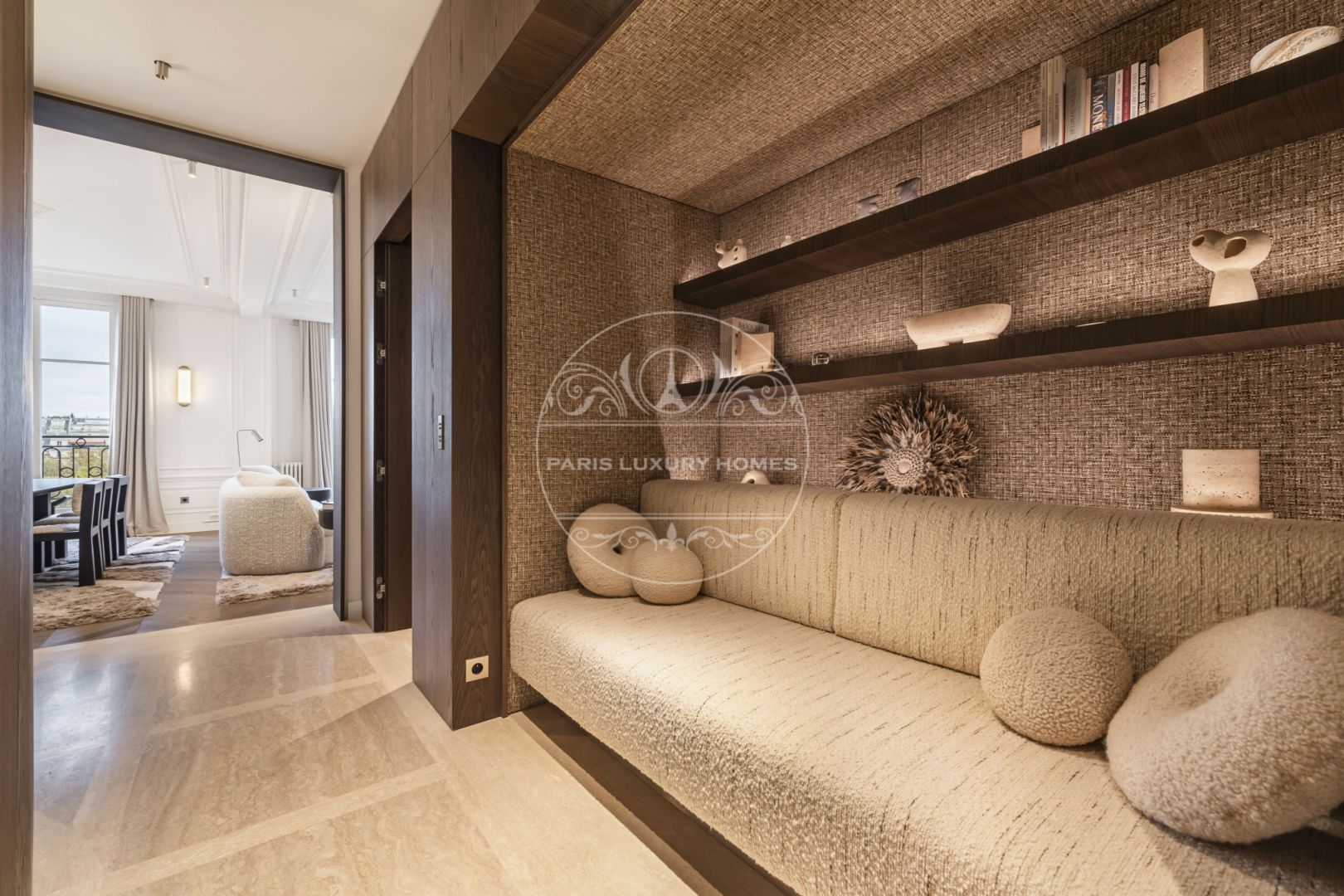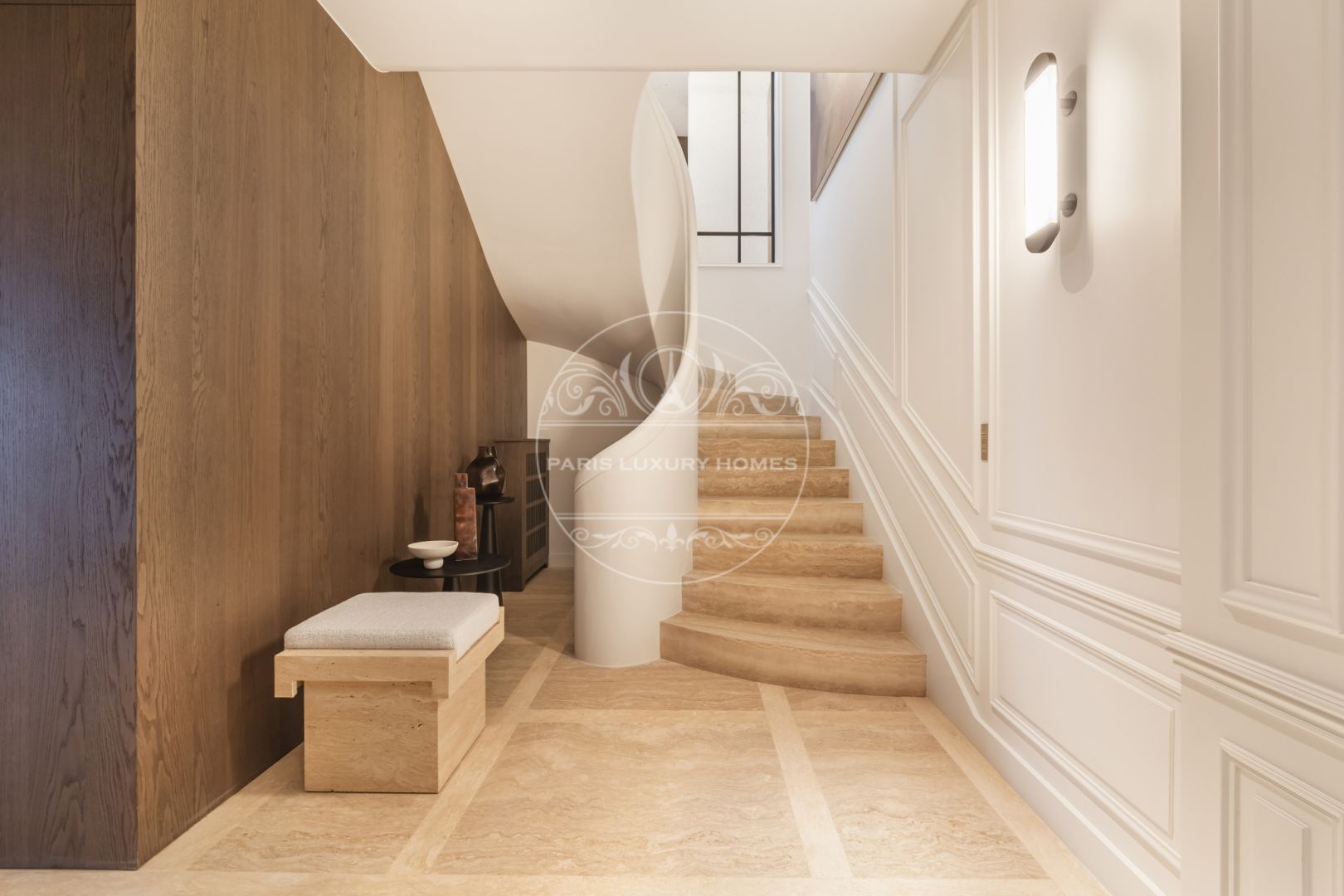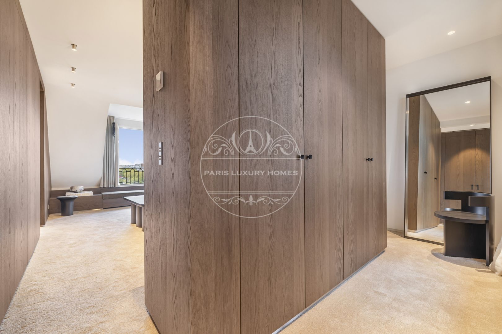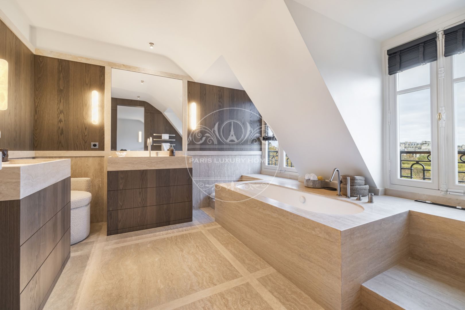 A VENDRE PARIS 7ÈME - CHAMP DE MARS / ÉCOLE MILITAIRE - BIEN D'EXCEPTION AVEC VUE SUR LA TOUR EIFFEL ET DÔME DES INVALIDES - Situé dans un élégant immeuble en pierre de taille de 1929, cet appartement en duplex de 191 m2 situé au 4ème et 5ème étage avec ascenseur s'impose comme une réalisation d'architecte rare, alliant classicisme parisien et design contemporain. Depuis ses balcons, la vue embrasse la Tour Eiffel, le Dôme des Invalides et les toits du 7e arrondissement. Les codes haussmanniens, moulures, cheminées, trumeaux et parquet point de Hongrie dialoguent ici avec une esthétique épurée et minérale. Travertin, chêne, et mobilier sur mesure composent une harmonie feutrée. La réception double, ponctuée de bibliothèques intégrées et d'un décor mural sculpté, s'ouvre sur les balcons offrant une perspective directe sur les monuments de Paris. La cuisine, réalisée sur mesure, s'intègre dans un ensemble cohérent aux finitions raffinées. L'espace nuit accueille trois chambres, 3 salle de bains, pensées comme de véritables espaces privés. L'ensemble est enrichi de détails haut de gamme : robinetterie design, mobilier et menuiseries conçus sur mesure. Une caves et une place de parking complètent le bien. Une adresse exclusive, une réalisation d'architecte remarquable et des vues exceptionnelles, un bien d'exception au coeur du 7e arrondissement. BIEN UNIQUE A SAISIR ! A VISITER SANS PLUS TARDER ! Bien proposé en exclusivité par l'agence PARIS LUXURY HOMES. Visites et renseignements 7/7, visite virtuelle disponible sur demande.