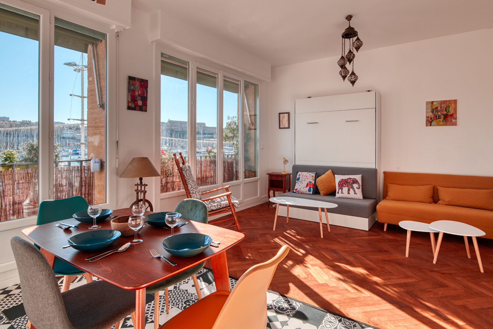 Emplacement rêvé : Situé au coeur du Vieux-Port de Marseille, cet appartement lumineux et entièrement meublé vous offre une vue panoramique à couper le souffle sur le port, les bateaux et la célèbre basilique Notre-Dame de la Garde. Type de logement : Studio Superficie : 35,69 - 1er étage Grande pièce de vie avec baie vitrée sur toute la façade, inondée de lumière naturelle Coin nuit confortable avec lit double, literie fournie Cuisine équipée : four, plaques de cuisson, micro-ondes, cafetière, lave linge, etc. Espace repas avec table à manger et chaises Coin salon avec fauteuil à bascule pour profiter de la vue Salle de bain moderne DISPONIBLE A PARTIR DU 5 JANVIER
