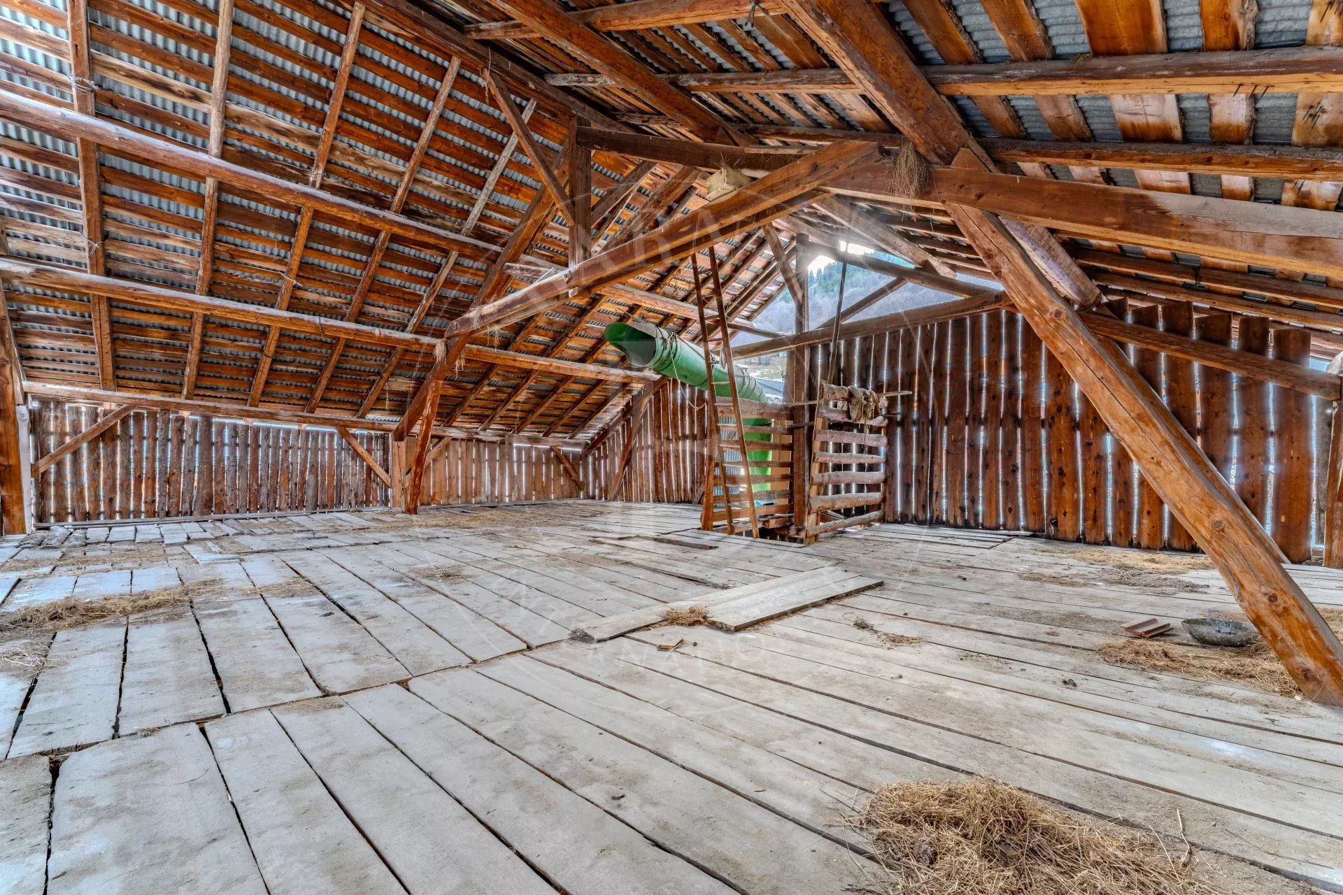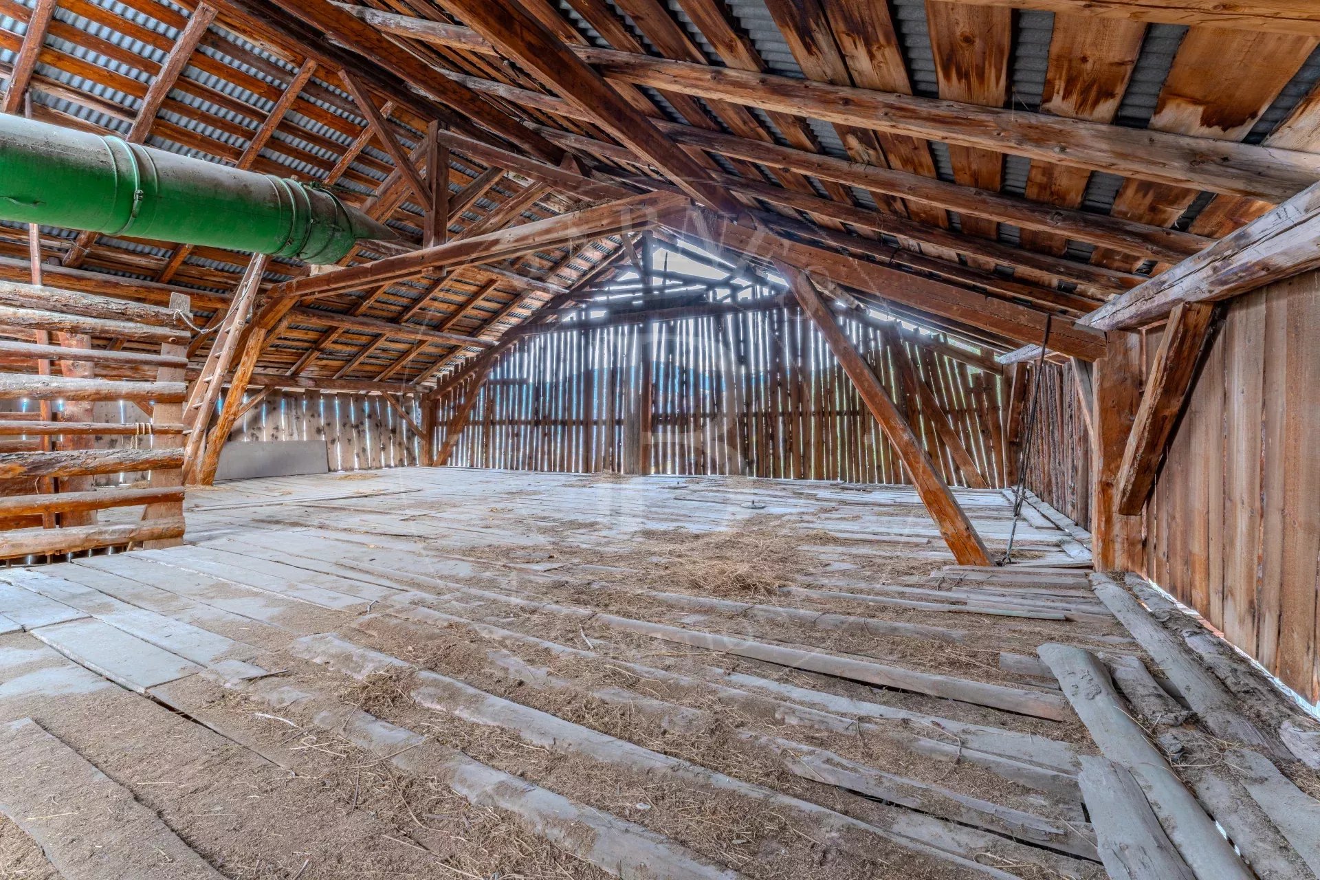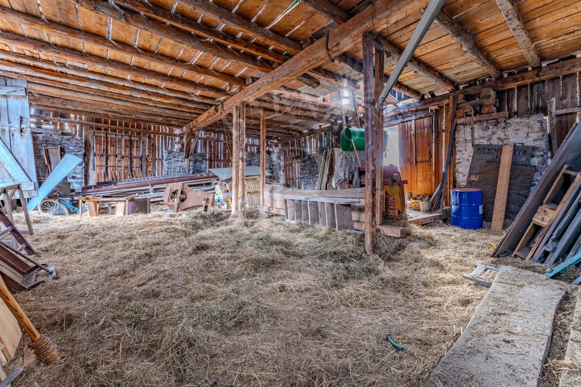 Un beau terrain prolonge la grange et permet de créer des extérieurs élégants et intimistes, tandis qu’un garage attenant vient compléter ce bien, apportant confort et fonctionnalité à votre futur chalet.