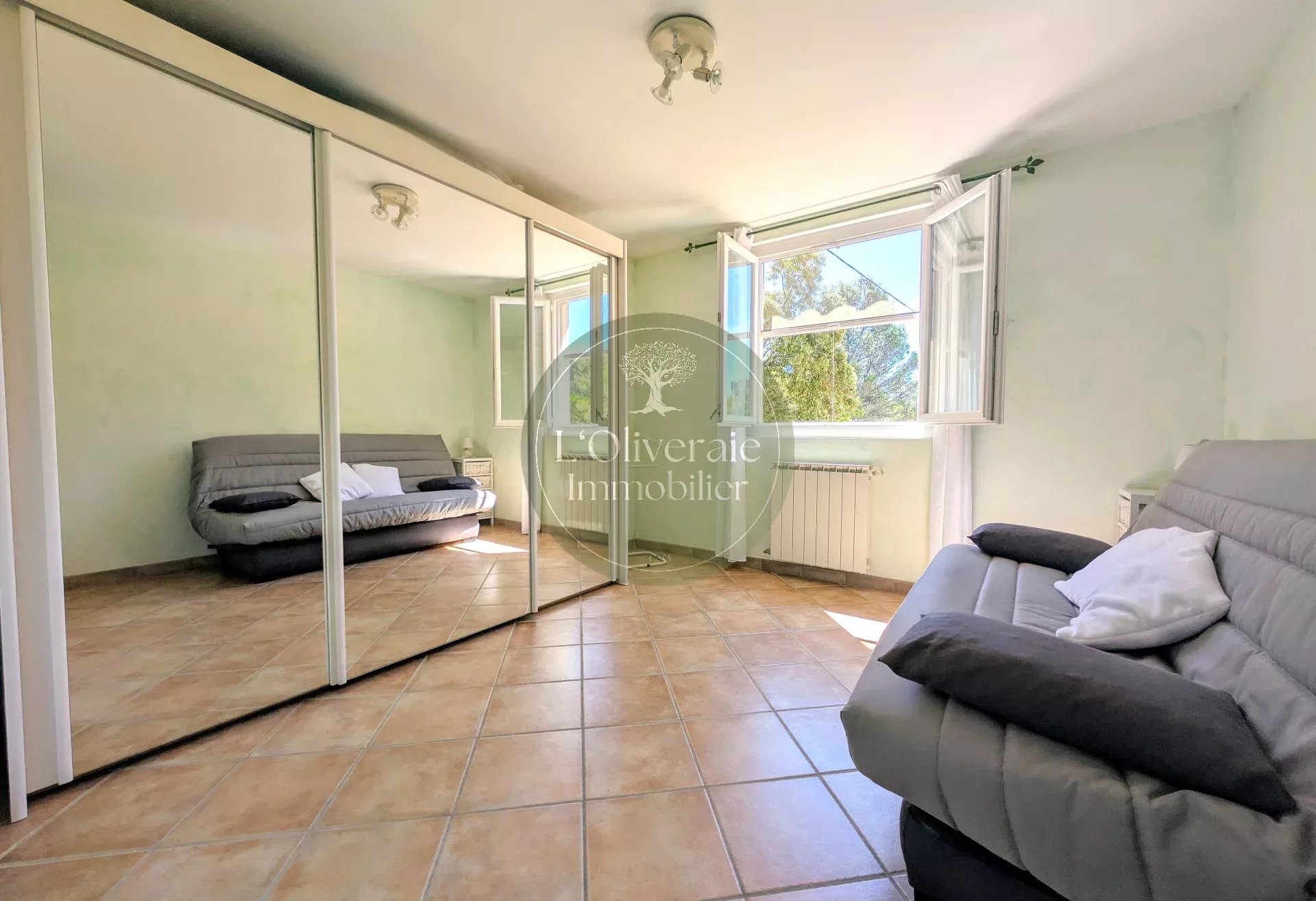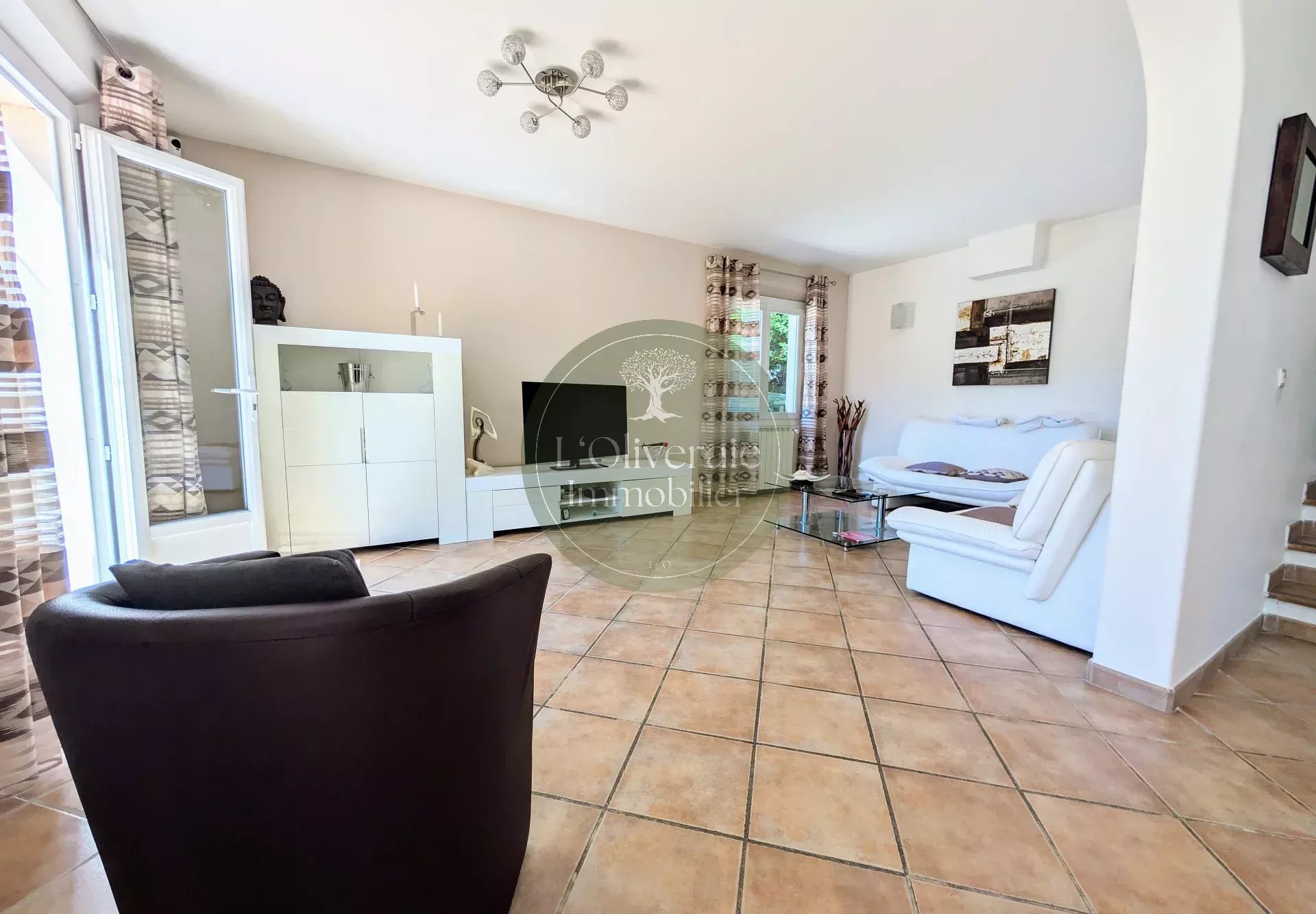 L’Oliveraie Immobilier vous propose à la vente cette maison R+1 de 121 m², idéalement située au calme sur un terrain arboré de 900 m², sans vis-à-vis, offrant un cadre de vie agréable et familial. La maison séduit dès l’entrée par sa grande pièce de vie lumineuse d’environ 60 m², avec une cuisine ouverte, parfaite pour les moments de convivialité. Un conduit de fumée existant permet l’installation d’un poêle à bois ou d’une cheminée, apportant confort et charme supplémentaire. Le rez de chaussé est complété par une buanderie ainsi que d’un toilette WC avec lave main La partie nuit à l’étage se compose de 3 chambres de belles superficies, un bureau, ainsi que d’une salle de bain avec douche et baignoire ainsi qu’un WC. La maison est fonctionnelle, bien entretenue et prête à vivre. Construction de qualité, Volets en composite, Système d’alarme, Portail électrique, Maison reliée au tout-à-l’égout, Stationnement aisé sur la parcelle À l’extérieur, vous profiterez pleinement des beaux jours grâce à un bel espace piscine (construction traditionnelle, équipée d’un PVC armé et d’un traitement au sel), terrasse avec pergola. Une maison idéale pour une famille à la recherche d’espace, de confort et de tranquillité, tout en restant proche des commodités. Votre contact Flore TUEL Agent commercial EI Les informations sur les risques auxquels ce bien est exposé sont disponibles sur le site Géorisques http://www.georisques.gouv.fr Pour plus de détails contactez-nous ou consultez notre site pour découvrir toutes nos offres. L’Oliveraie Immobilier, votre agence immobilière à La Destrousse, vous accompagne pour la vente ou l’achat d’un bien immobilier sur les communes de La Destrousse, La Bouilladisse, Auriol, Peypin, Roquevaire et alentour.