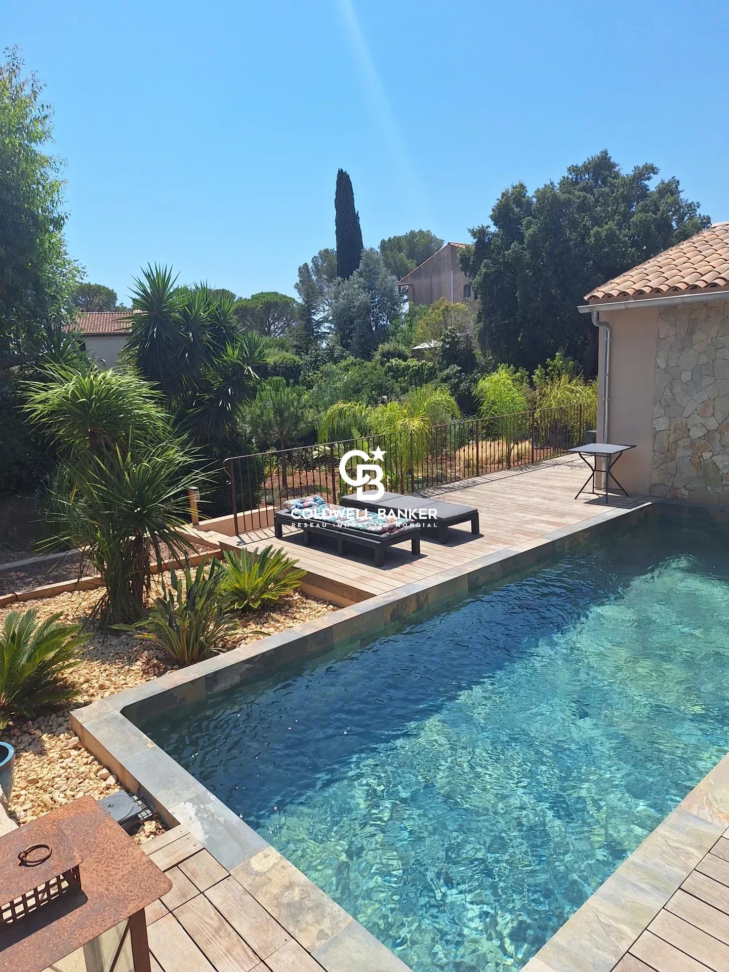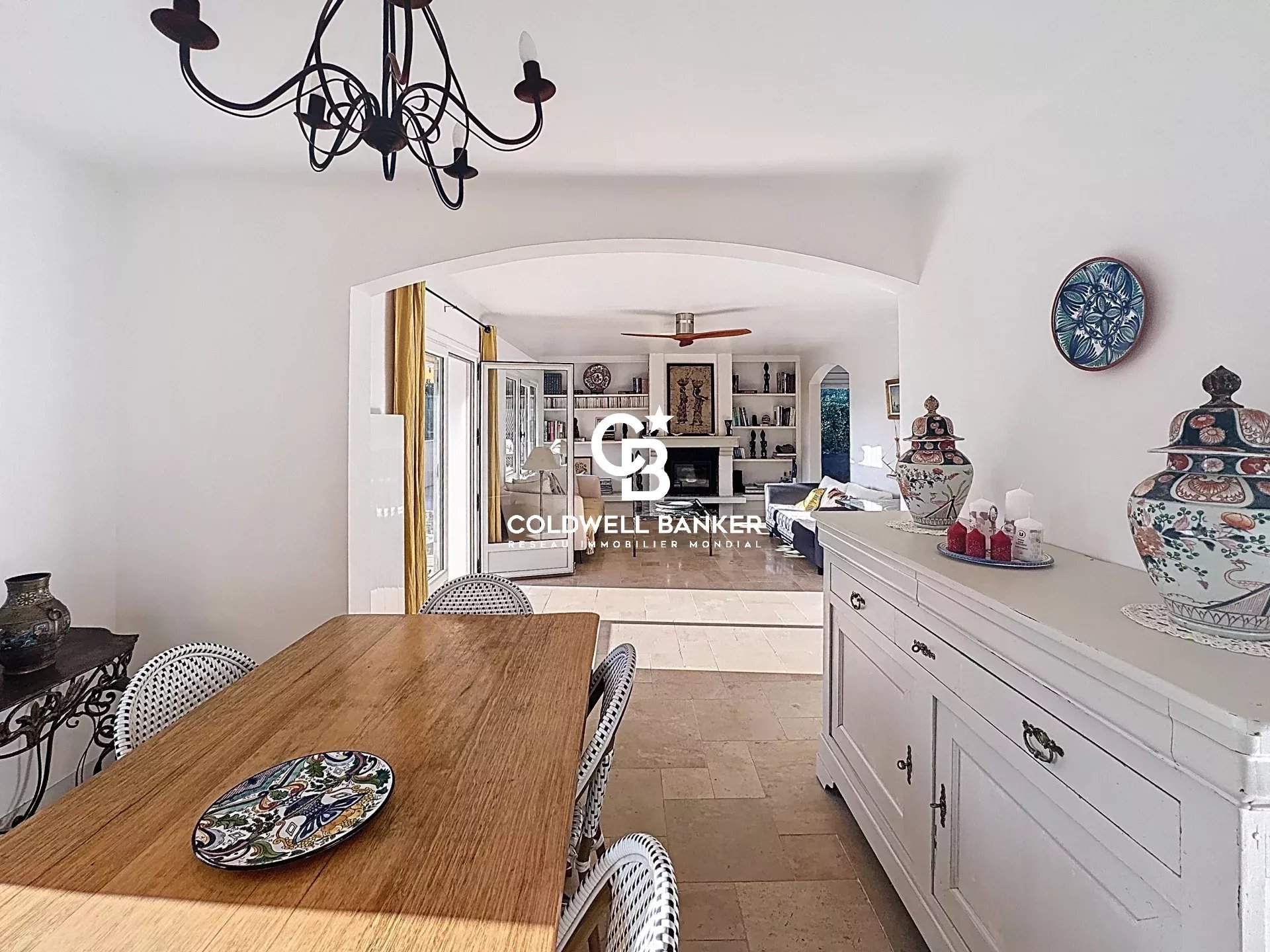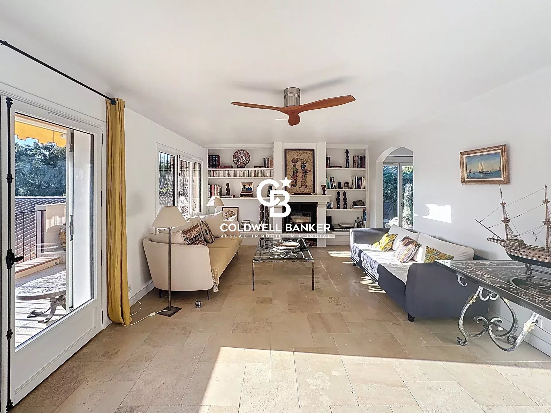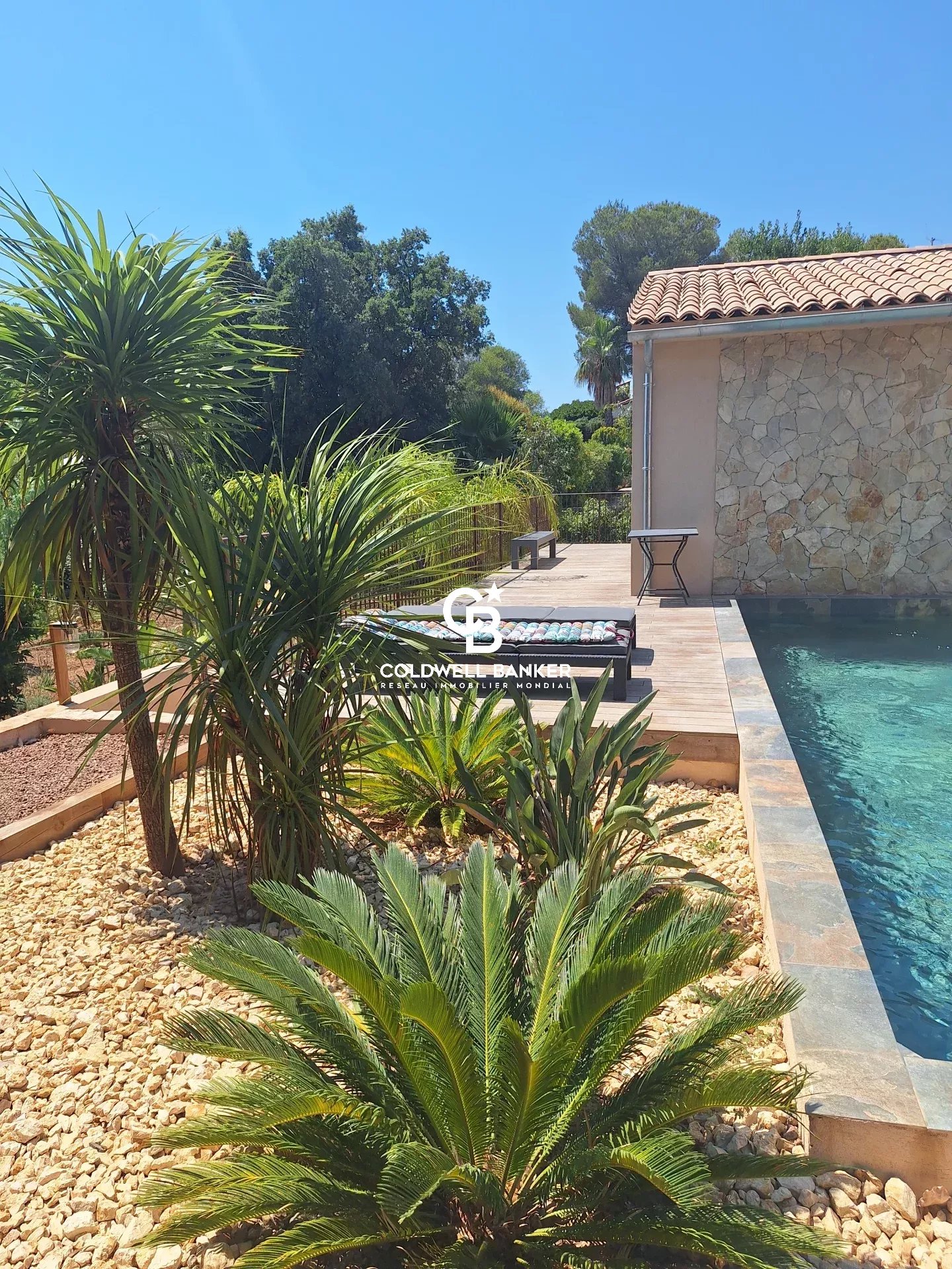Coldwell Banker Esterel Realty a le plaisir de vous présenter cette superbe villa entièrement rénovée en 2023, idéalement située dans le quartier résidentiel prisé de Boulouris, à seulement 10 minutes à pied des plages et des commodités. Développant une surface habitable de 192 m², la villa offre de beaux volumes avec un vaste séjour lumineux, un espace bureau, une cuisine indépendante entièrement équipée ainsi que deux chambres de plain-pied. Une dépendance indépendante vient compléter ce bien et propose trois chambres élégantes, une salle d’eau et de WC, offrant un confort optimal pour recevoir famille et invités en toute intimité. Implantée sur un magnifique terrain paysagé de 1 160 m², la propriété séduit par ses extérieurs soignés, sa piscine de style balinais et ses nombreuses terrasses aménagées, le tout dans un environnement calme et sans vis-à-vis.