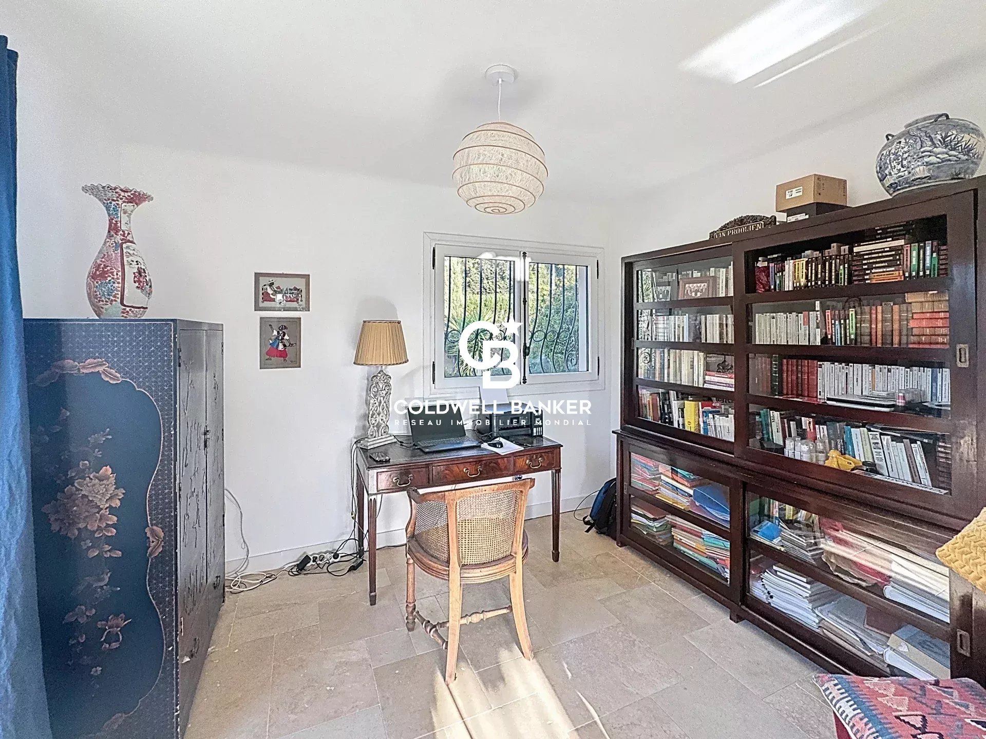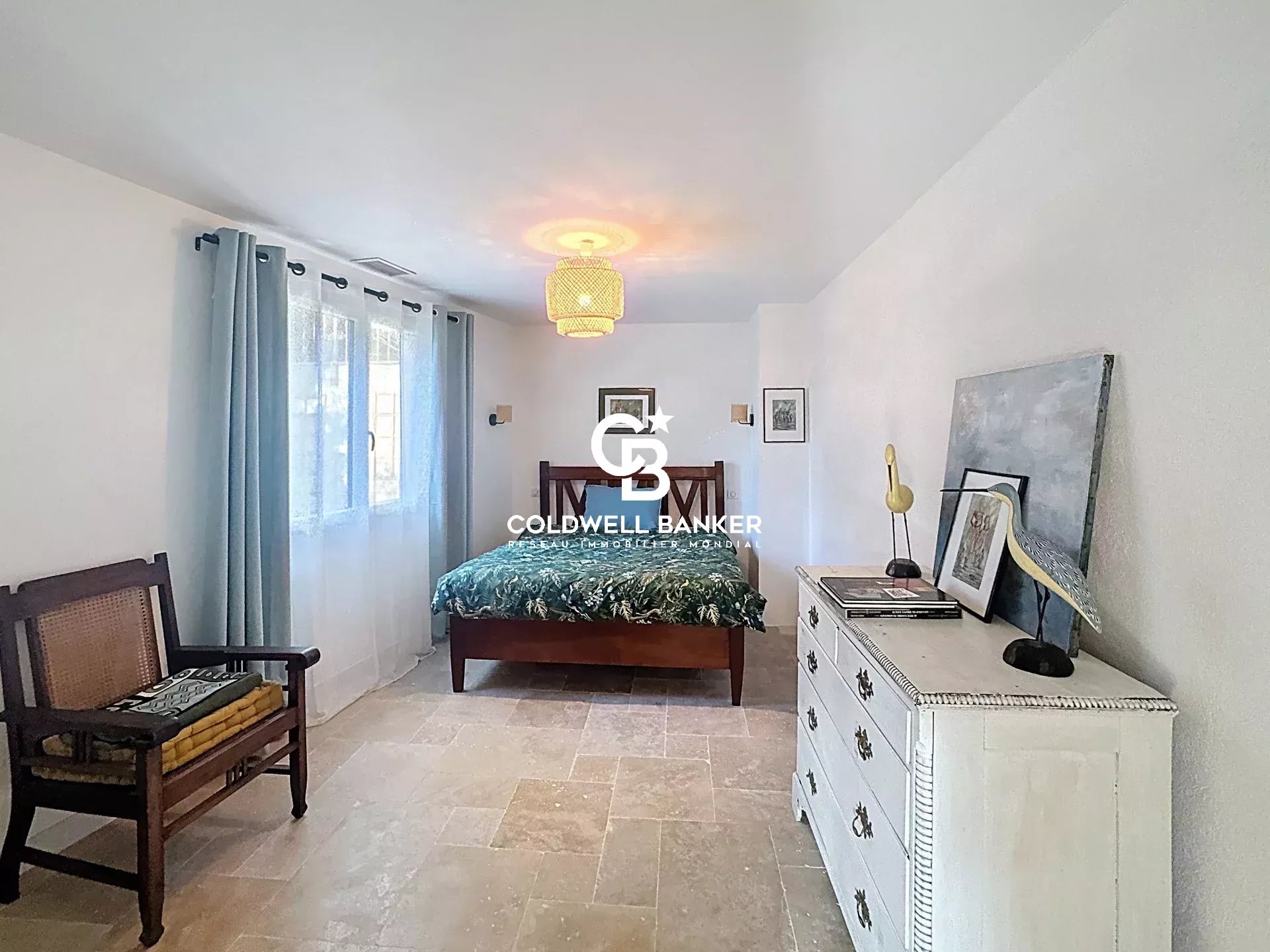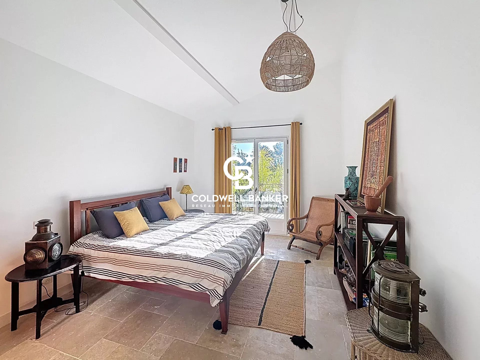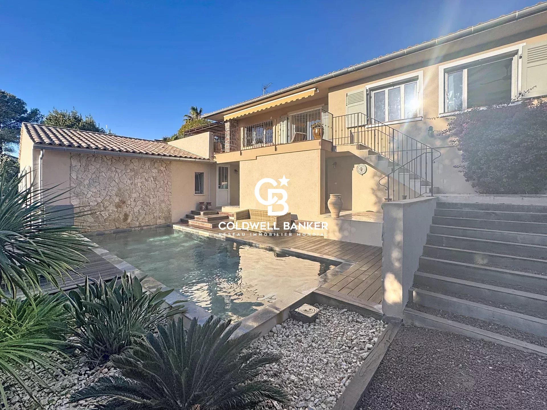 Coldwell Banker Esterel Realty a le plaisir de vous présenter cette superbe villa entièrement rénovée en 2023, idéalement située dans le quartier résidentiel prisé de Boulouris, à seulement 10 minutes à pied des plages et des commodités. Développant une surface habitable de 192 m², la villa offre de beaux volumes avec un vaste séjour lumineux, un espace bureau, une cuisine indépendante entièrement équipée ainsi que deux chambres de plain-pied. Une dépendance indépendante vient compléter ce bien et propose trois chambres élégantes, une salle d’eau et de WC, offrant un confort optimal pour recevoir famille et invités en toute intimité. Implantée sur un magnifique terrain paysagé de 1 160 m², la propriété séduit par ses extérieurs soignés, sa piscine de style balinais et ses nombreuses terrasses aménagées, le tout dans un environnement calme et sans vis-à-vis.
