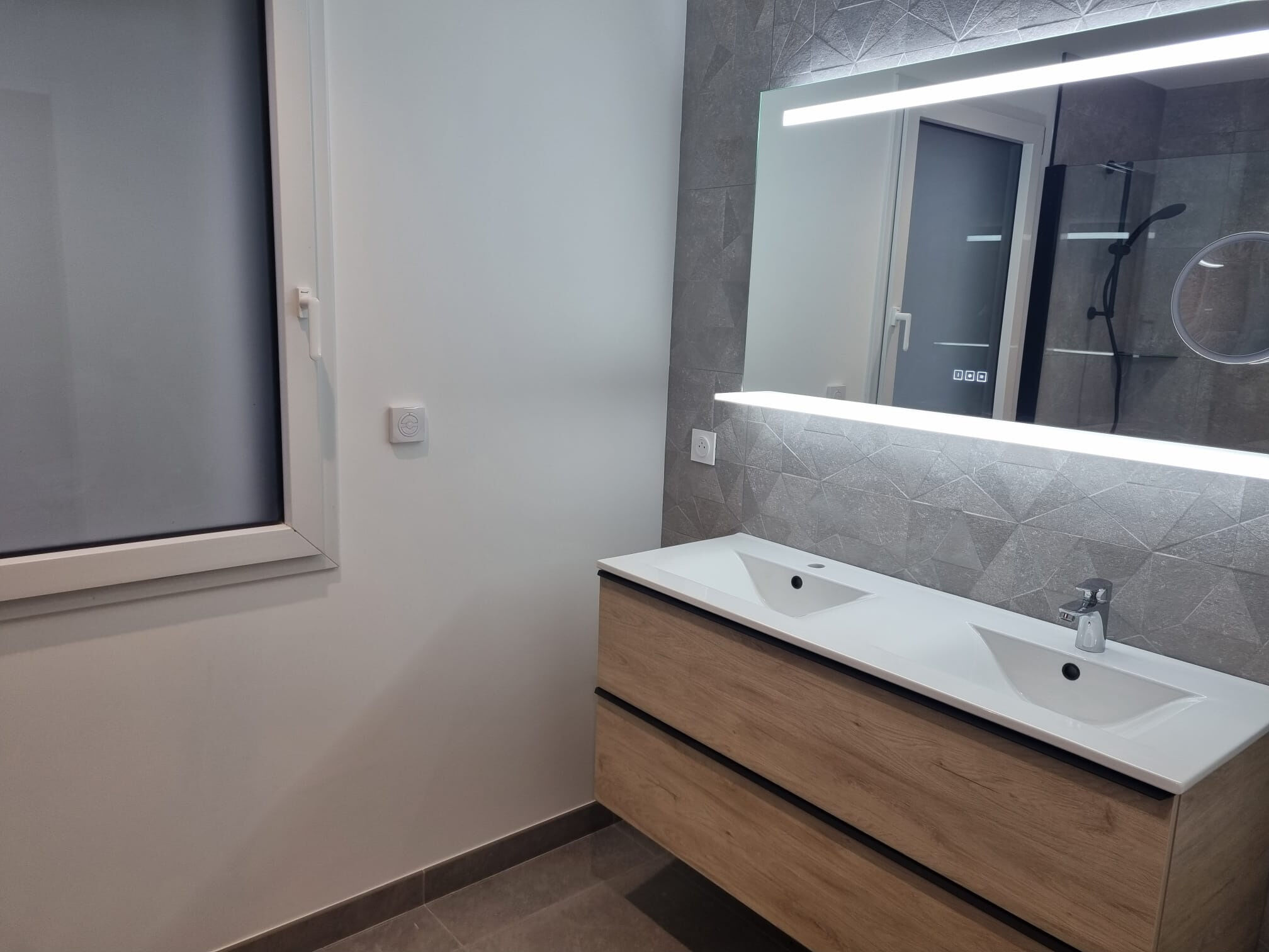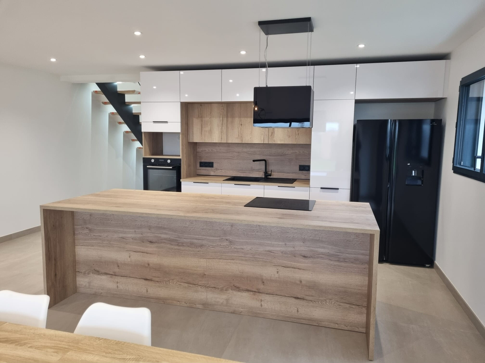 ESCOUBLAC - Maison neuve louée meublée comprenant entrée, belle pièce de vie de 51 m², chambre avec placard et salle d'eau privative, toilettes, cellier. À l'étage : trois belles chambres, salle de bains, toilettes séparées.