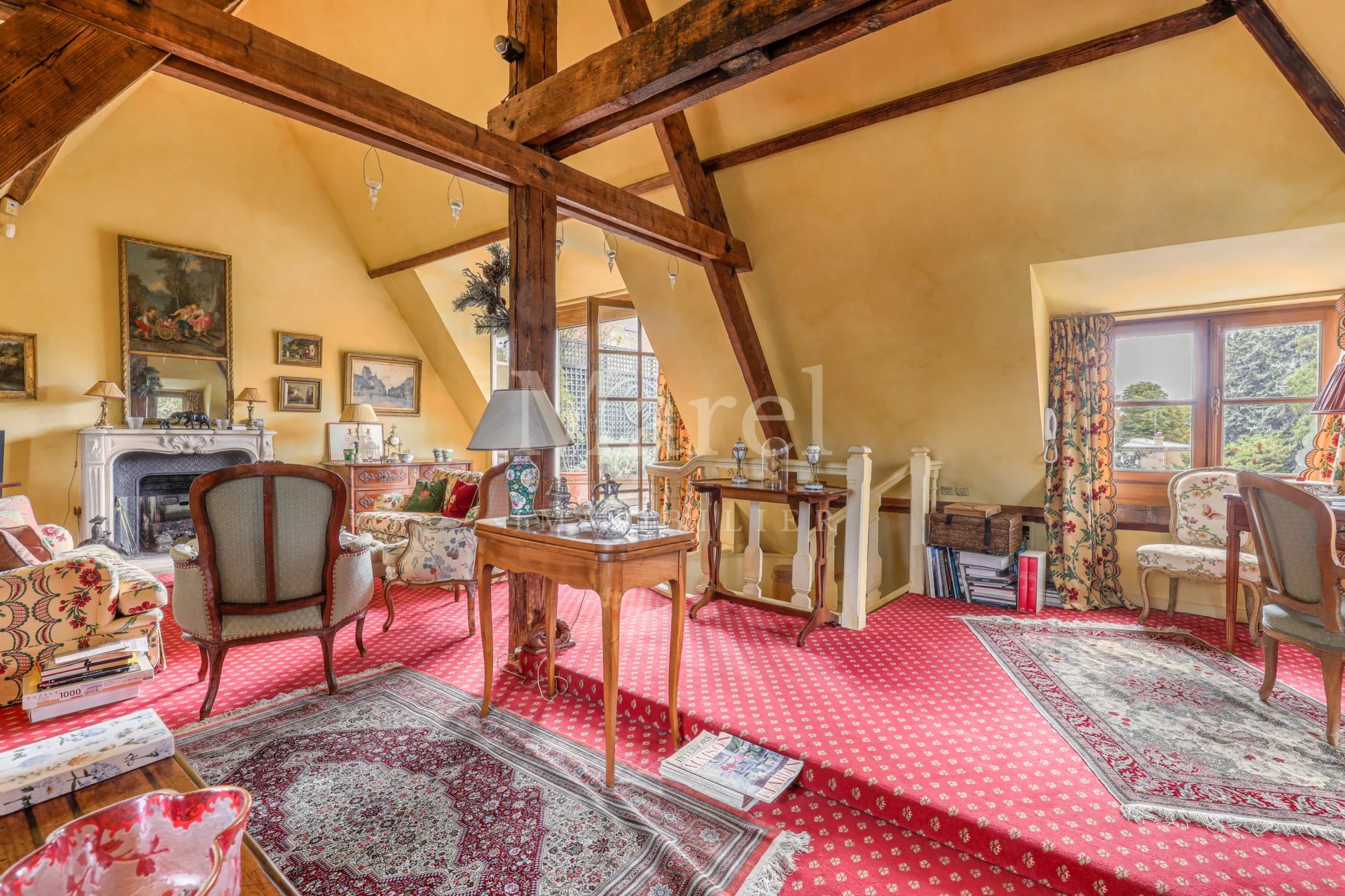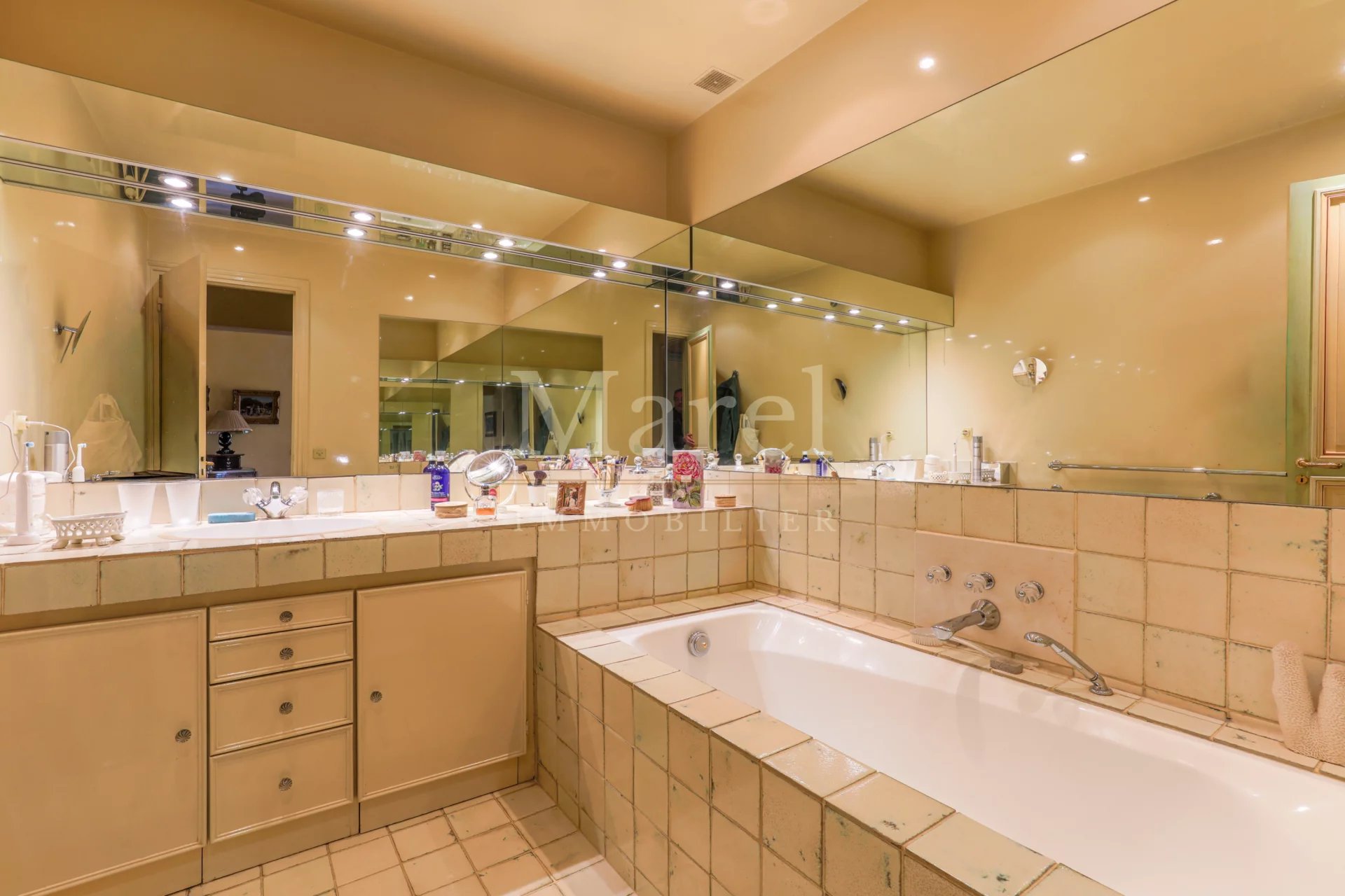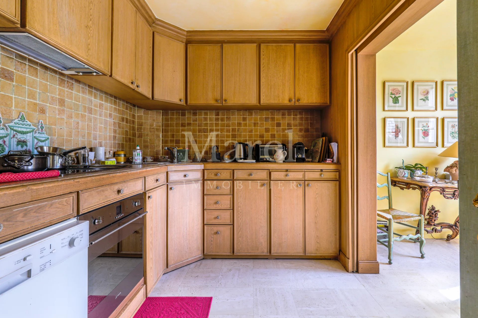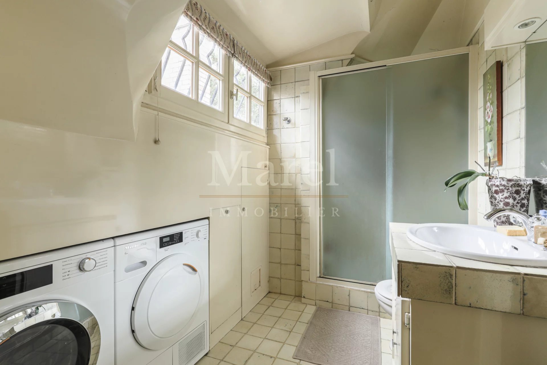 Un studio de 21 m² en rez-de-jardin, deux caves et deux emplacements de stationnement complètent ce bien.