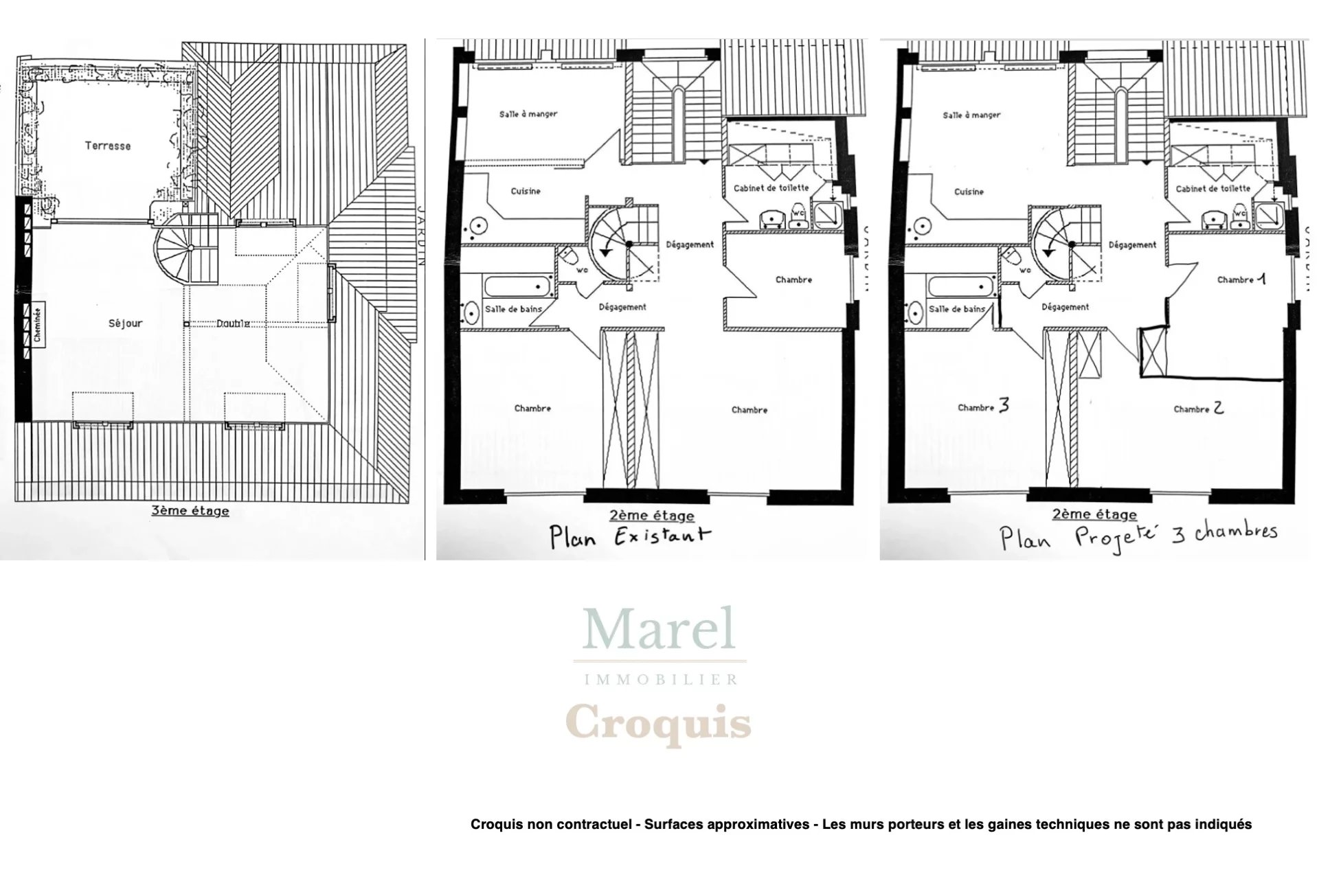 Le premier niveau se compose d’une d’entrée, d’une cuisine dinatoire, de trois chambres, d’une salle de douche avec WC, d’une salle de bains ainsi que de WC invités. Au deuxième niveau, dernier étage de l’immeuble, un grand séjour cathédrale de 45m² au sol avec accès à la terrasse exposée ouest.