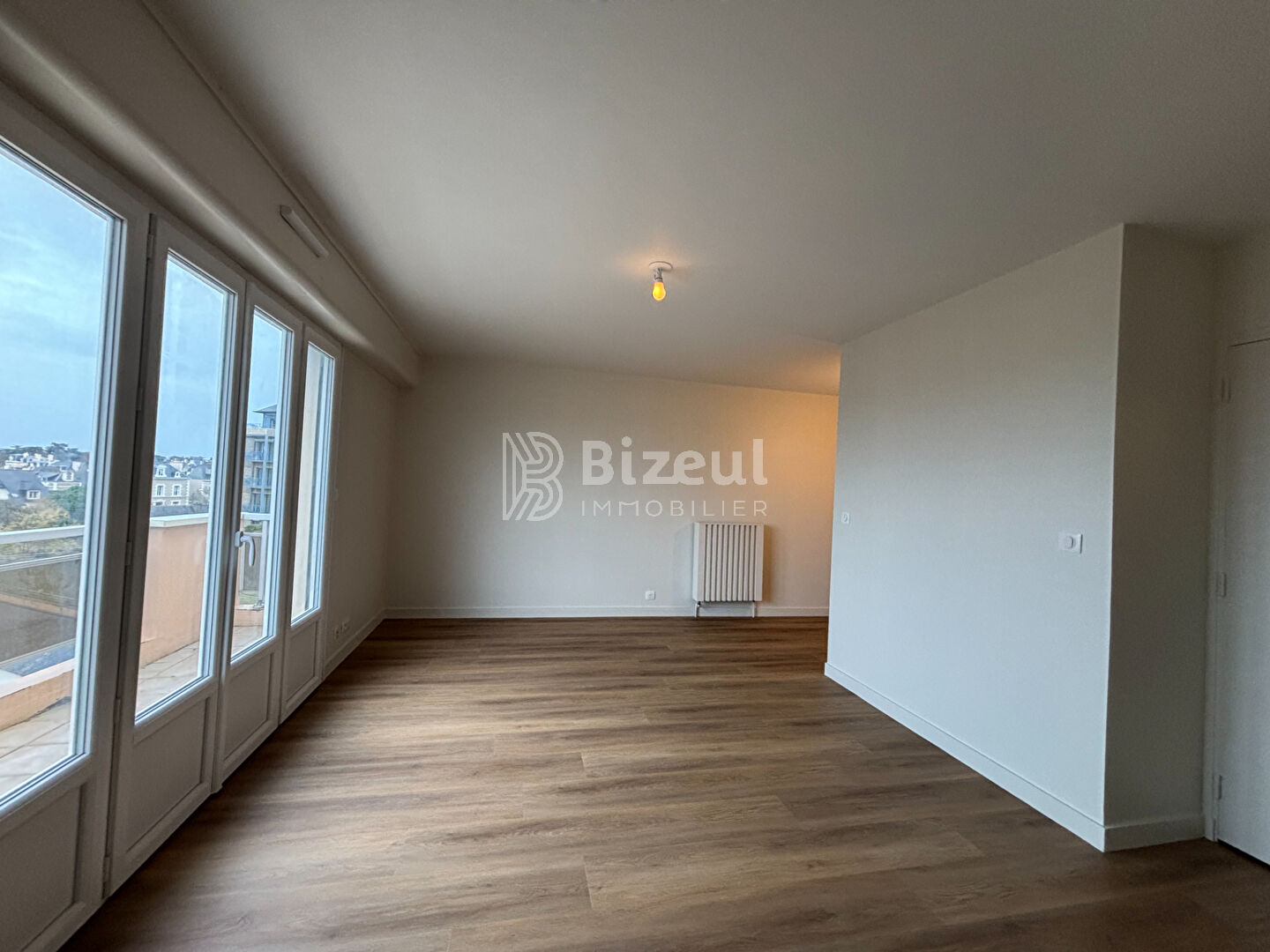 L'agence BIZEUL IMMOBILIER vous propose à la location un studio entièrement refait à neuf situé au 3ème étage d'une résidence avec ascenseur en plein coeur de Paramé, dans un environnement calme. L'appartement se compose d'une entrée avec placard, d'une pièce de vie donnant accès à un balcon exposé nord-ouest, offrant une belle vue dégagée sur les toits de Saint-Malo avec la mer en arrière-plan. Il dispose également d'une cuisine en renfoncement, aménagée et équipée de meubles hauts et bas, d'un évier, d'un four, de plaques de cuisson et d'une hotte, ainsi que d'une salle d'eau avec WC. Une place de stationnement aérienne et une cave complètent ce bien. Référence : ROUSSE-37 Disponible : fin janvier Loyer : 520 euros + 70 euros de charges (entretien des parties communes, taxe d'ordures ménagères et entretien de la chaudière et l'eau froide) : 590 euros VISITE UNIQUEMENT SUR DOSSIER DE CANDIDATURE COMPLET location @ bizeulimmobilier . com